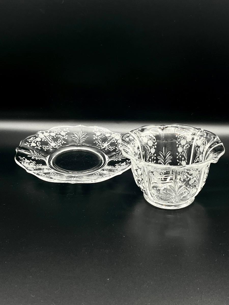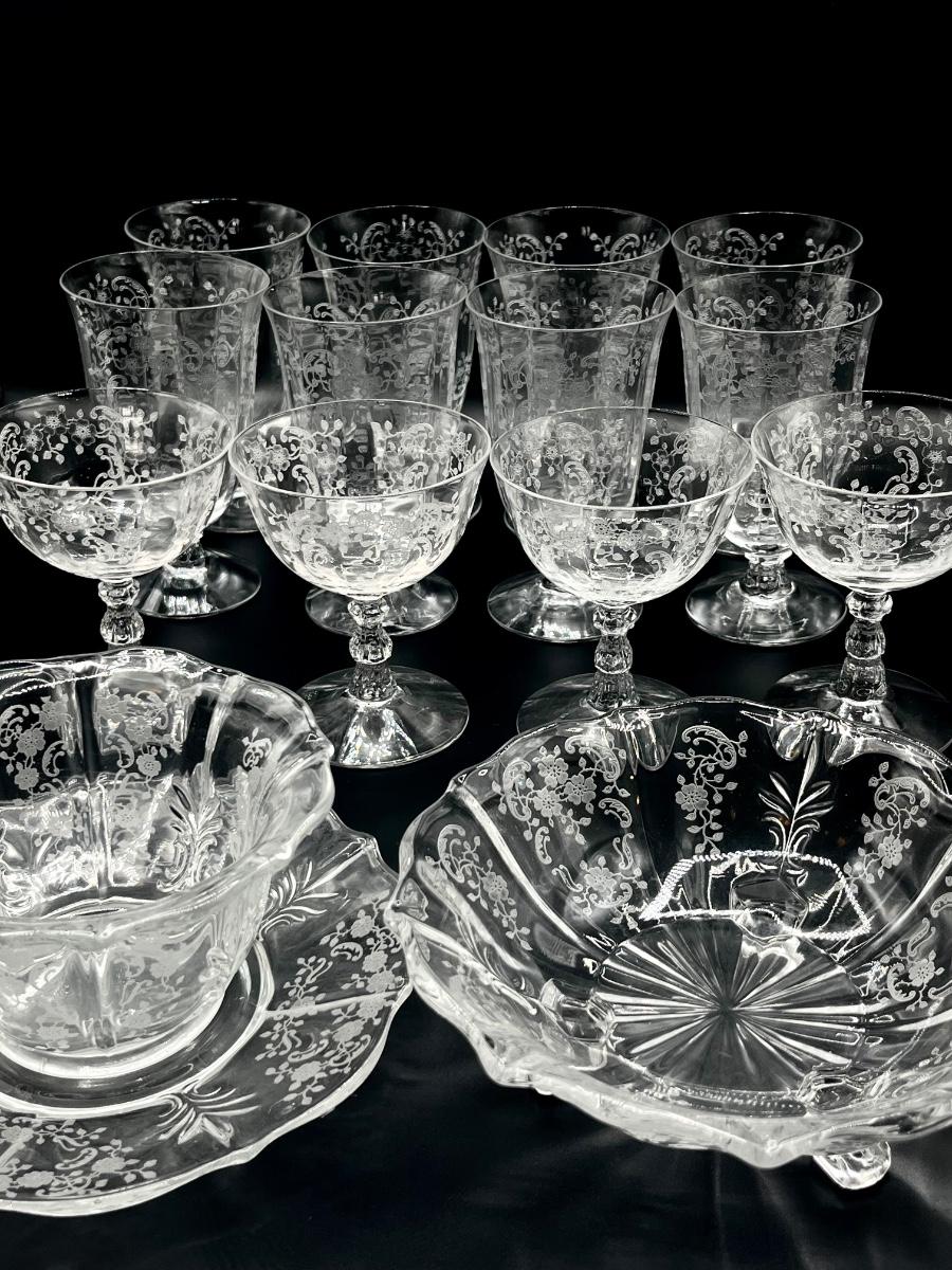 15 Pieces Including = (8) 5 3/8” Footed tumbler ~ (4) 4 3/8 Low sherbet ~ (1) Mayonnaise bowl & underplate ~ (1) 7” Three toed bon bon bowl