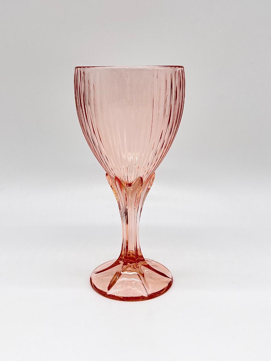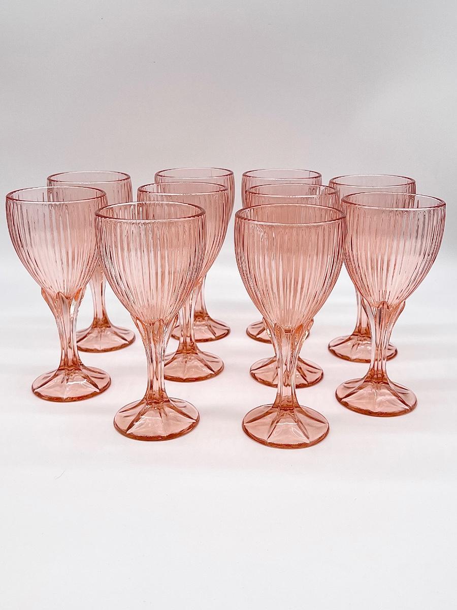 FOSTORIA ~ Monet Pink / Peach Ribbed Footed Goblets ~ Set of Ten (10)