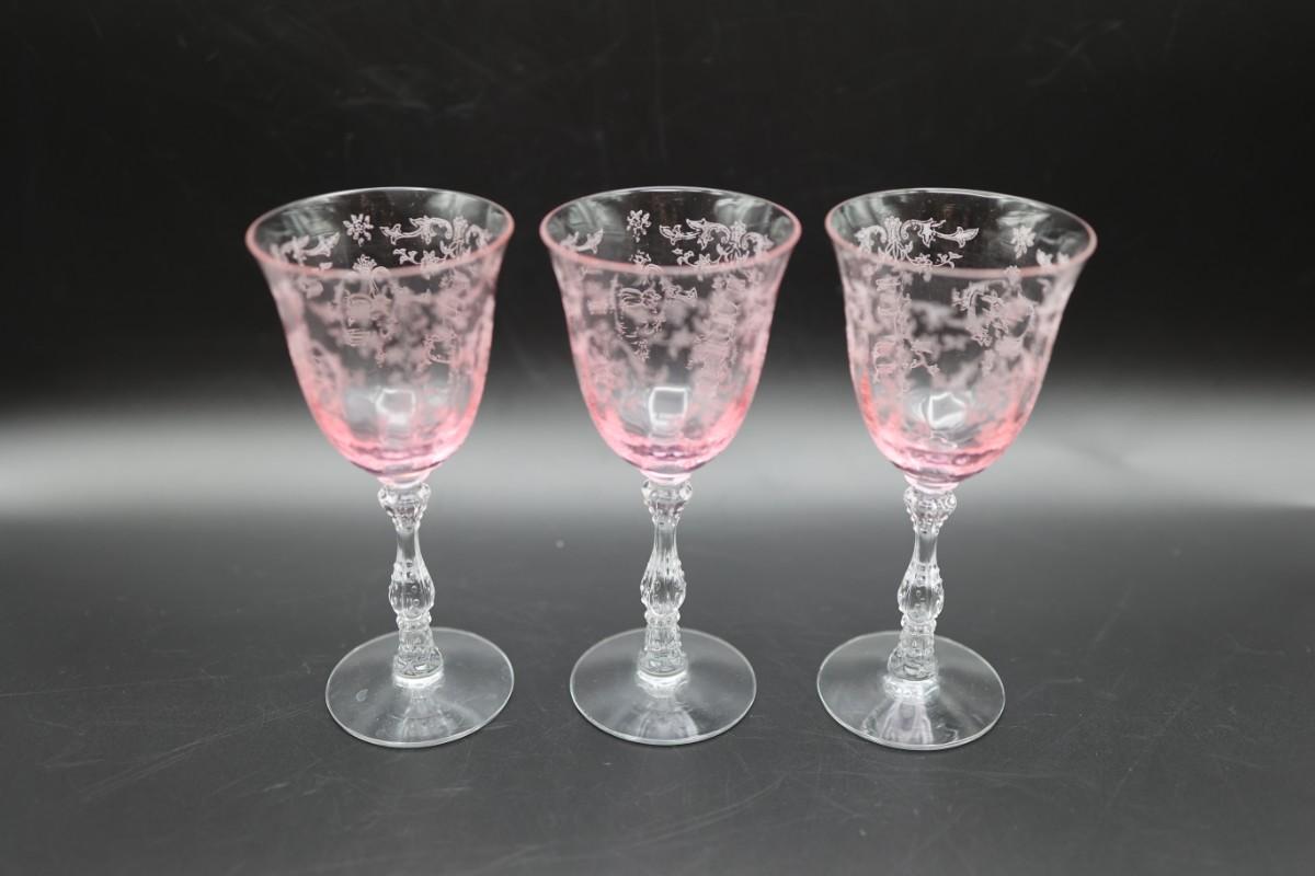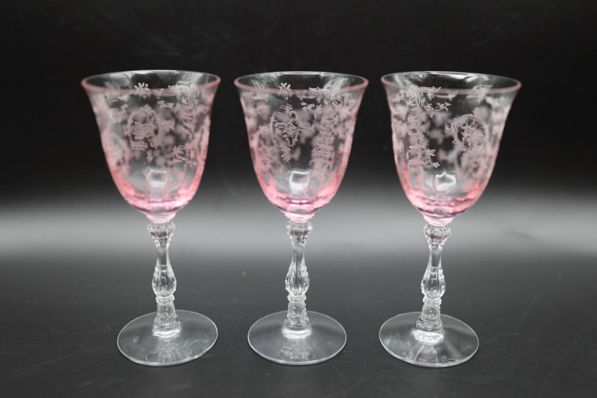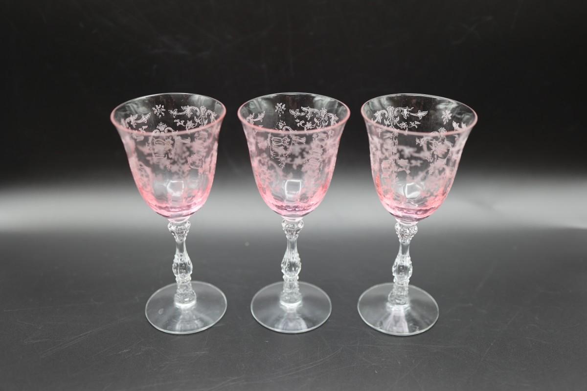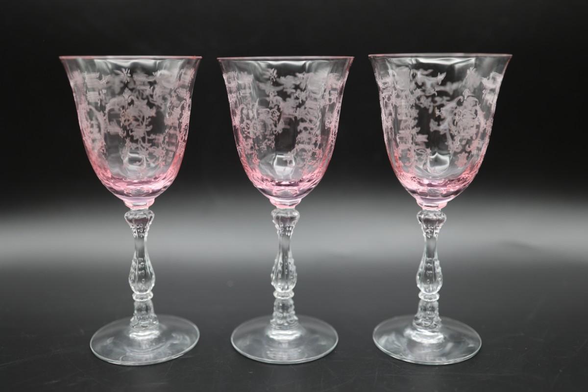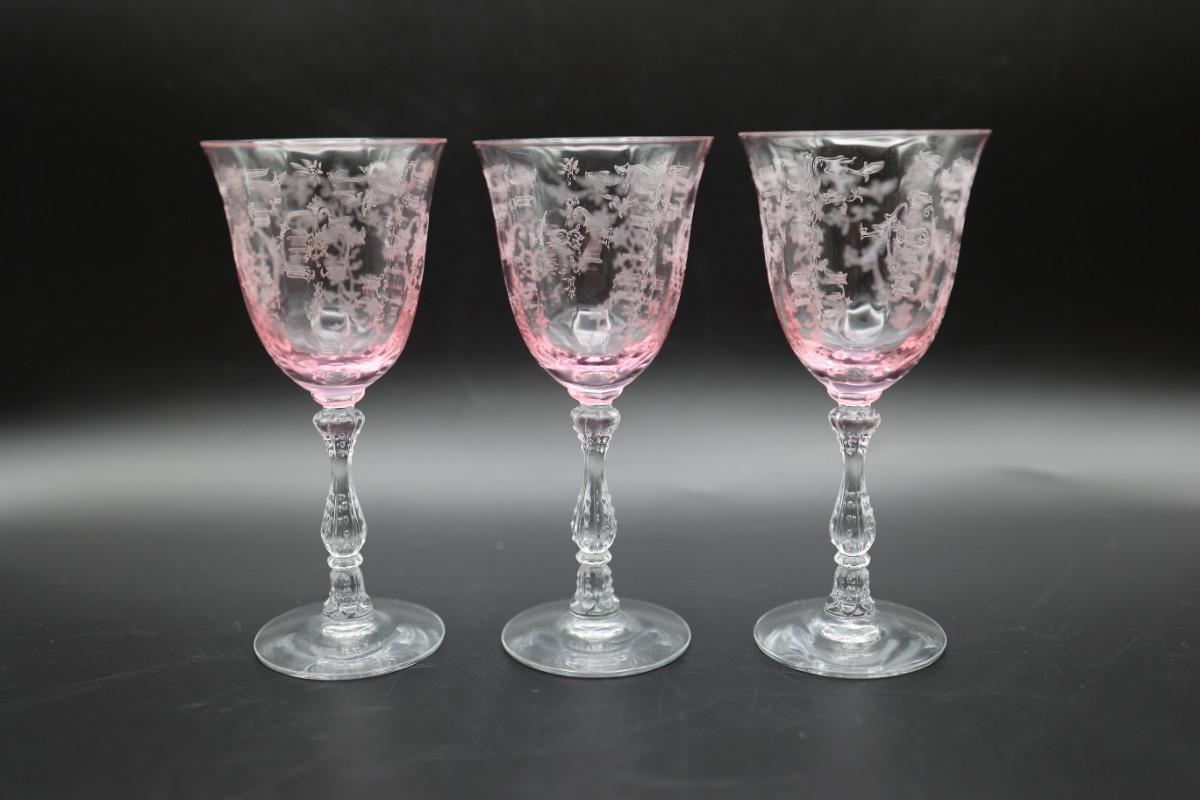 FOSTORIA Navarre Pink & Crystal Claret Wine Glasses (3)