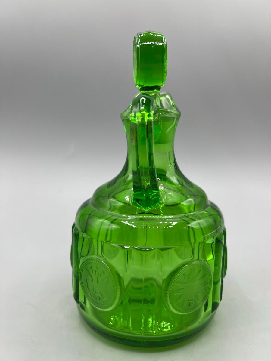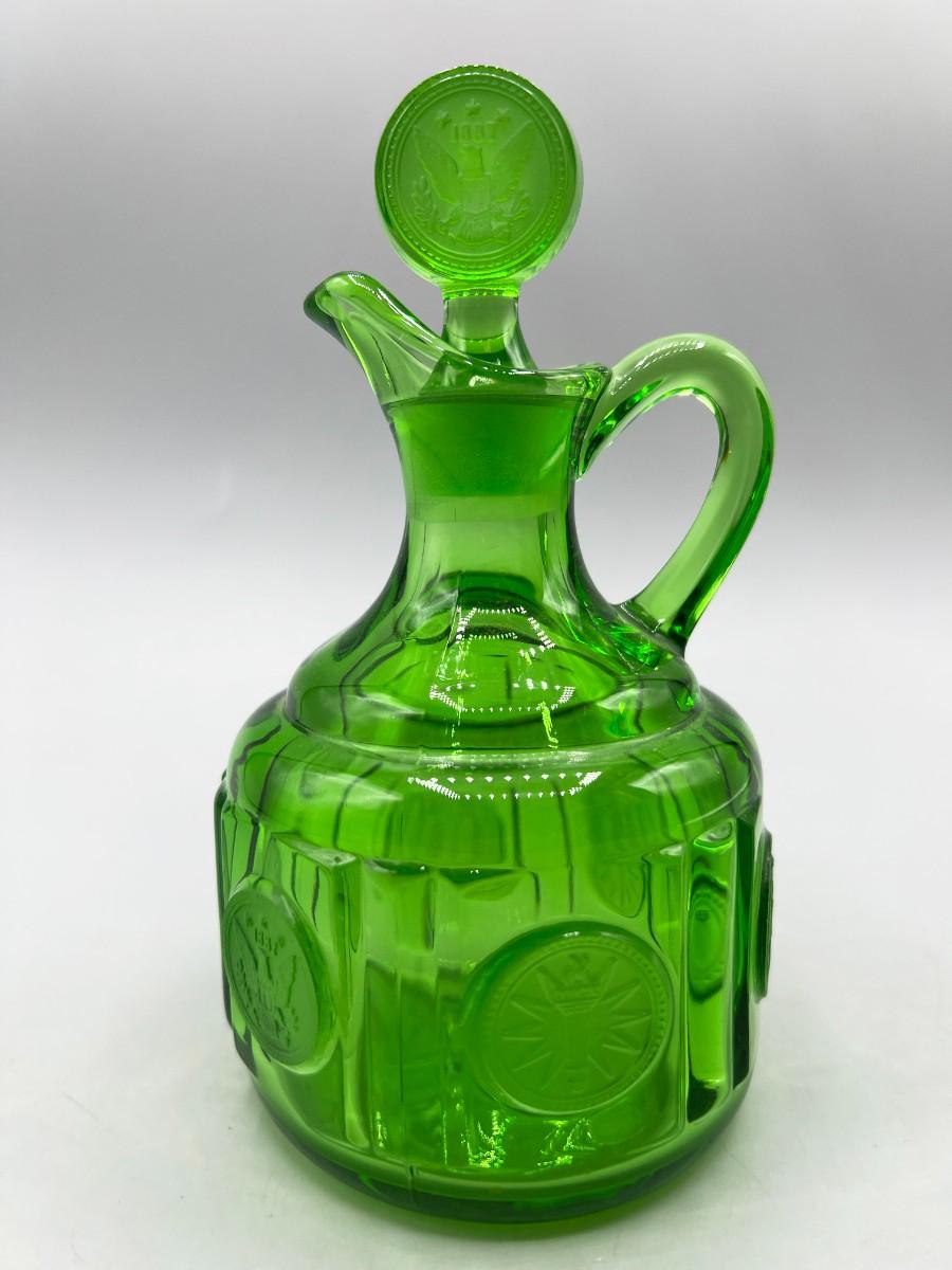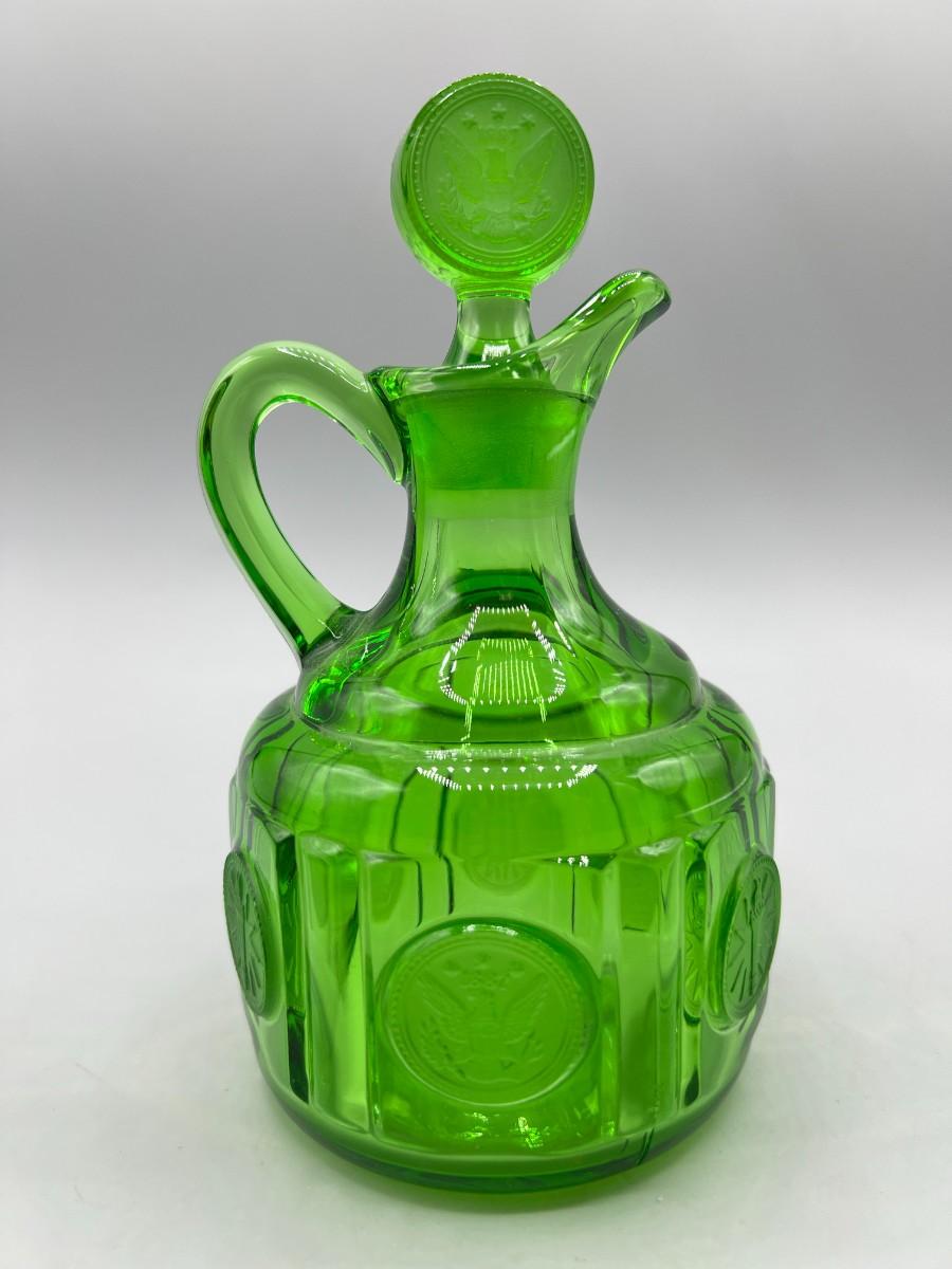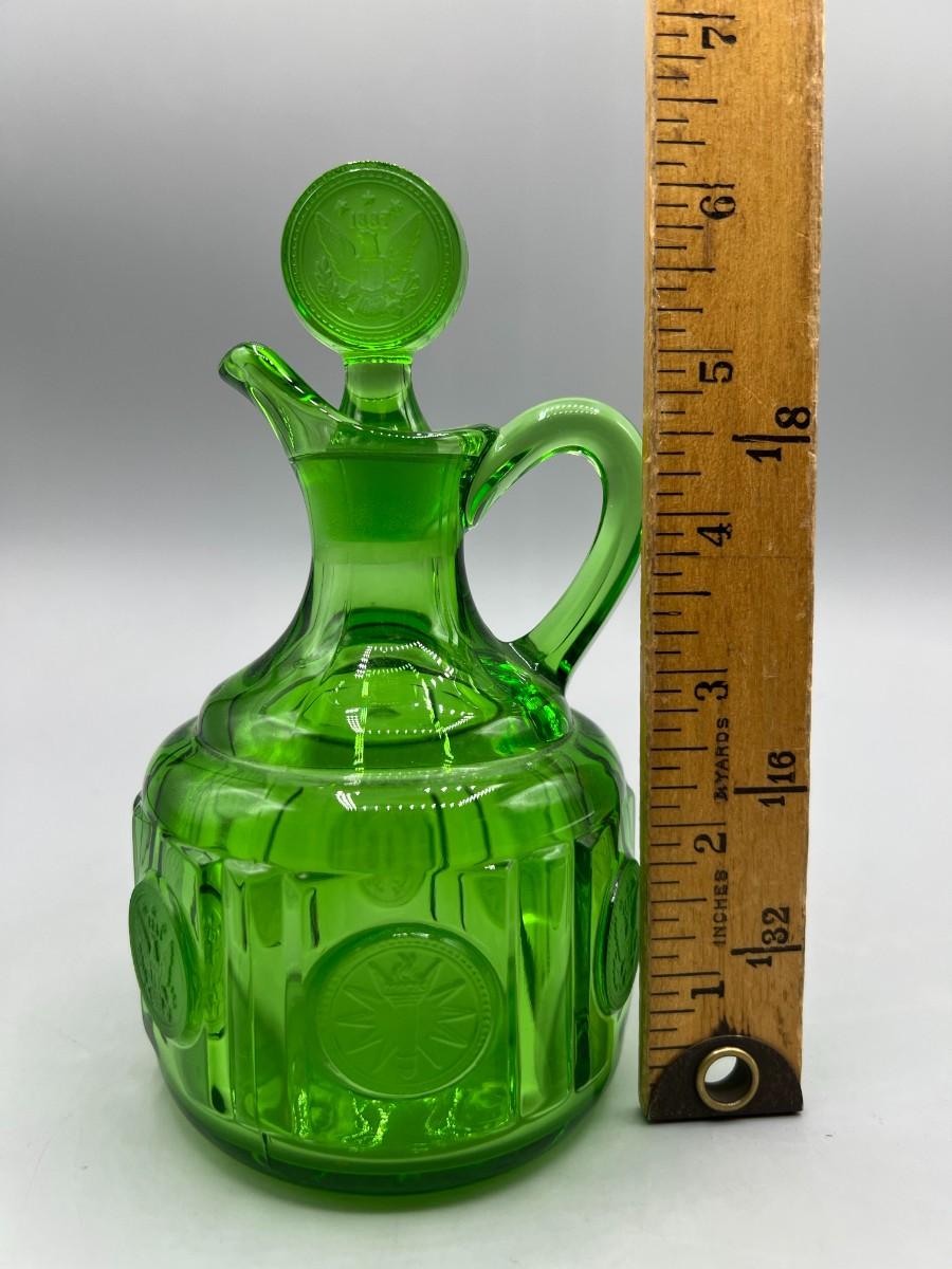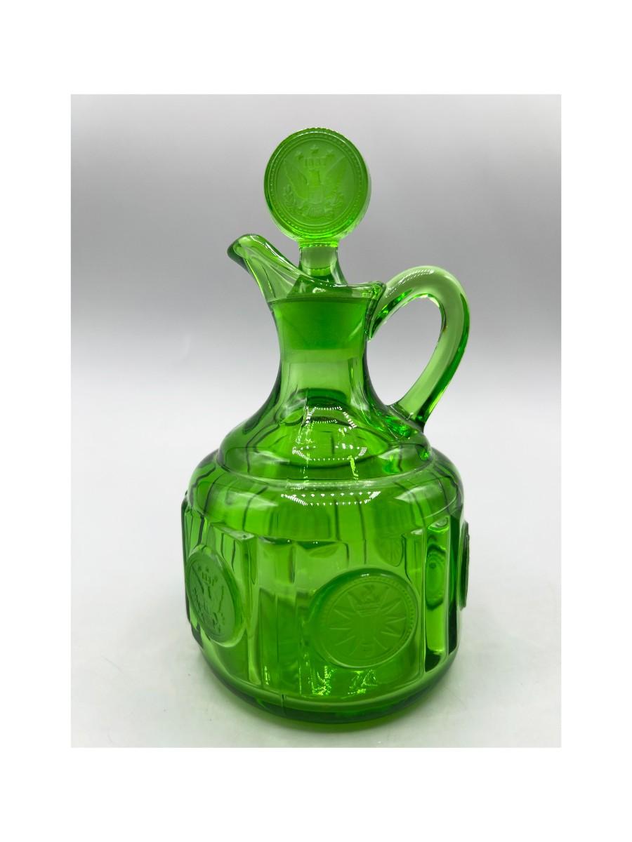 Rare Fostoria Collectible Emerald Green Coin Pattern Art Glass Cruet