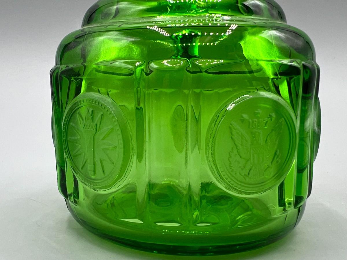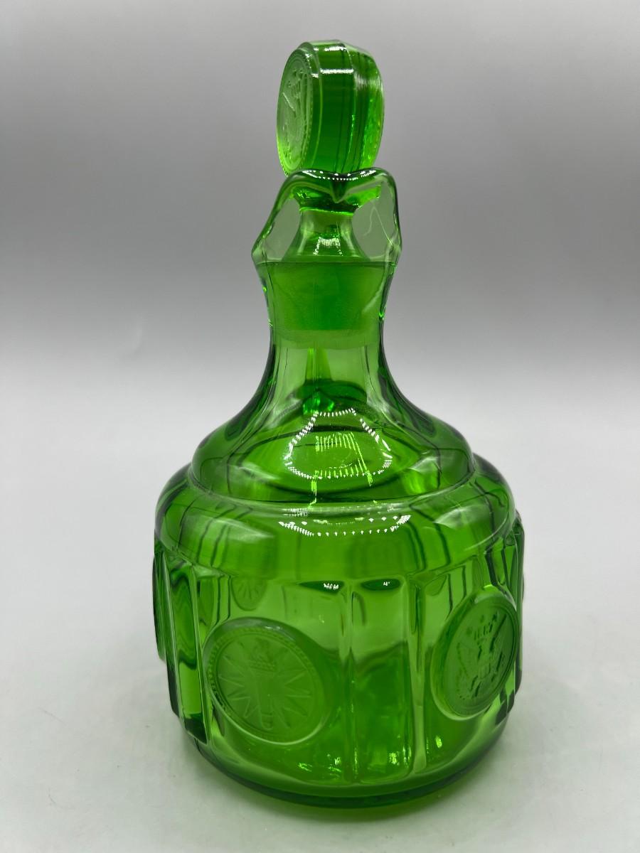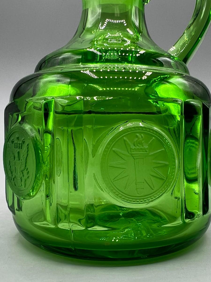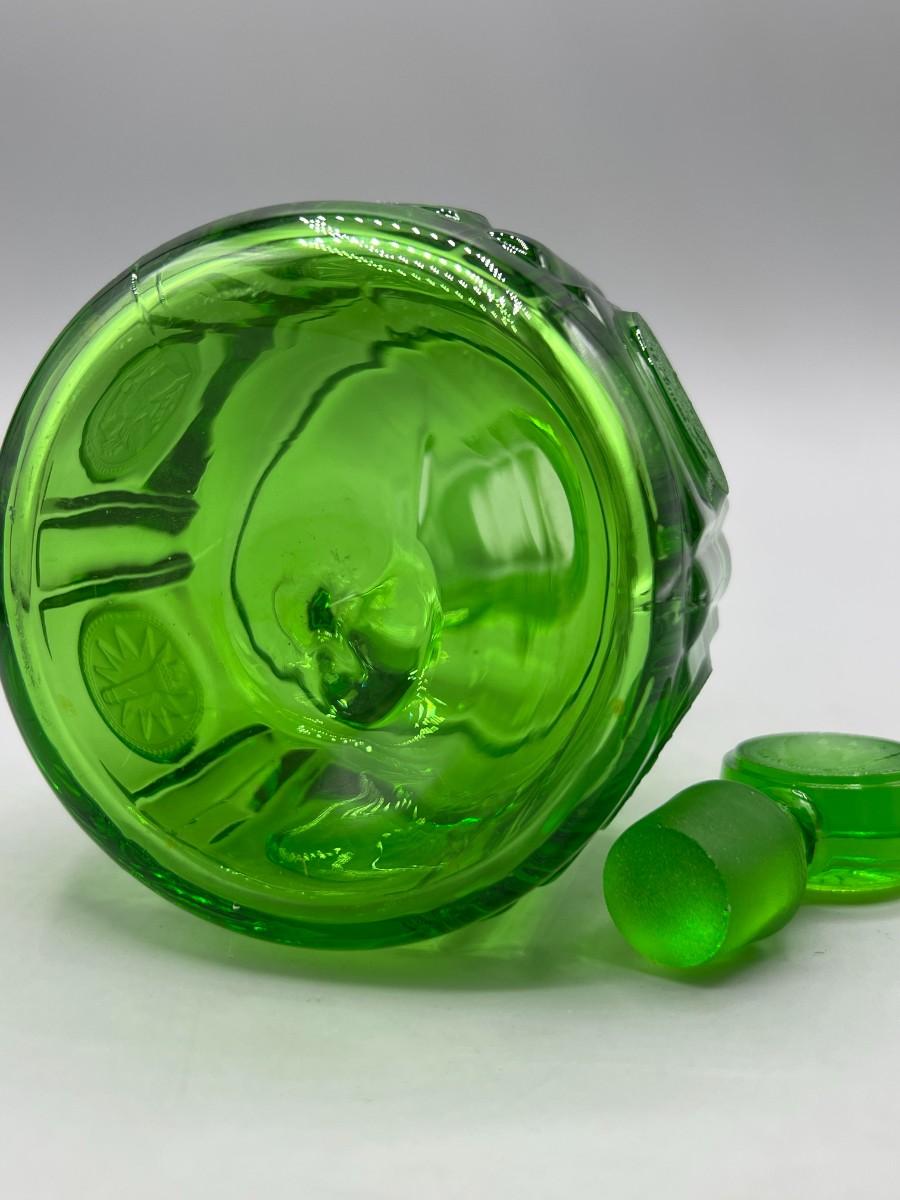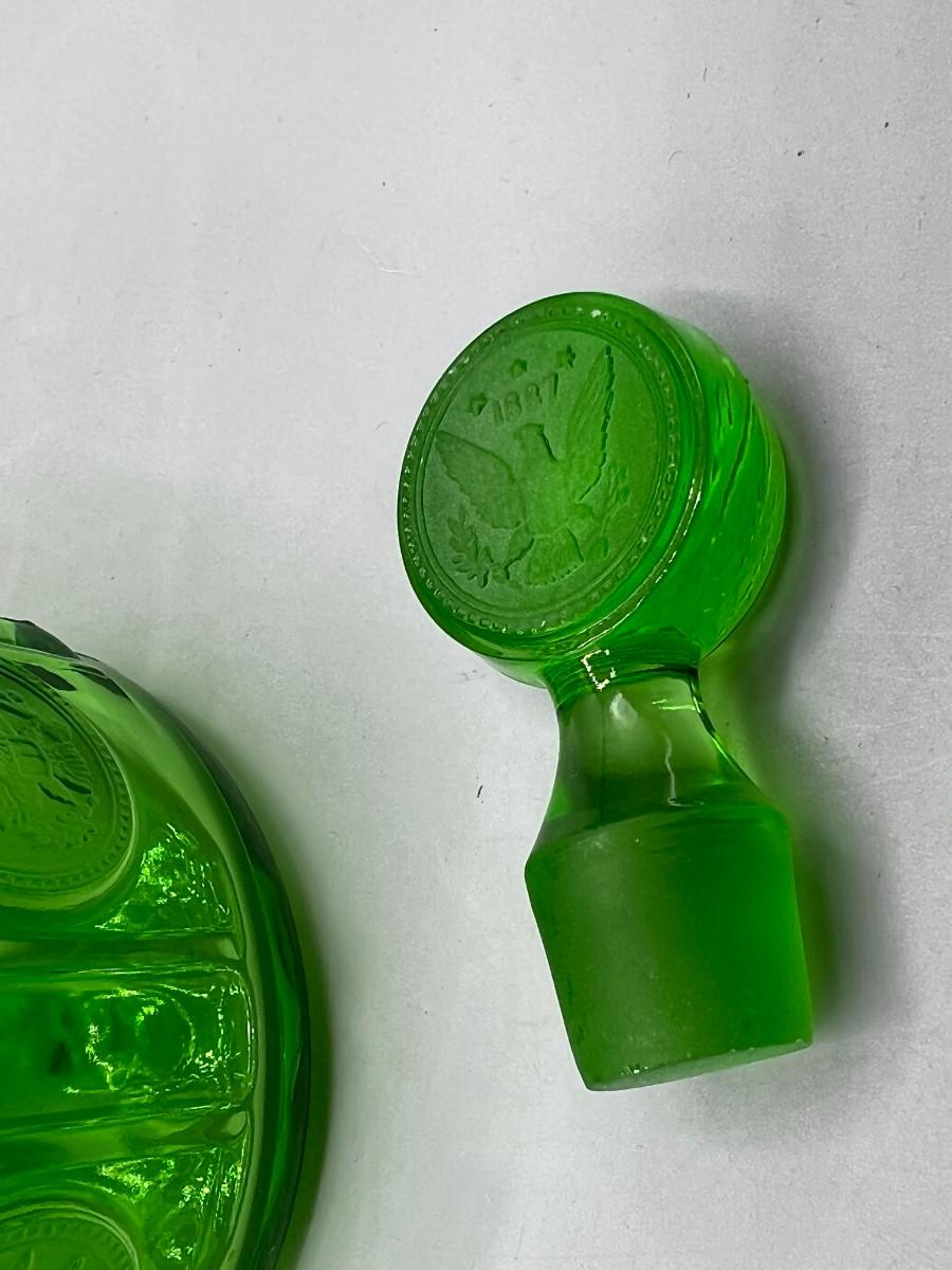 Rare Fostoria Collectible Emerald Green Coin Pattern Art Glass Cruet
