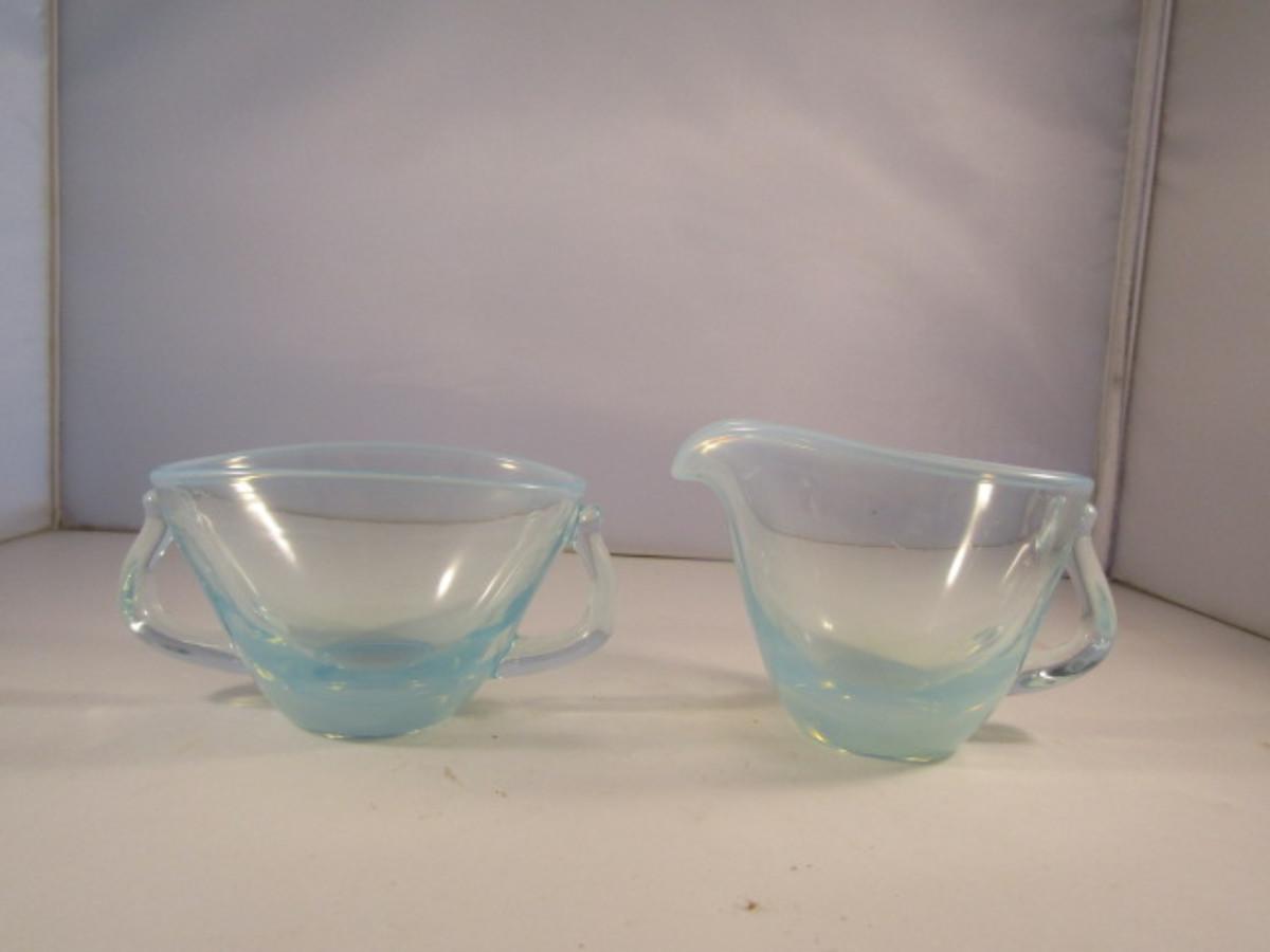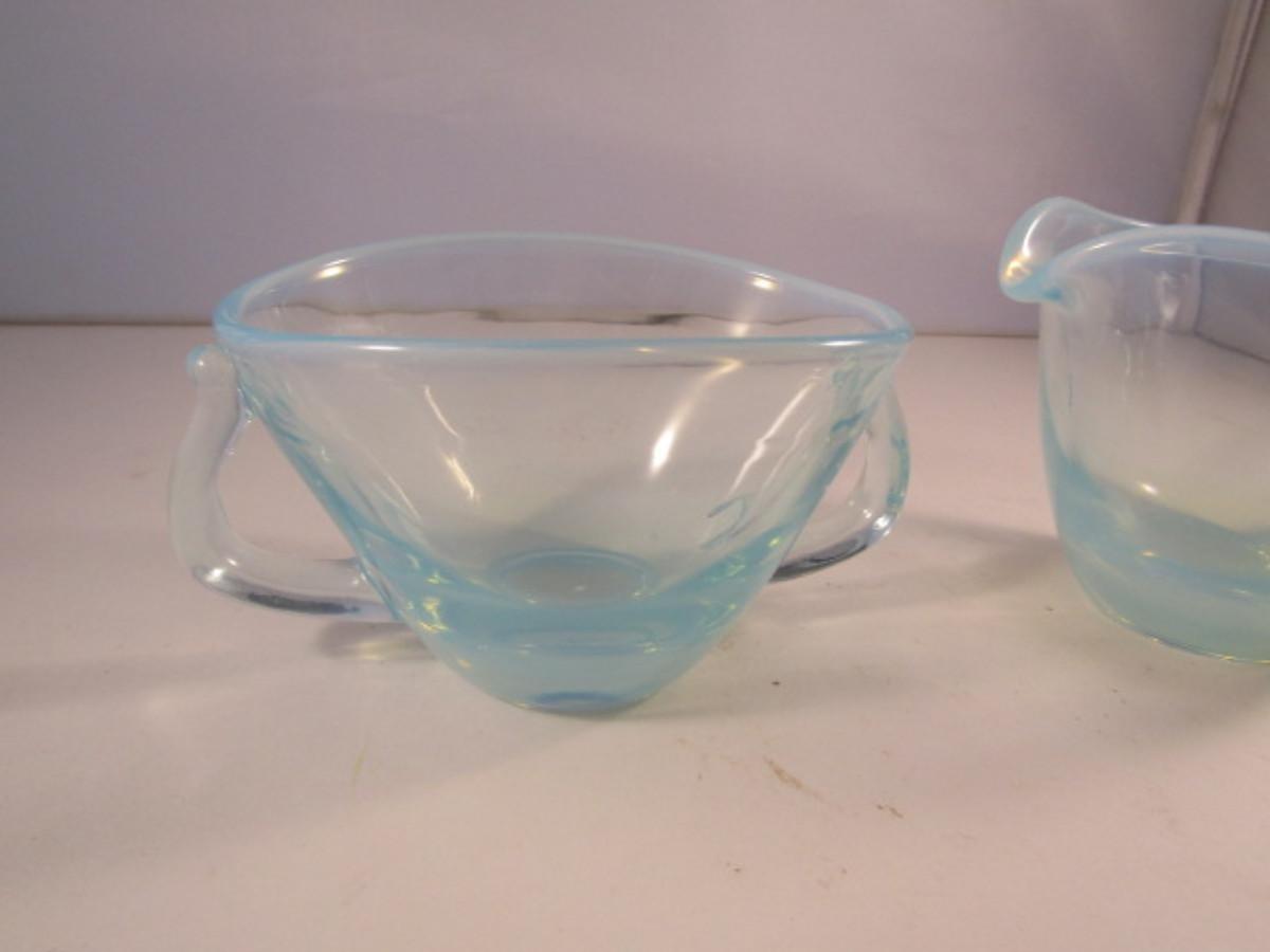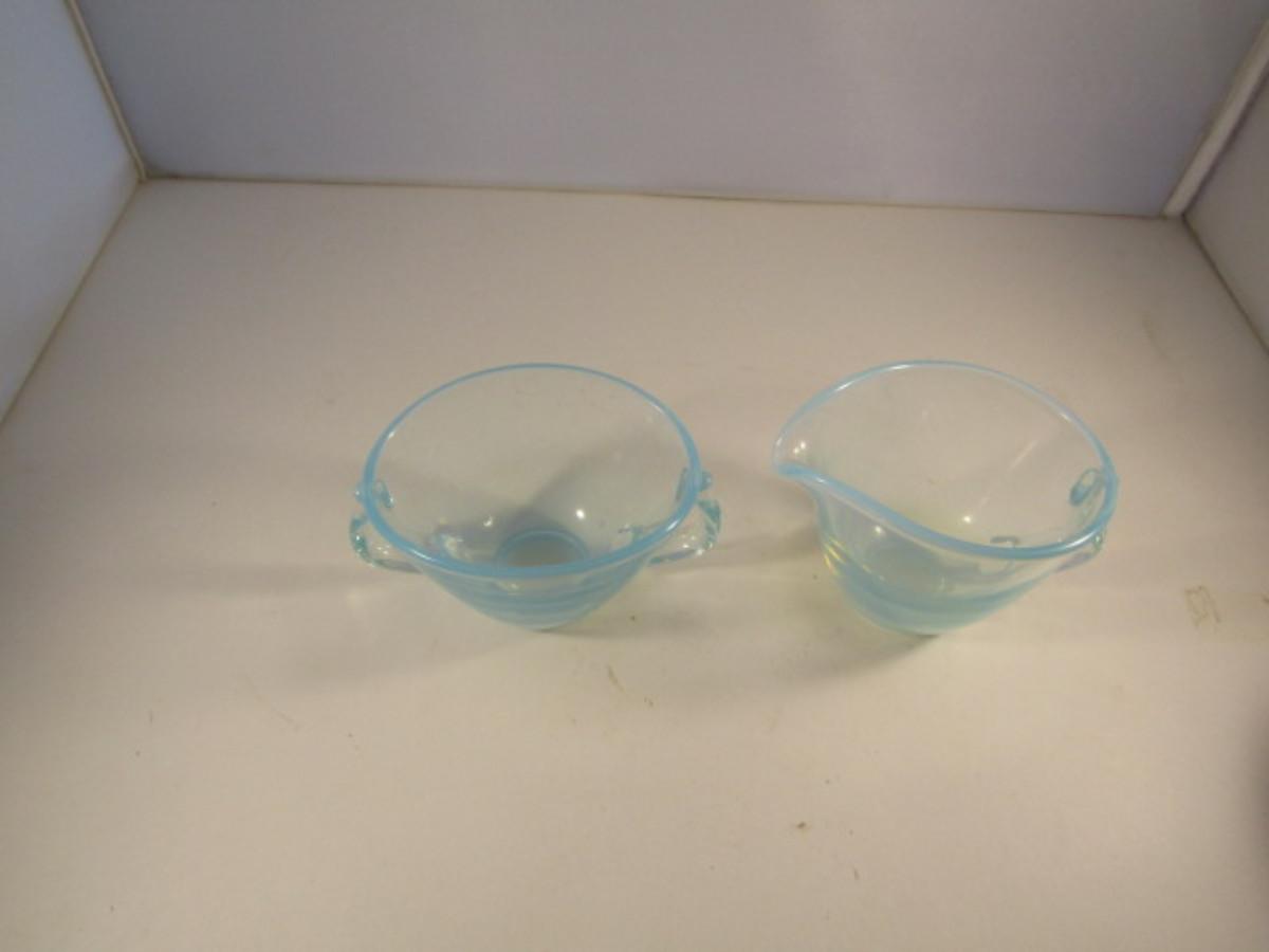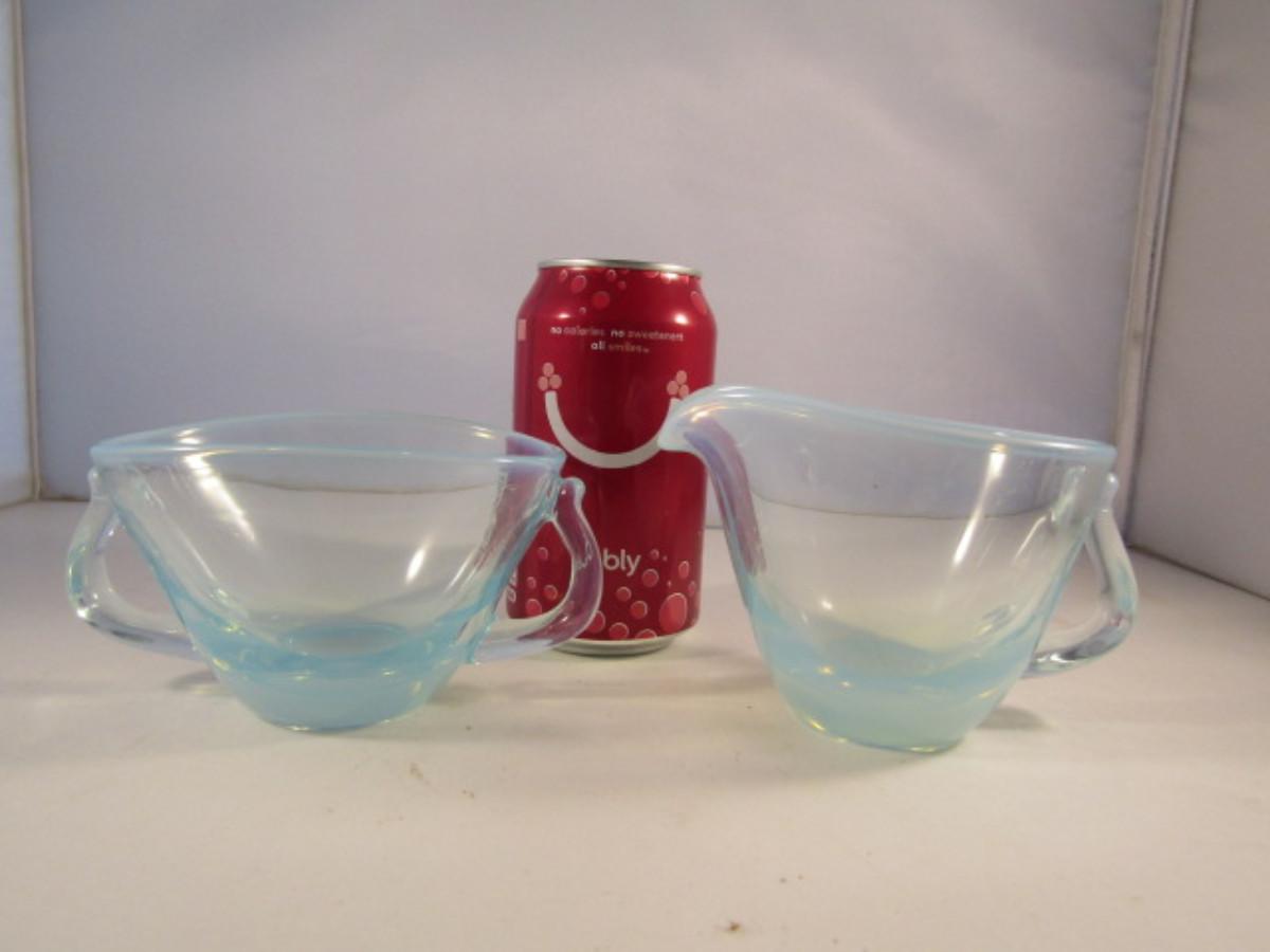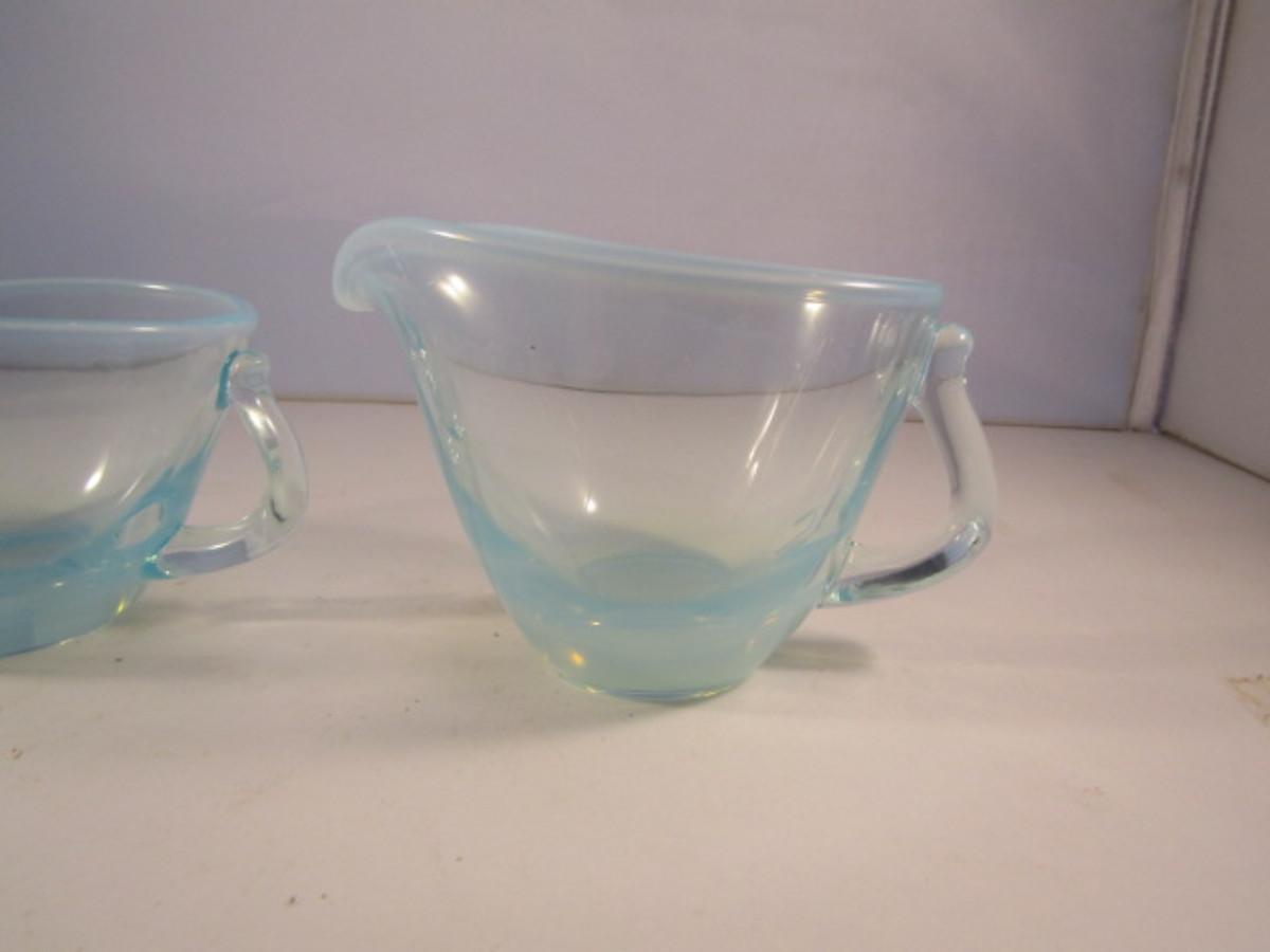Fostoria Seascape Blue Opalescent Creamer and Sugar Bowl