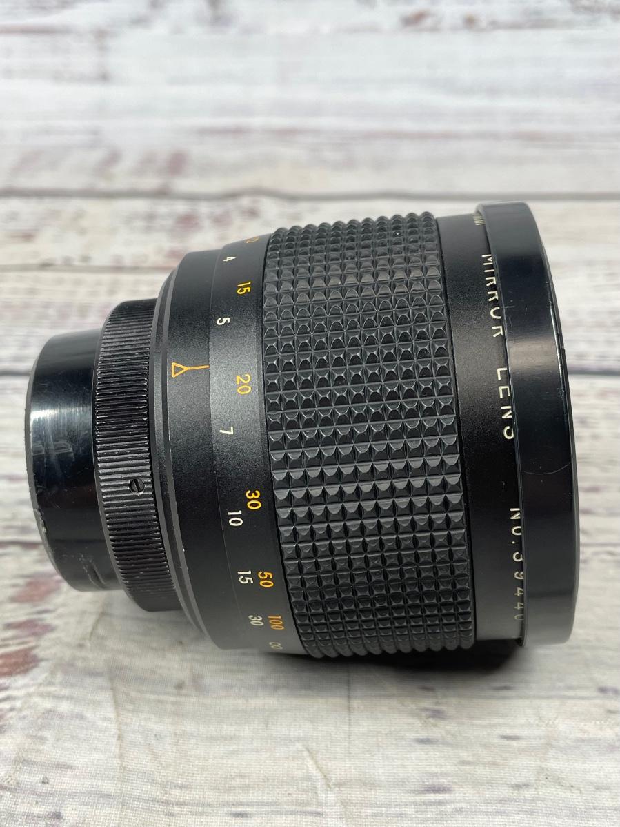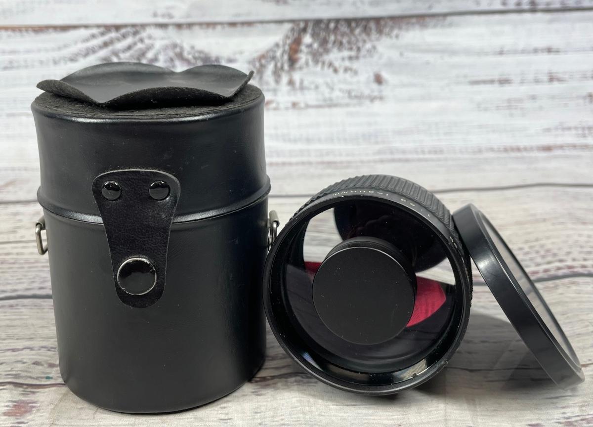 This lens is in great condition and has no noticeable damages. It comes in a case with two coverings to protect the lens. This item was made in Japan. The mirror lens has to be manually adjusted when in use.
