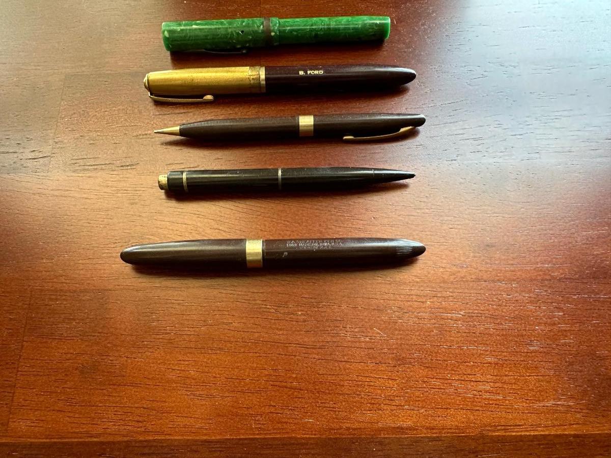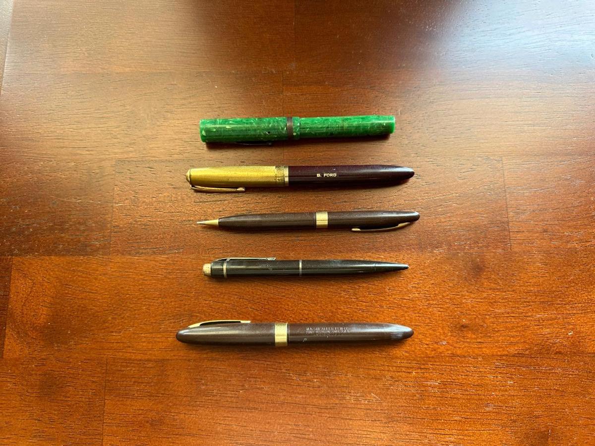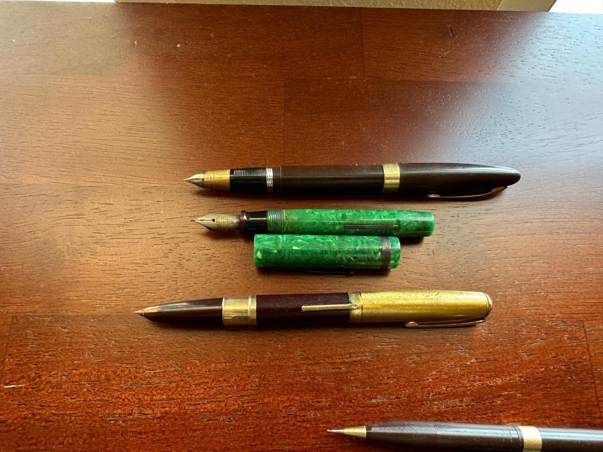 FOUNTAIN PENS AND 2 PENCILS (14K TIP ON ONE PEN)