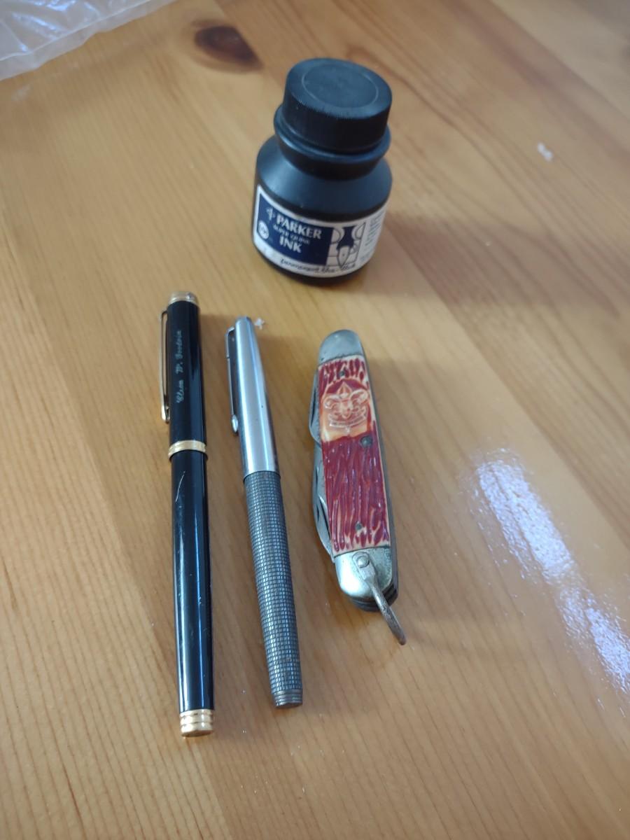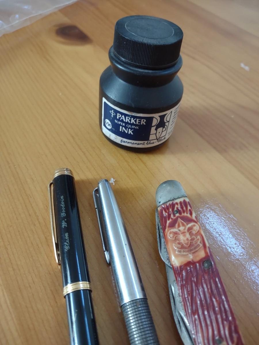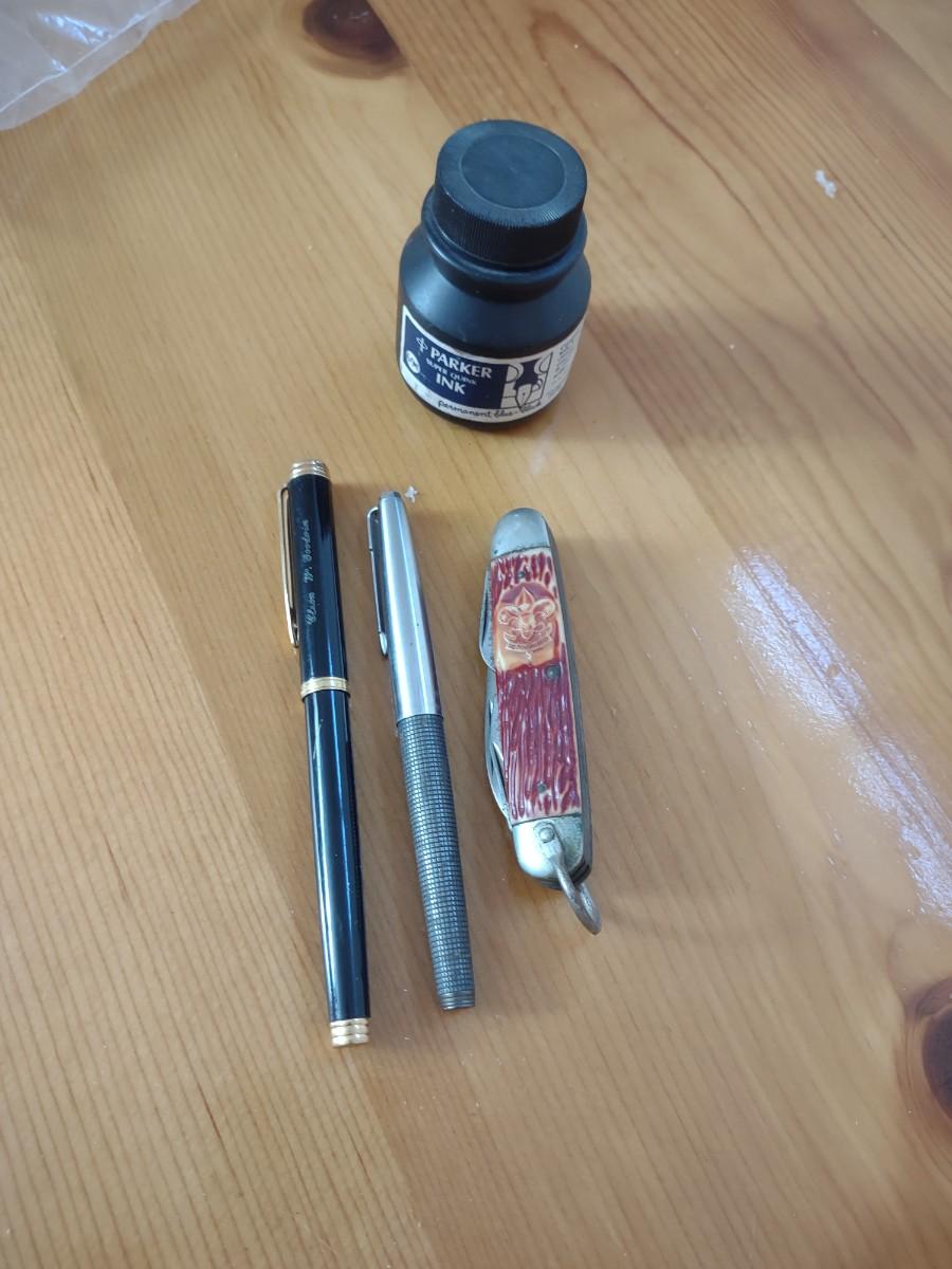 FOUNTAIN PENS, POCKET KNIFE, INK