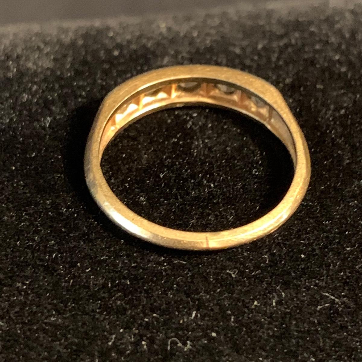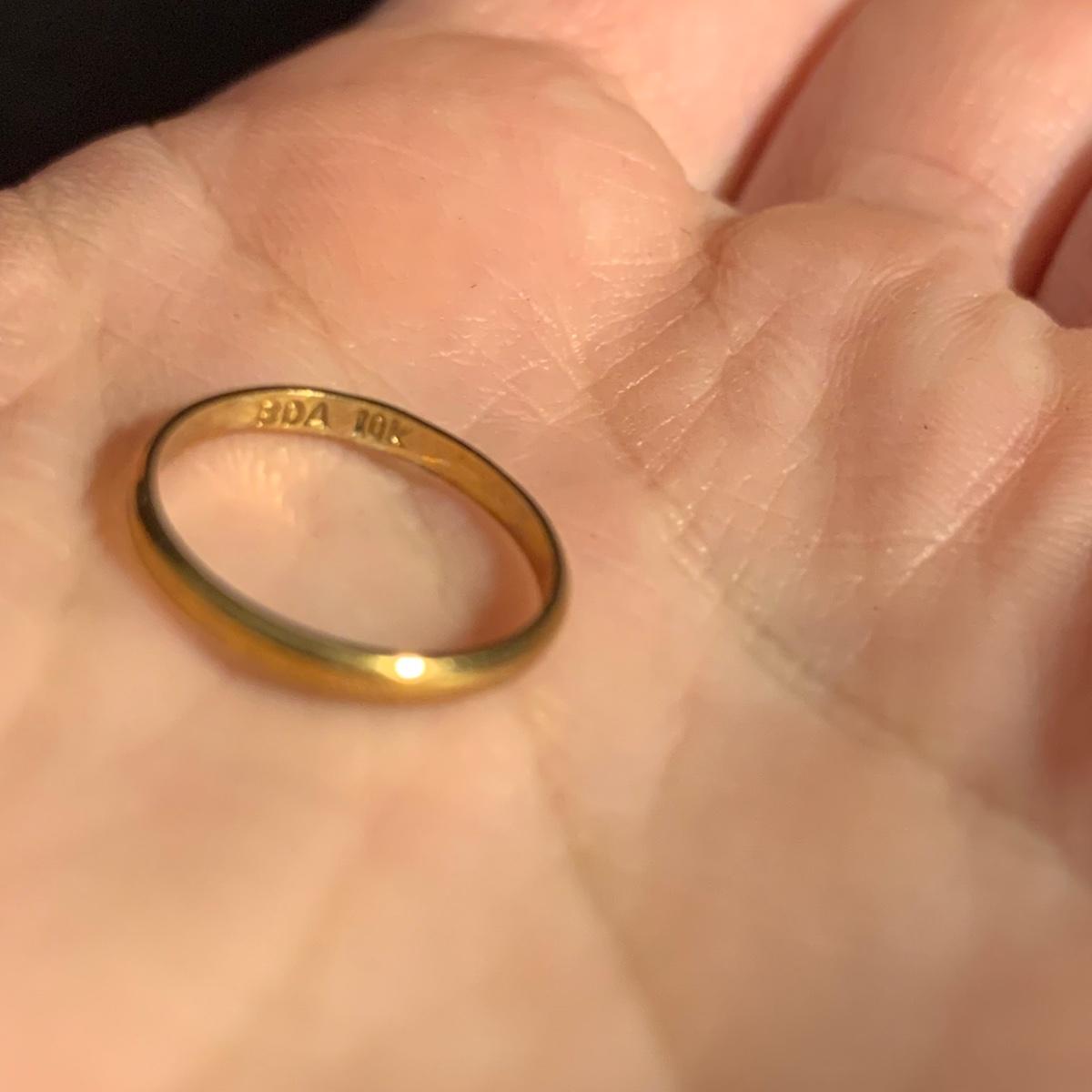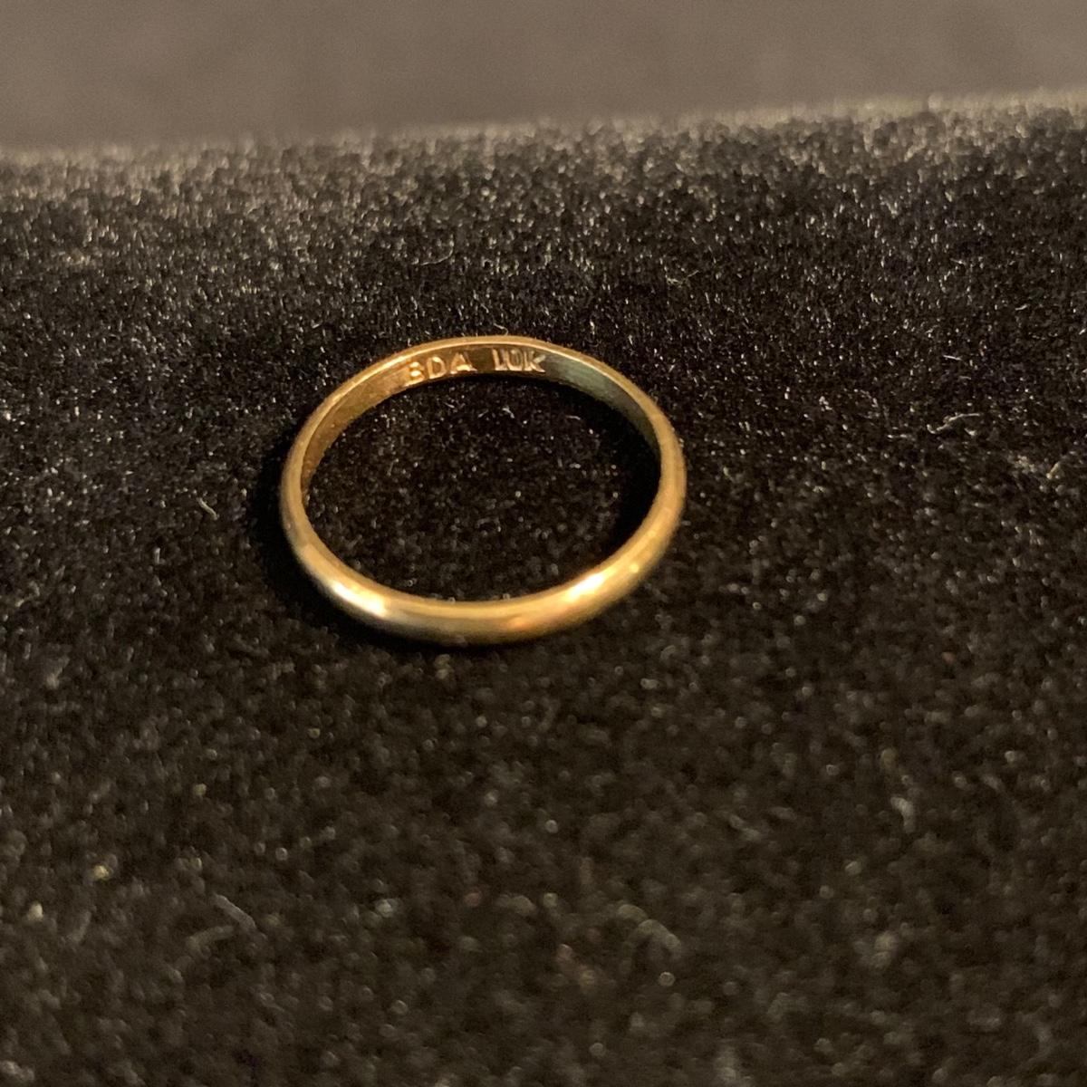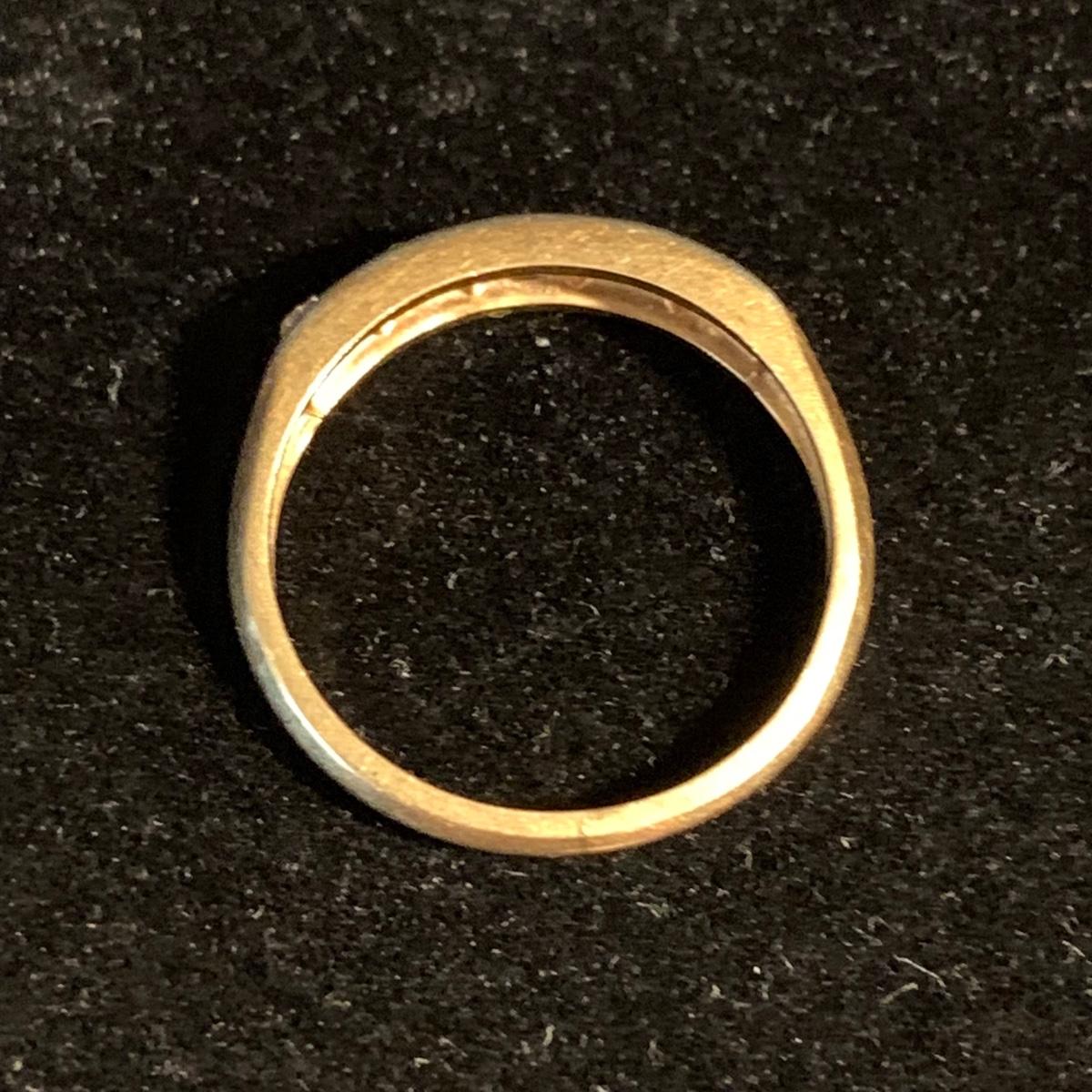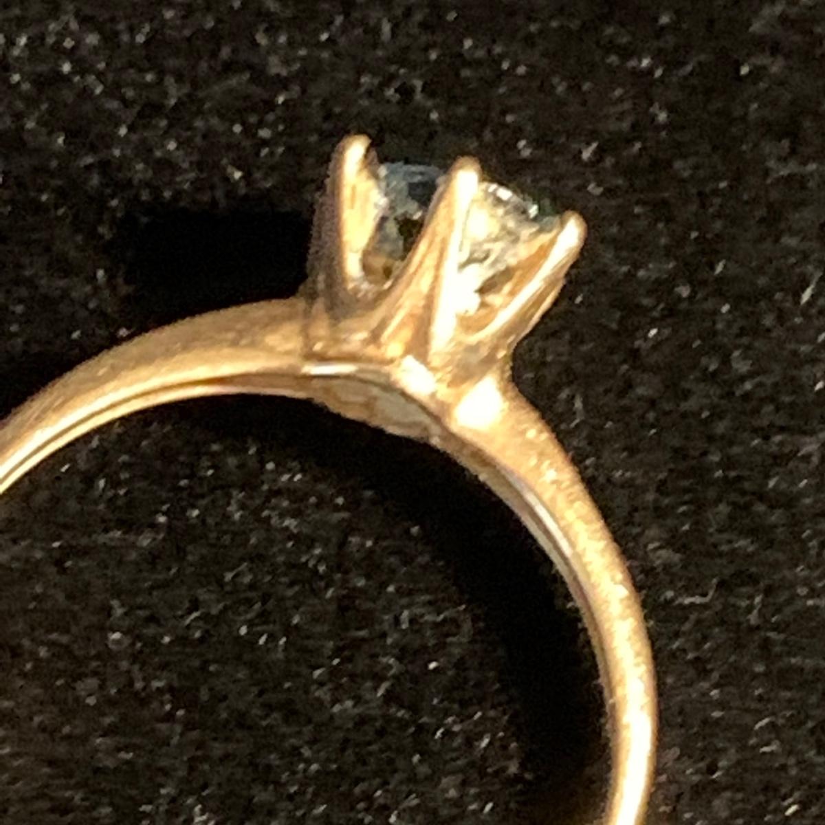 Four rings. The ring with the emerald green colored stone is marked 10K. It has some residue behind the gemstone that needs a little cleaning. The one with the five sparkly clear gemstones is marked 14K and has the initials “BR” circled. Two of these gemstones tested as diamonds. The white gold band is marked ”14K Artcarved”. The baby ring is marked “BDA 10K”. Shipping available.