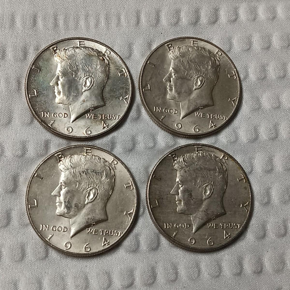 FOUR 1964 KENNEDY SILVER HALF DOLLARS