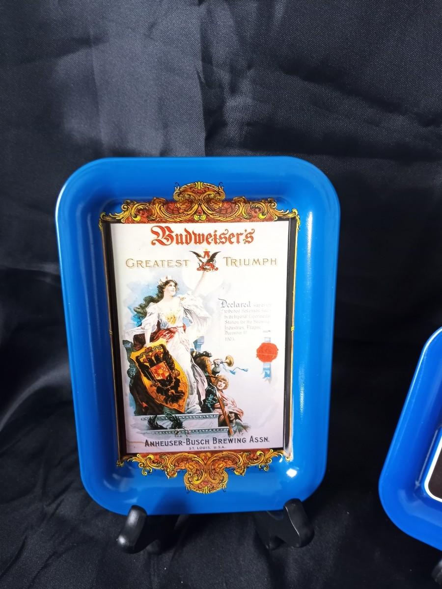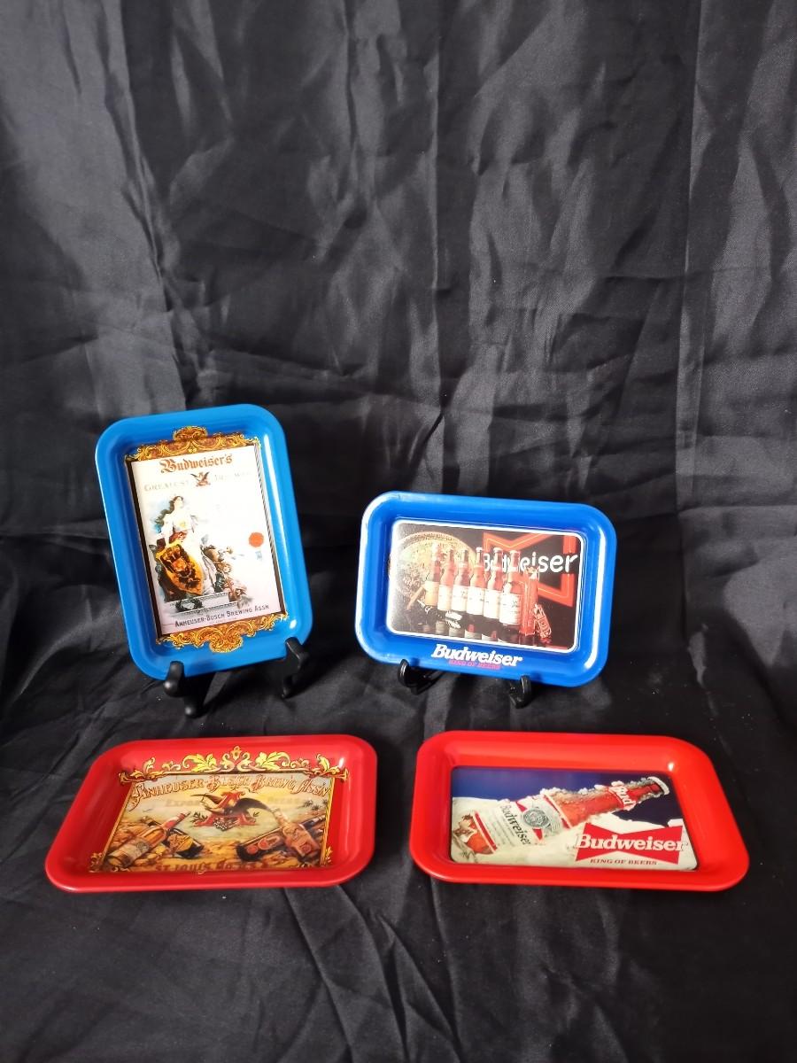 FOUR 1992 BUDWEISER TIN TRAYS APPROX. 5X7