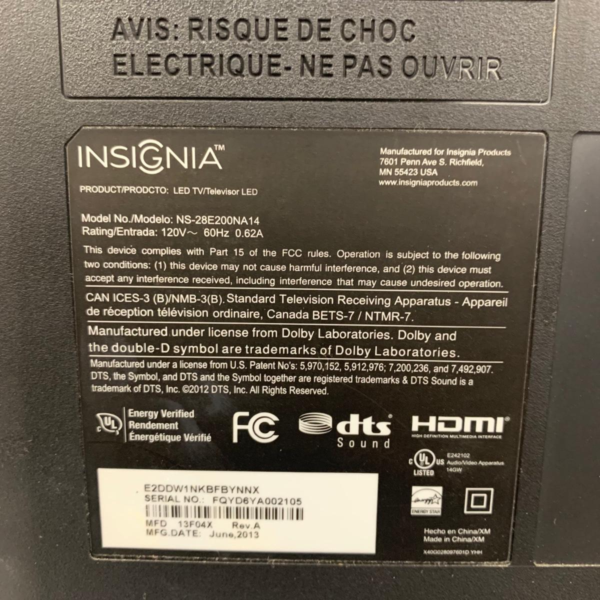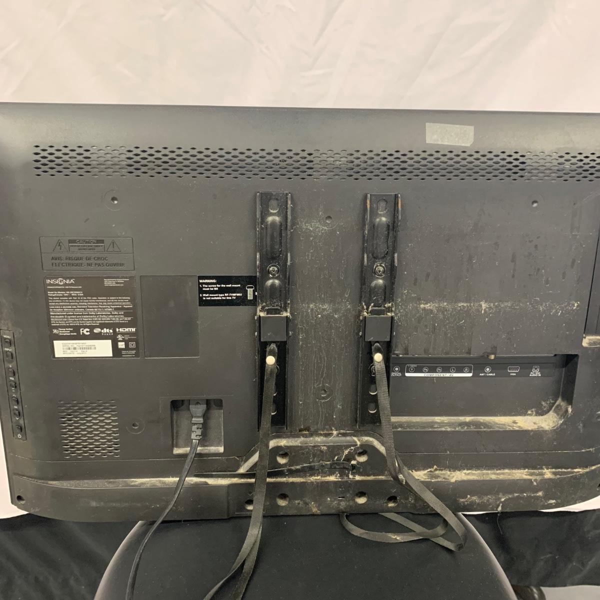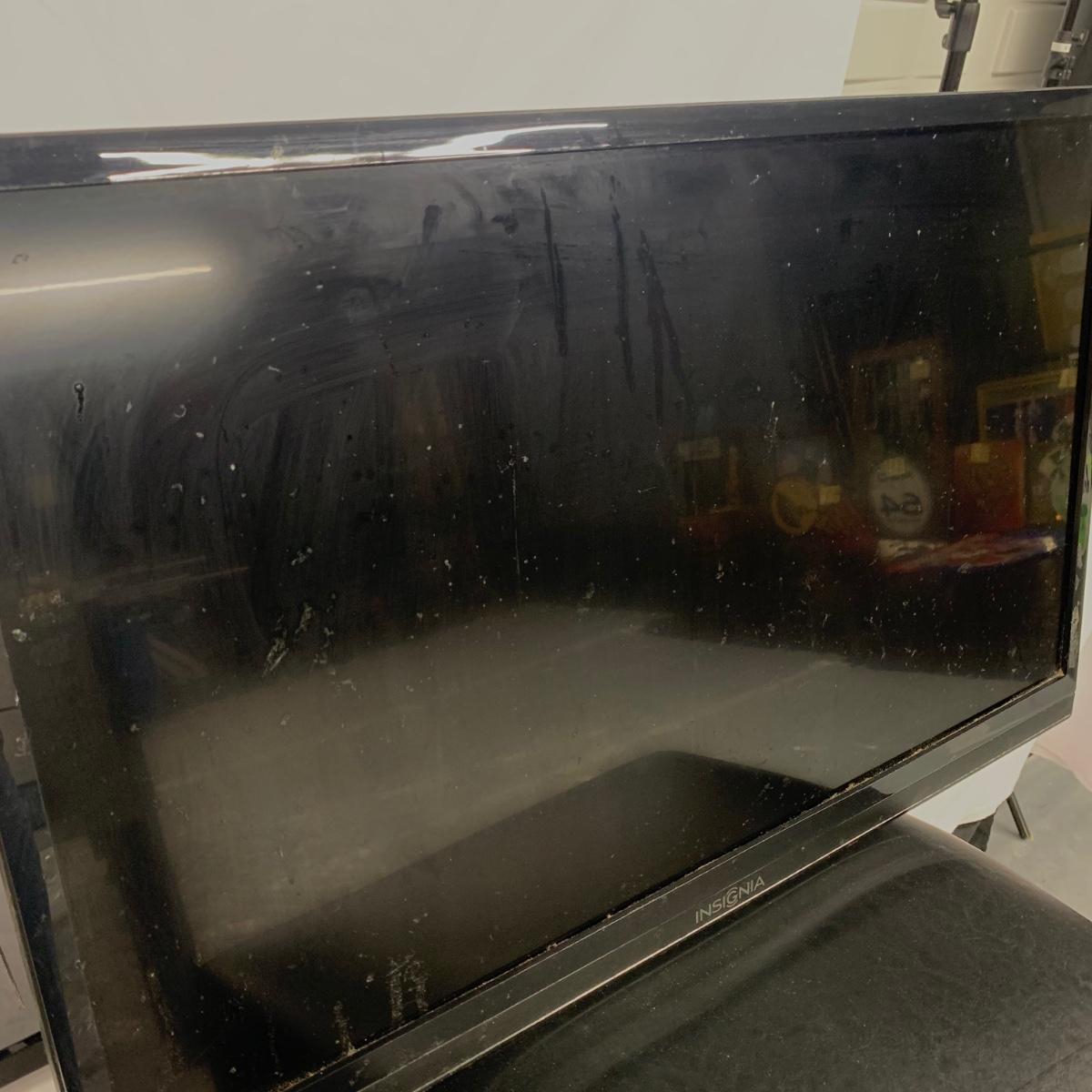 This lot includes four 27” screen Insignia brand LED TVs, Model No. NS-28E200NA14. Each TV comes with a power cord. All have mounts, but some appear to have broken pieces. We cannot verify that all mount parts needed are included. TV screens are quite dirty and need a thorough cleaning. Local pickup only.