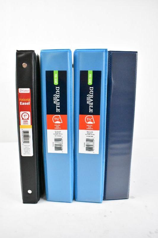 Four 3-Ring Binders: 1 Black, 1 Navy, 2 Turquoise