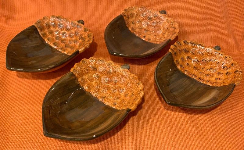 Four (4) Acorn Candy / Serving Bowls 7/1/2" x 6" x 2" (TINY CHIP ON FRONT BOWL) - New