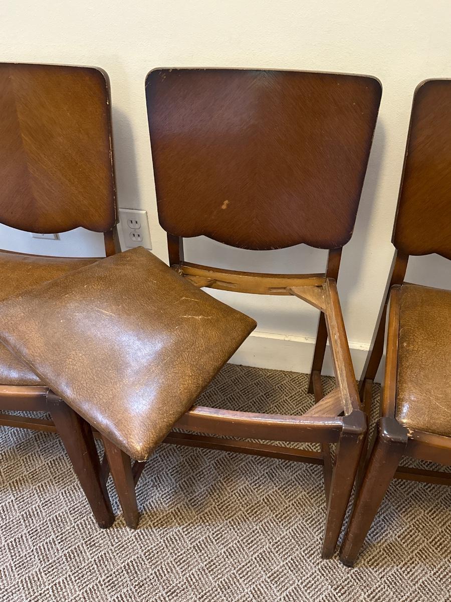 Chairs just need a little TLC ~ Seats are removable for easy recovering ~ 33” H x 18” W x 19” D