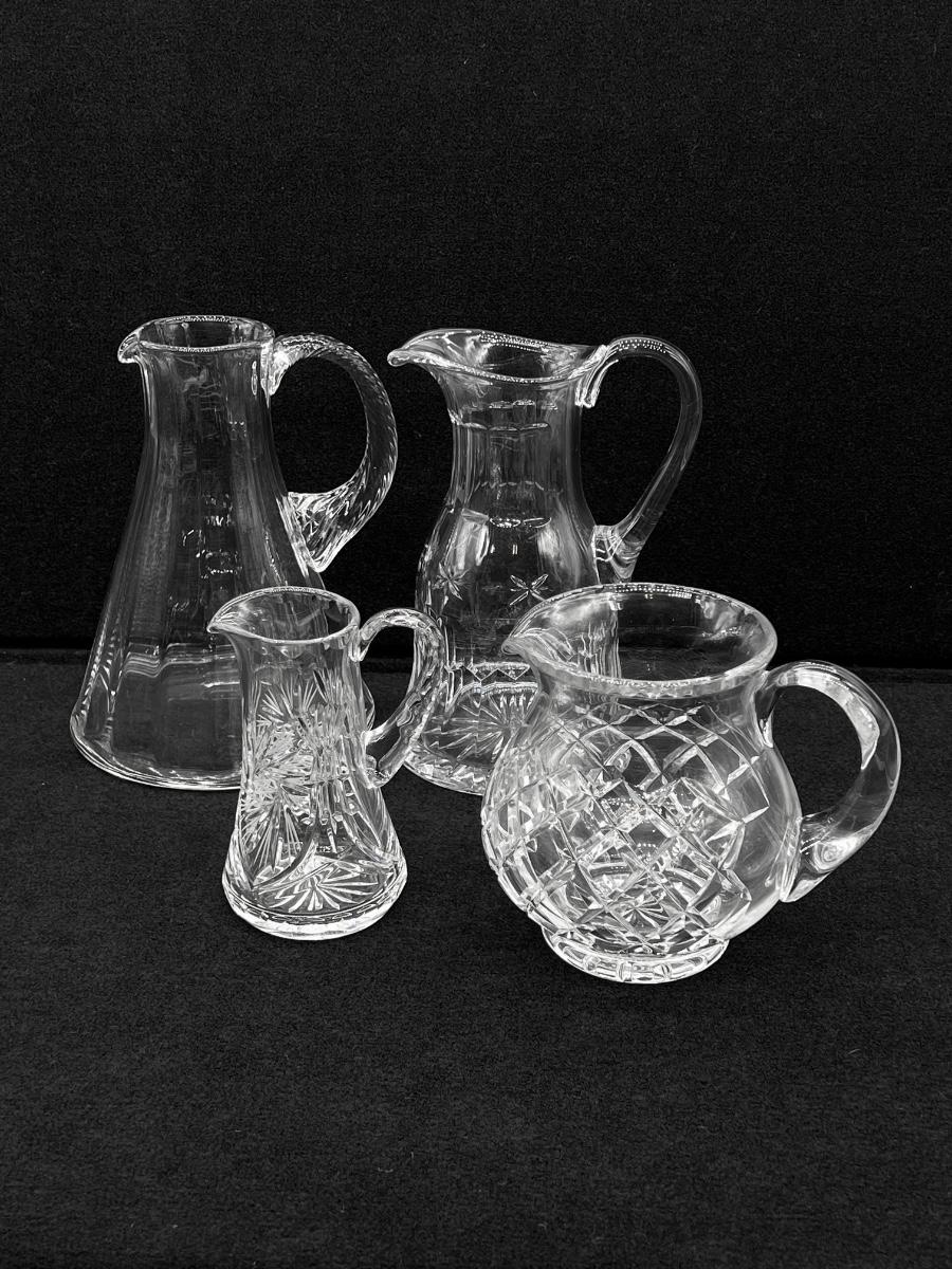 Four (4) Assorted Crystal Glass Pitchers