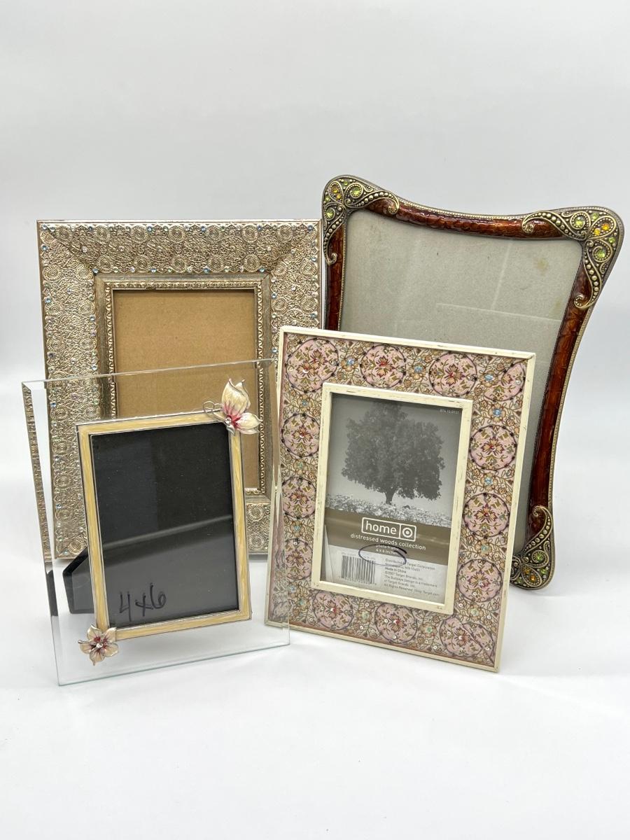 Four (4) Assorted Enameled & Bejeweled Picture Frames
