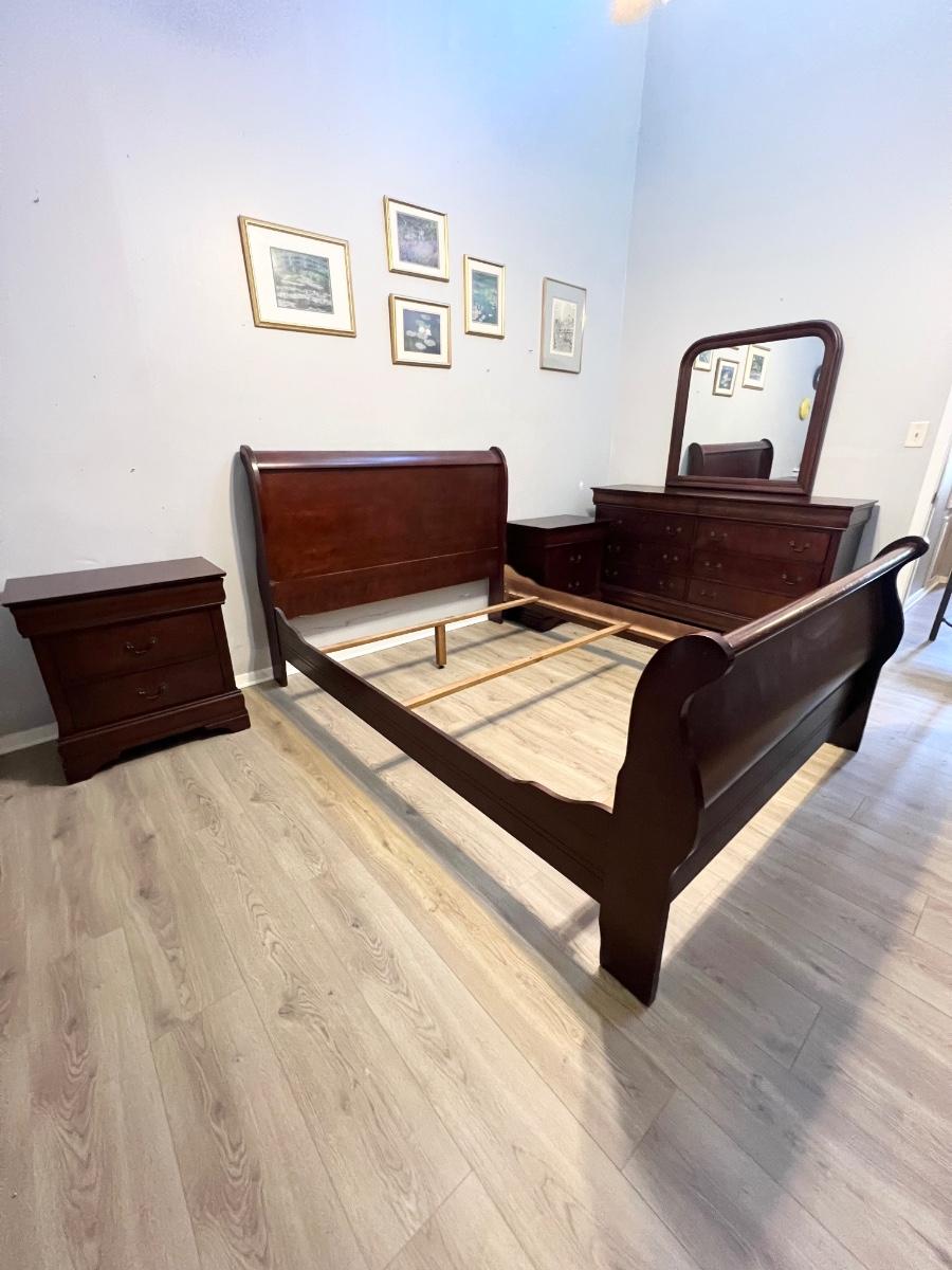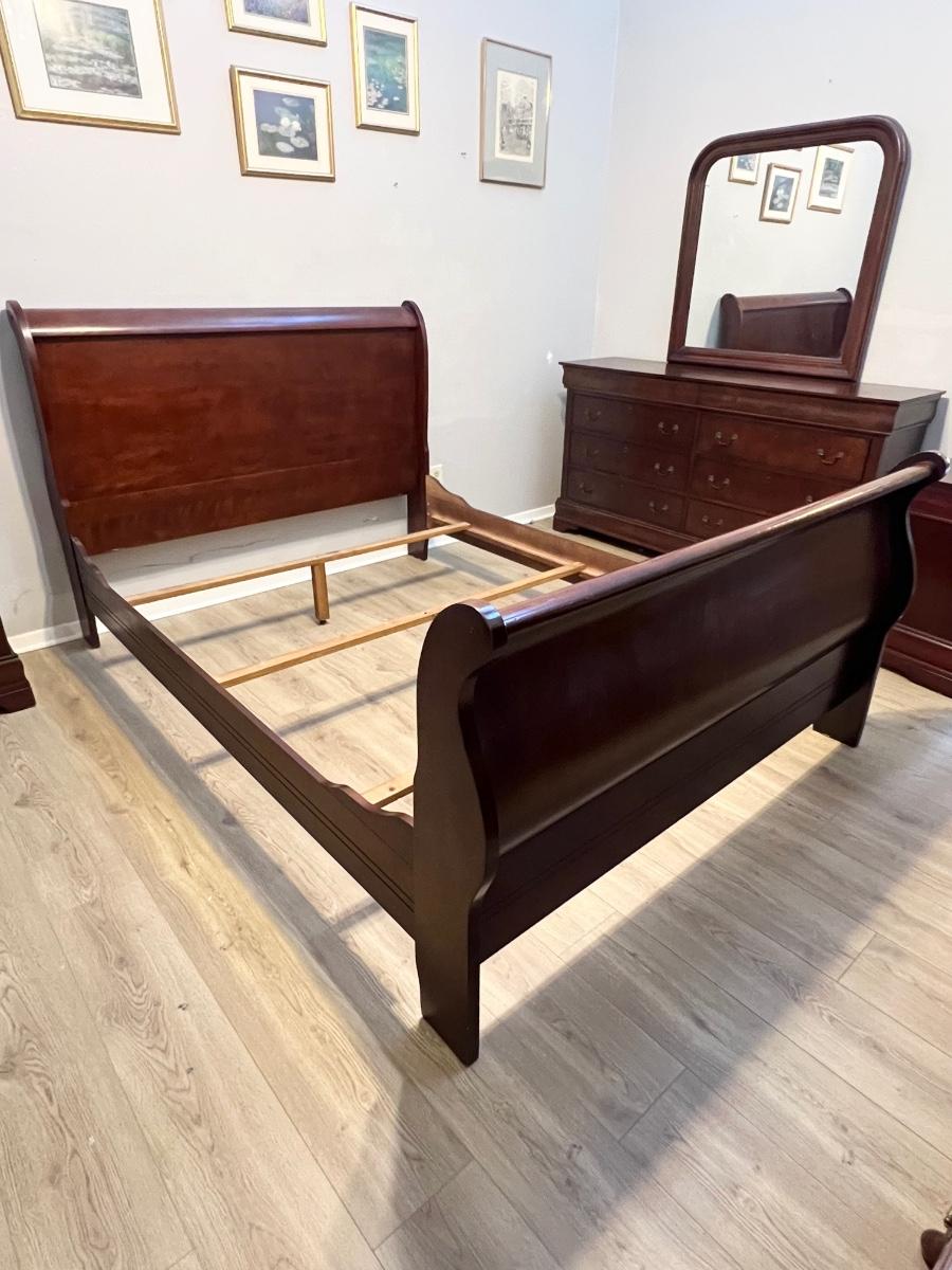 Four (4) Piece Solid Wood Mahogany Queen Sleigh Bed Bedroom Suite