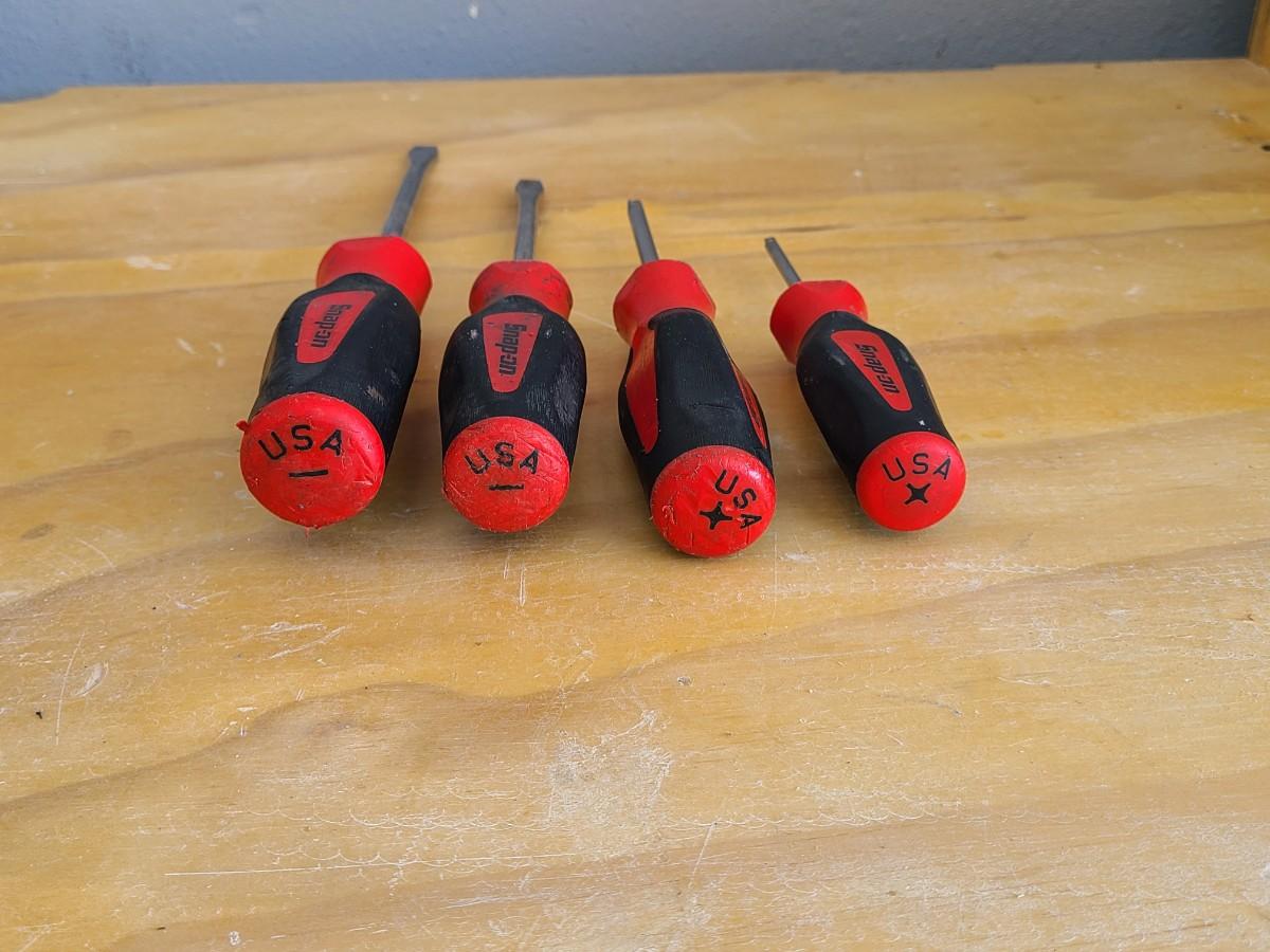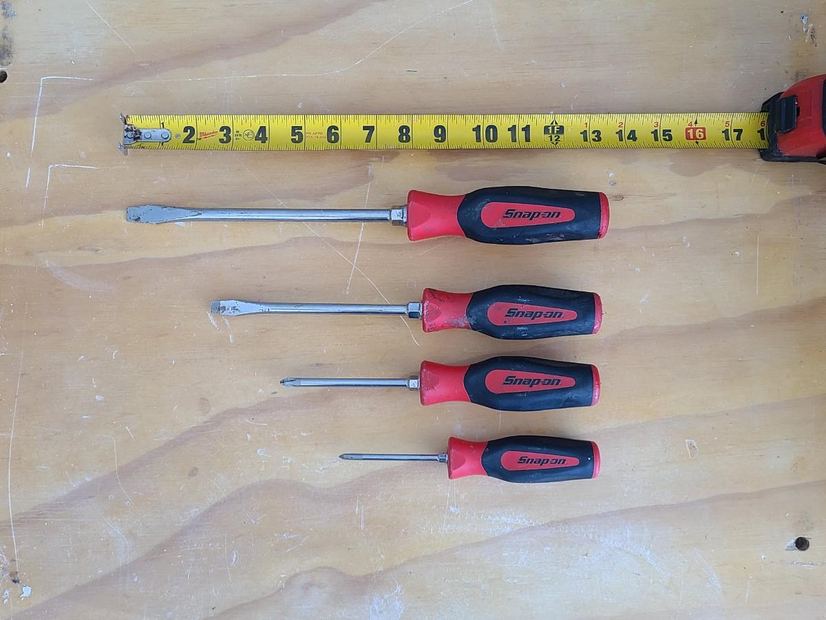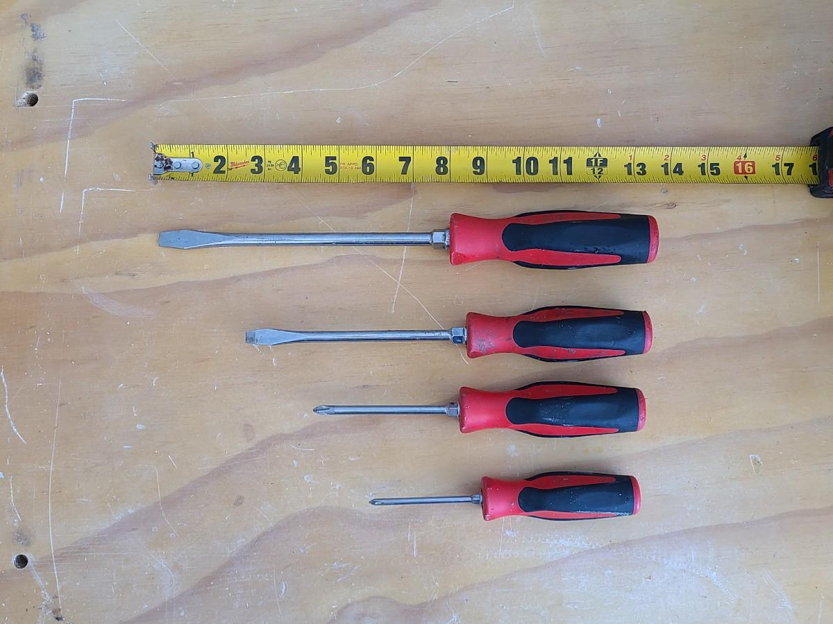 Two Regular Head 3/8 and 5/16 Screwdrivers ª› and Two Philips Head No.1 and No.2 Screwdrivers ª›.