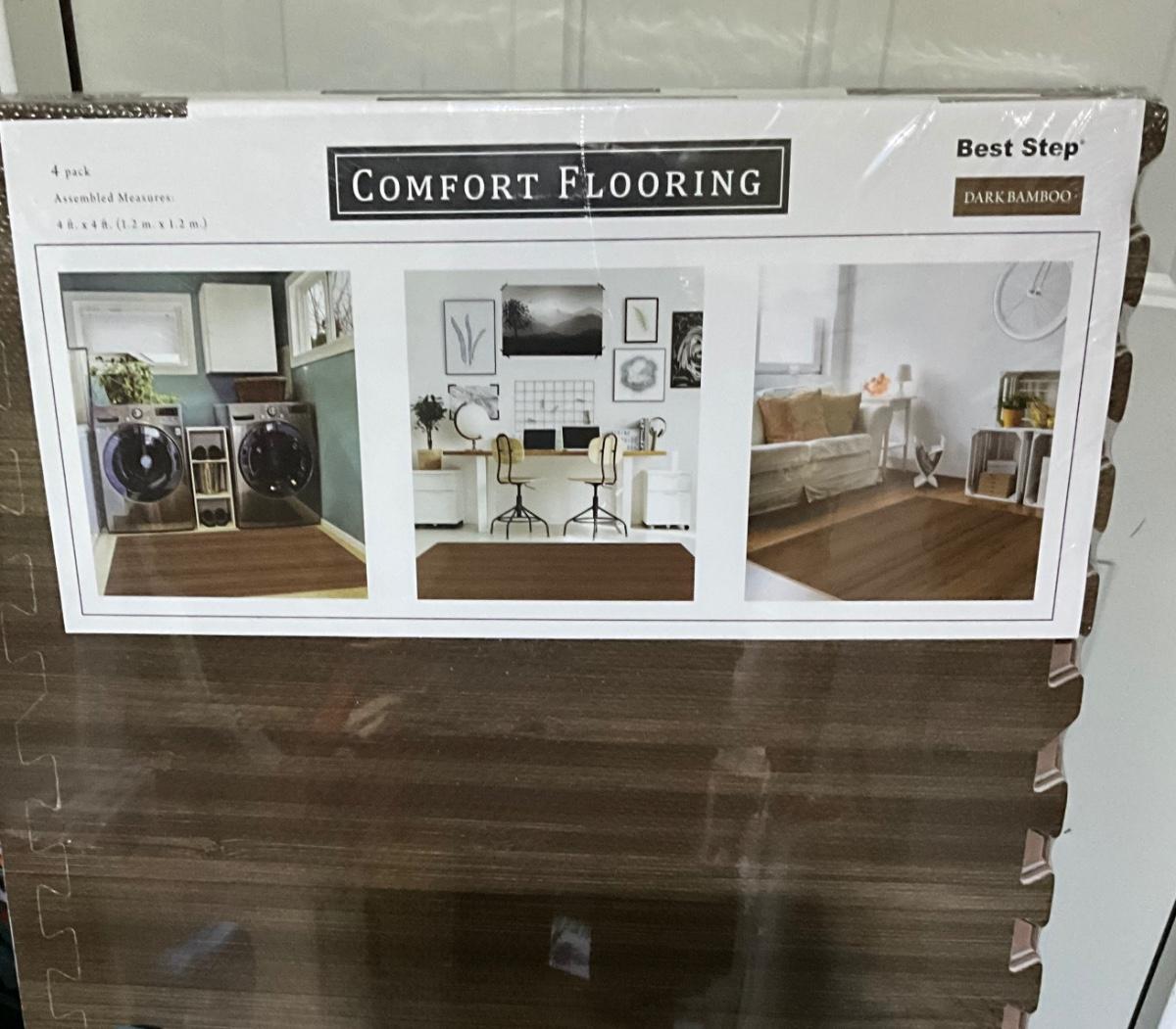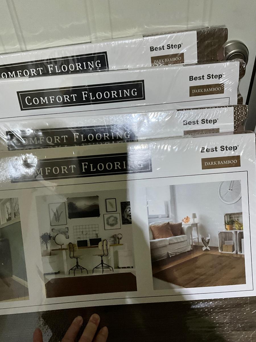Four packs with four in each pack, of comfort flooring. Dark bamboo