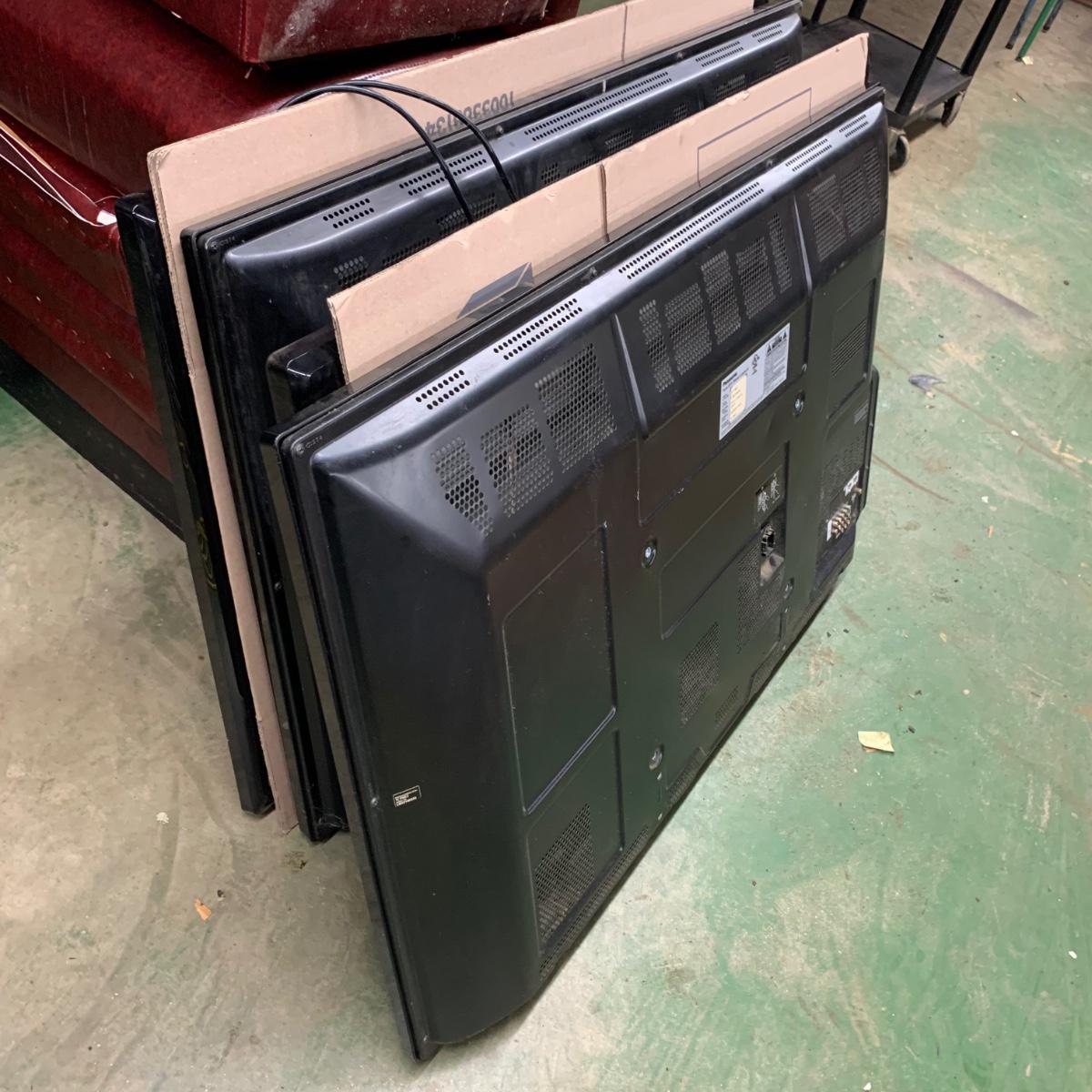 Four 50” Panasonic Plasma HDTVs, Model TV-P50C2. All powered on when plugged in. Only one power cord is included. All TVs are a bit dusty, but otherwise appear to be in very good condition. Local pickup only. The winning bidder will need to bring help to move the items as they are quite heavy. There is easy access to load these items into your vehicle. They will not have to be moved up or down any stairs.