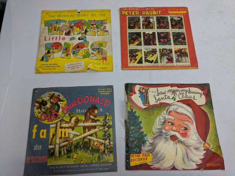 Four 78 RPM Kids & Holiday Records: Old McDonald, Peter Rabbit, 3 Little Pigs