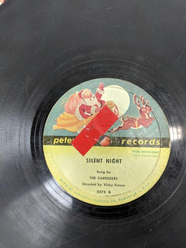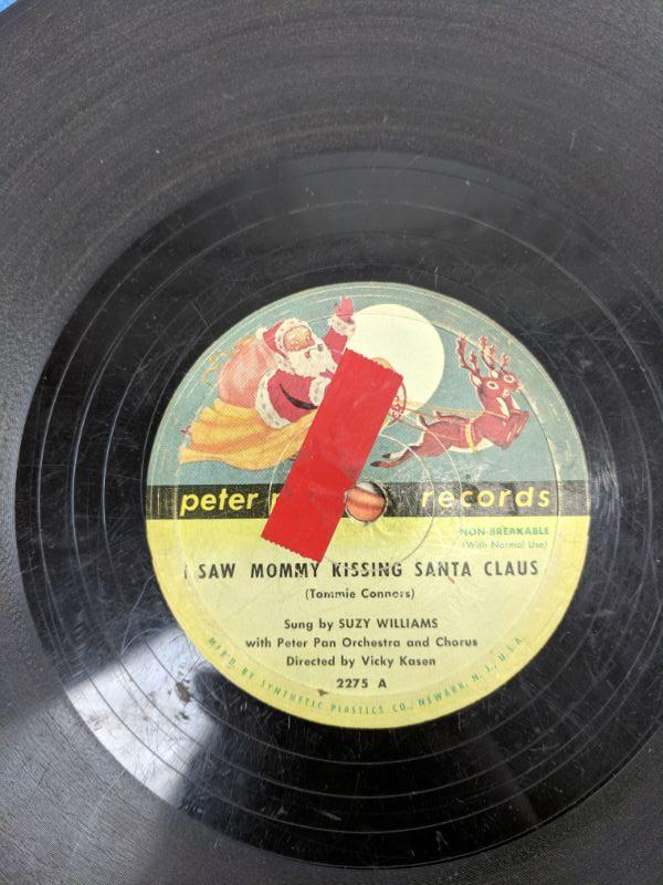 Four 78 RPM Records: Old McDonald, I Saw Mommy Kissing Santa Claus, Peter Rabbit, Three Little Pigs