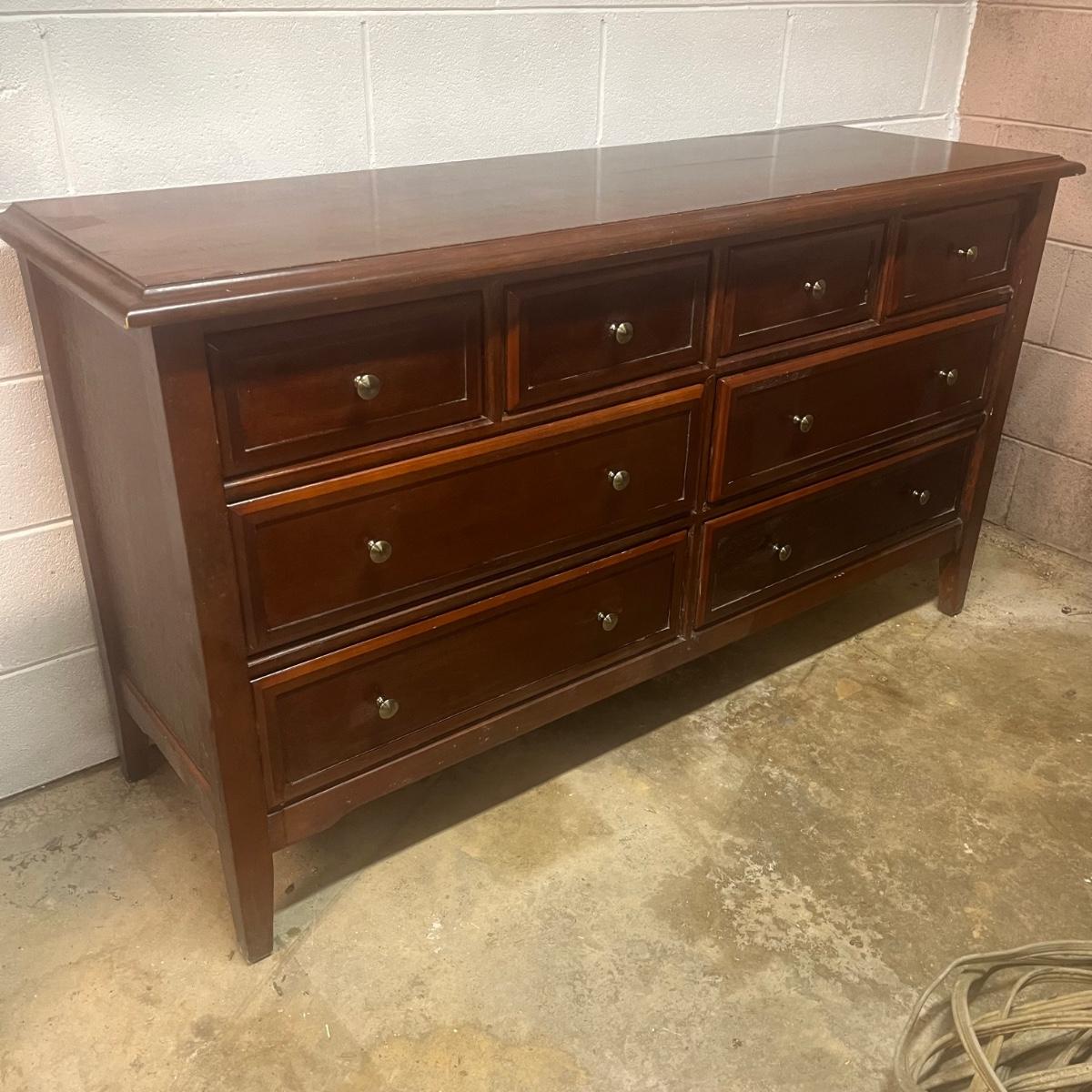 Lot includes a MSE brand eight drawer wood dresser. Dresser has scratches and nicks, see pictures. Dresser measures 58” x 18.5” x 32”H. “¨Local Pickup Only