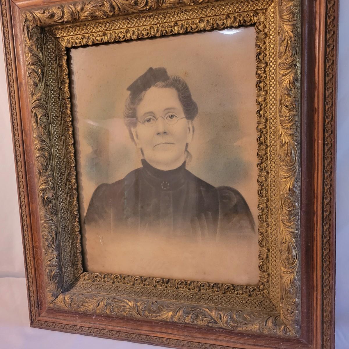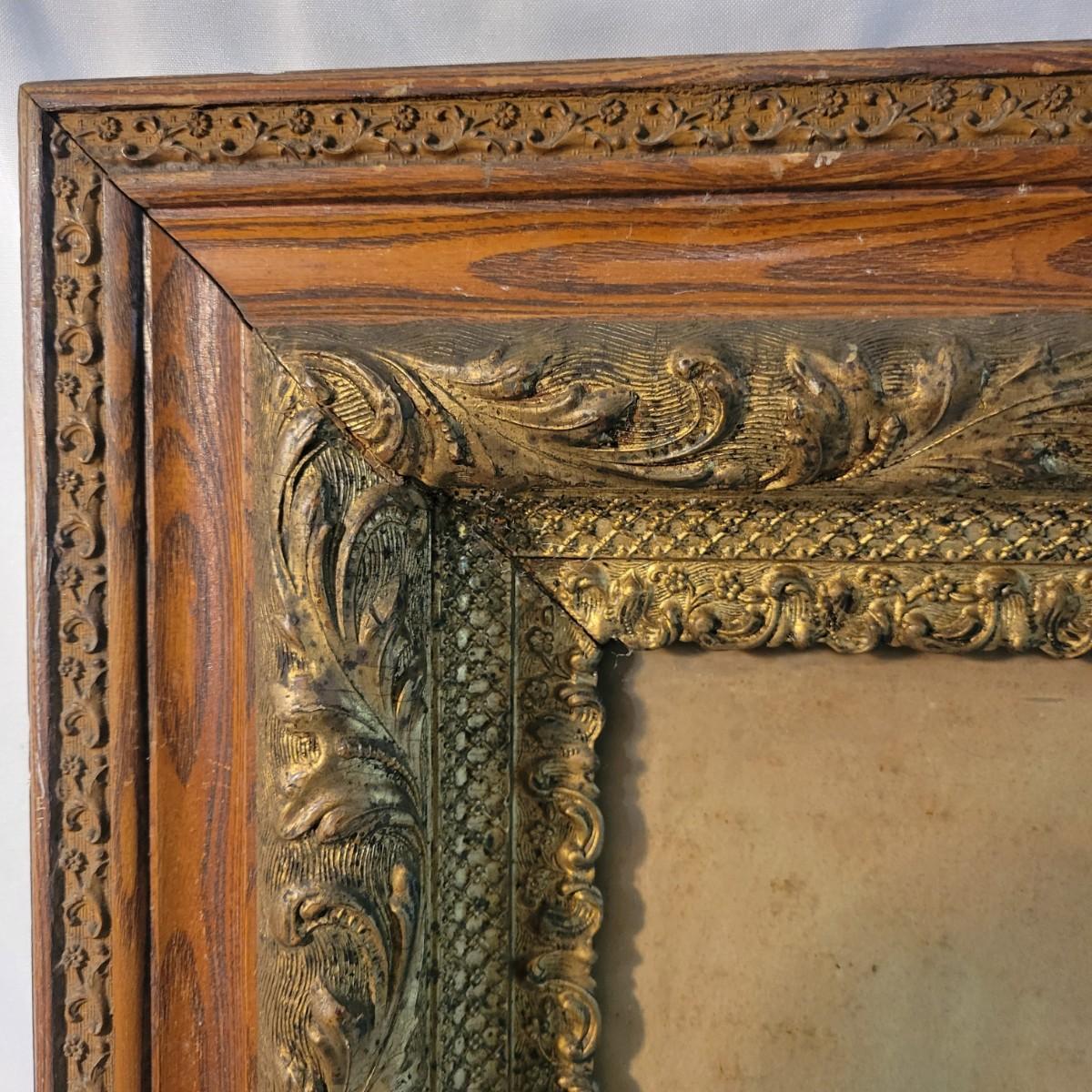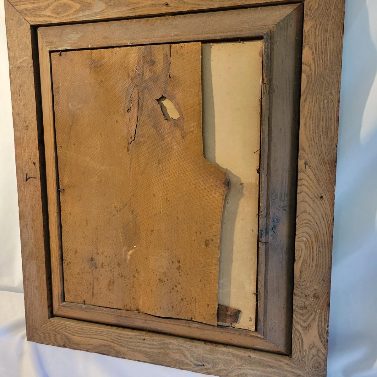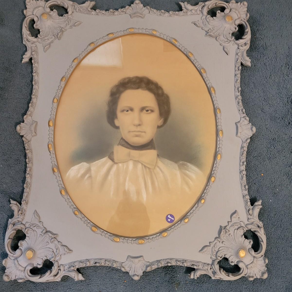 A collection of 4 antique frames and photographs. Two pieces are in matching wooden, hand carved frames that are in good condition with no notable damage. The larger vertical piece is also in good condition, although the original wood backing is disintegrating, but the wooden frame shows no notable damage. This piece measures approximately 26" x 30" x 3". The final piece is in fair condition as the frame and photograph shows some damage. The wooden frame has some missing plaster and there is some gapping in the corners. The photograph shows some damage in its bottom right corner. Notes on the back indicate it was taken in 1882. Please note that these appear to be photographs with some hand-drawing/editing, but we cannot verify the medium. Shipping available. Shipping Art can be costly please call UPS store at 828-252-6930 for quote.
