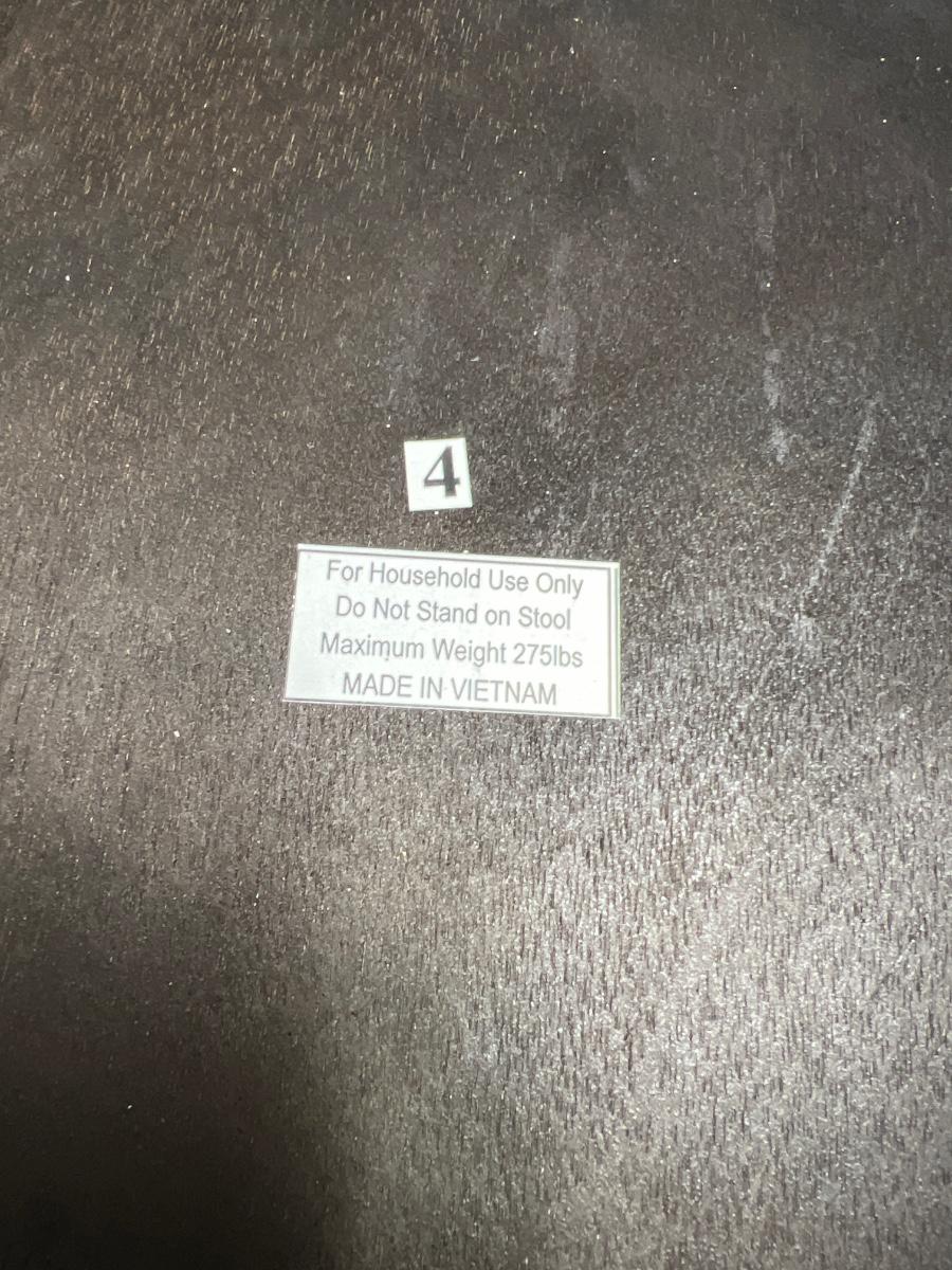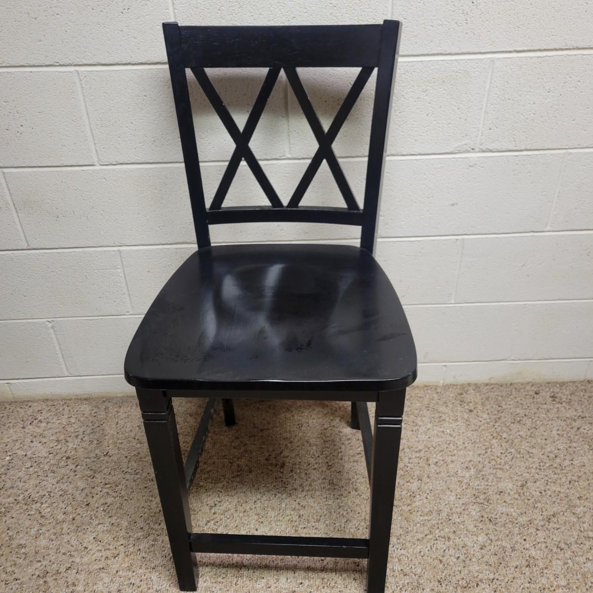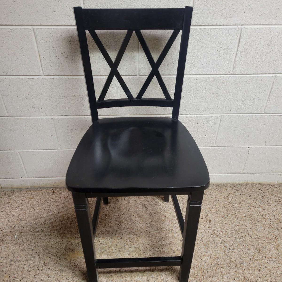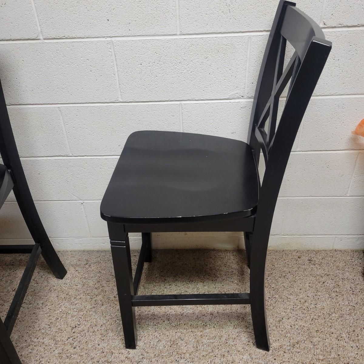 These four matching stools have a black enamel finish and measure approximately 18" x 18" x 39" with a seat height of 24". They are in good condition with some minor blemishes, as seen in the pictures. Local pickup only