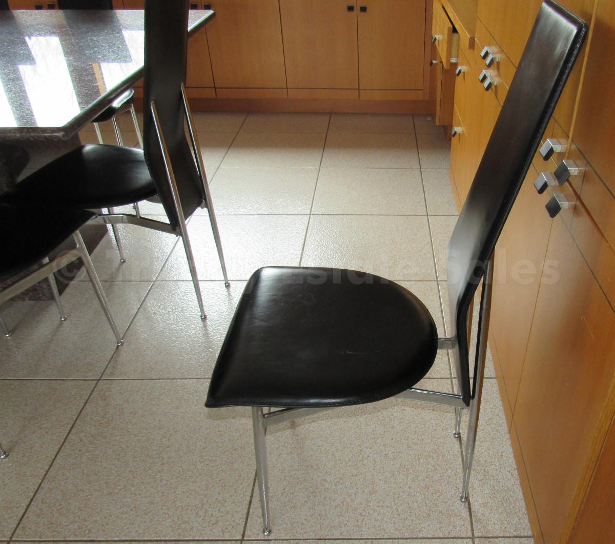 Set of Eight Black Leather Fasem Dining Chairs, Italy