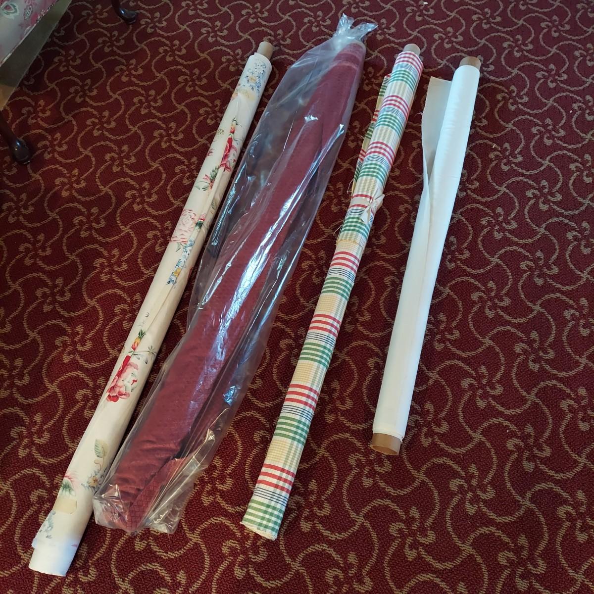 Four bolts of woven fabric. The white is 44" wide. The other three are approximately 54" wide. Local Pickup Only