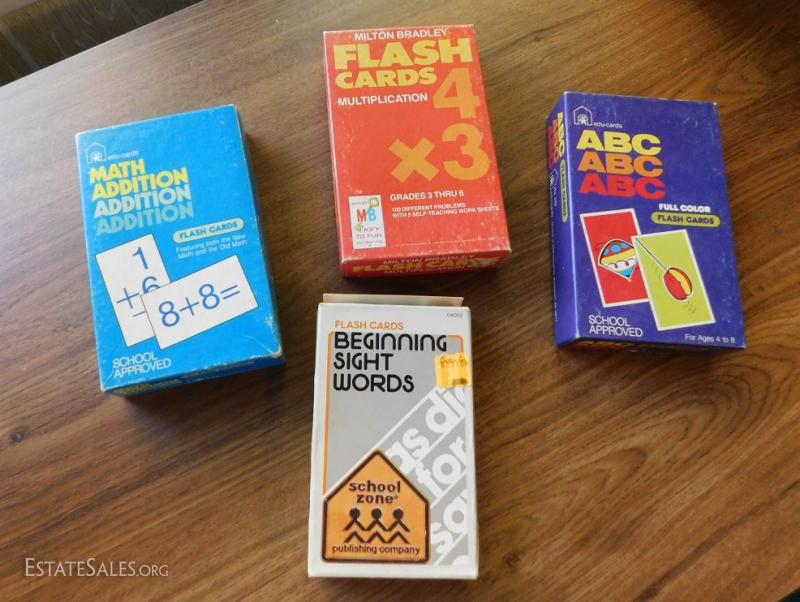 Four Boxes Flash Card Learning Kits with wear on box covers. Complete sets not guaranteed.