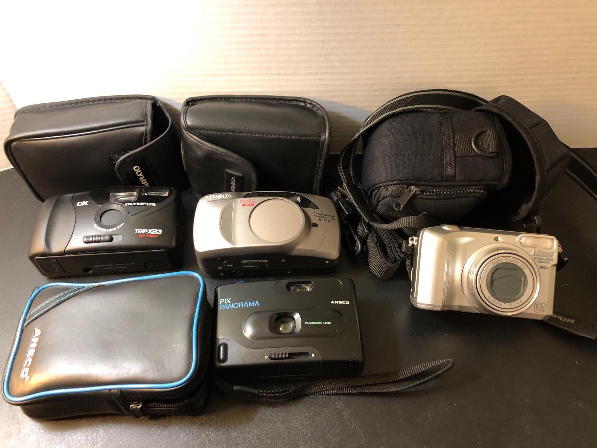 Four Cameras & Cases (Olympus, Ansco, Minolta, Nikon) -Lot 168