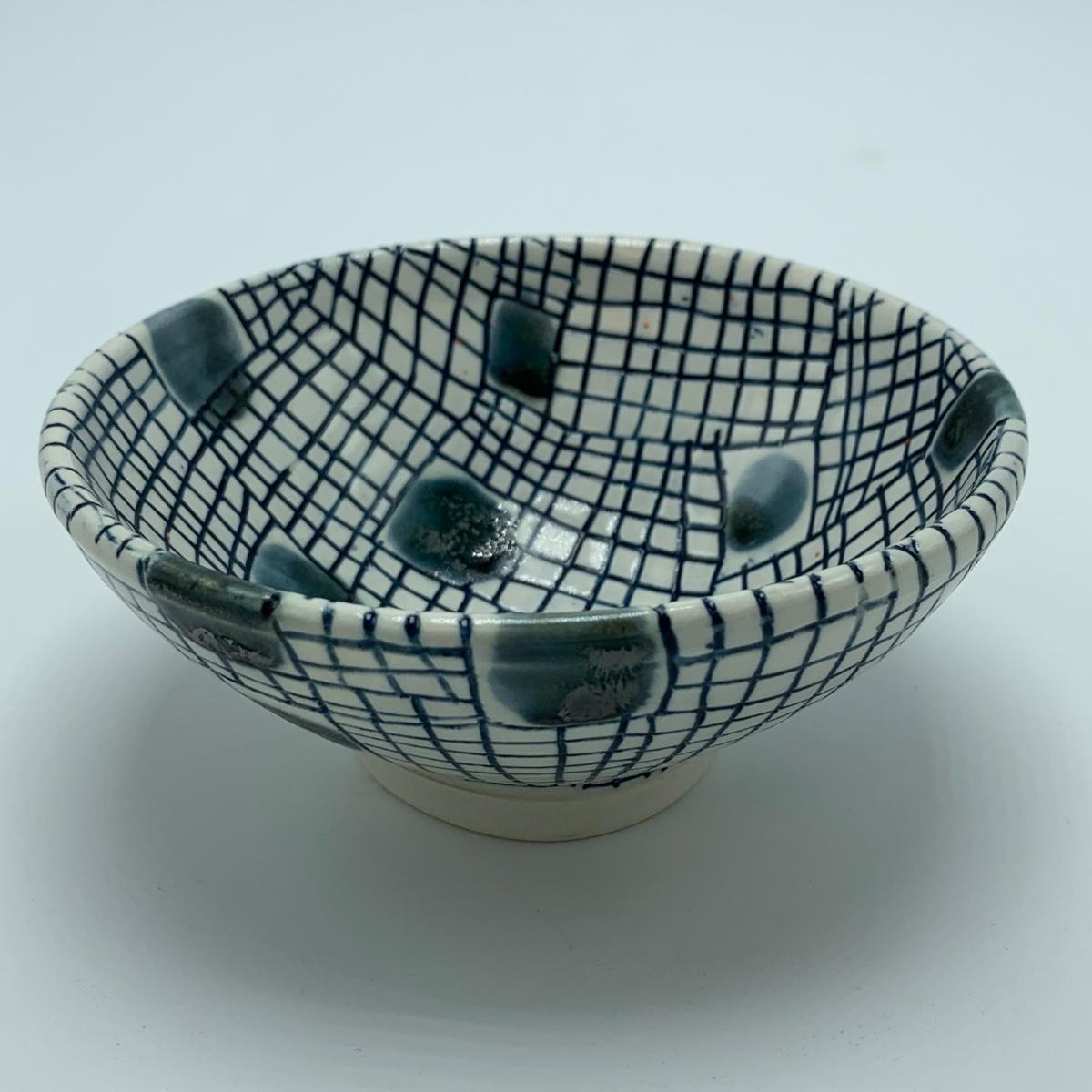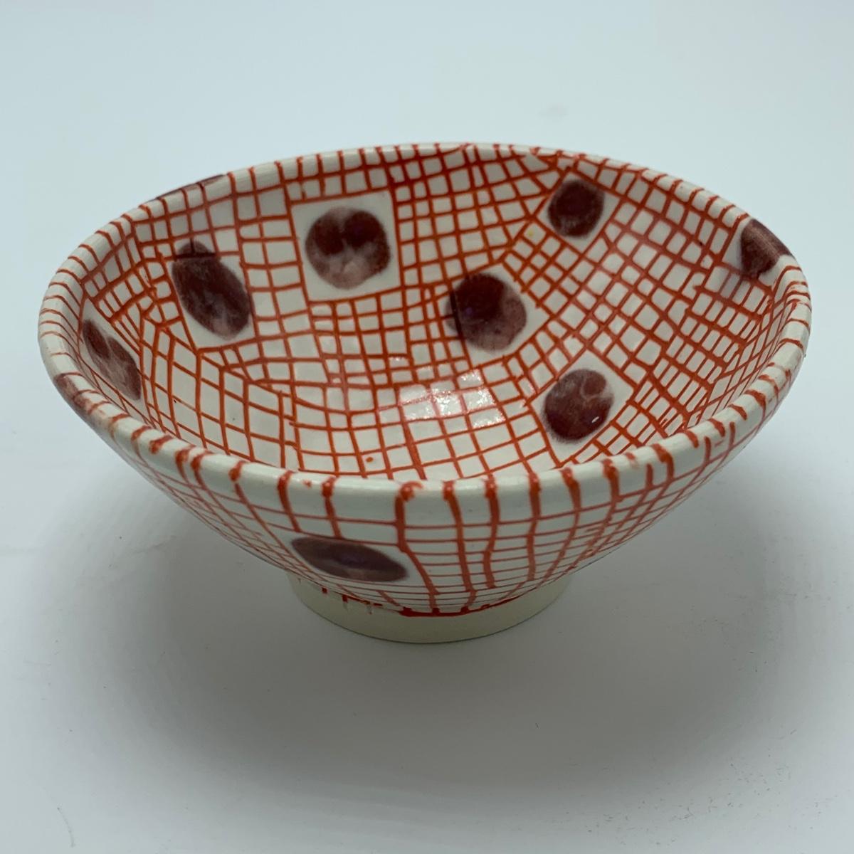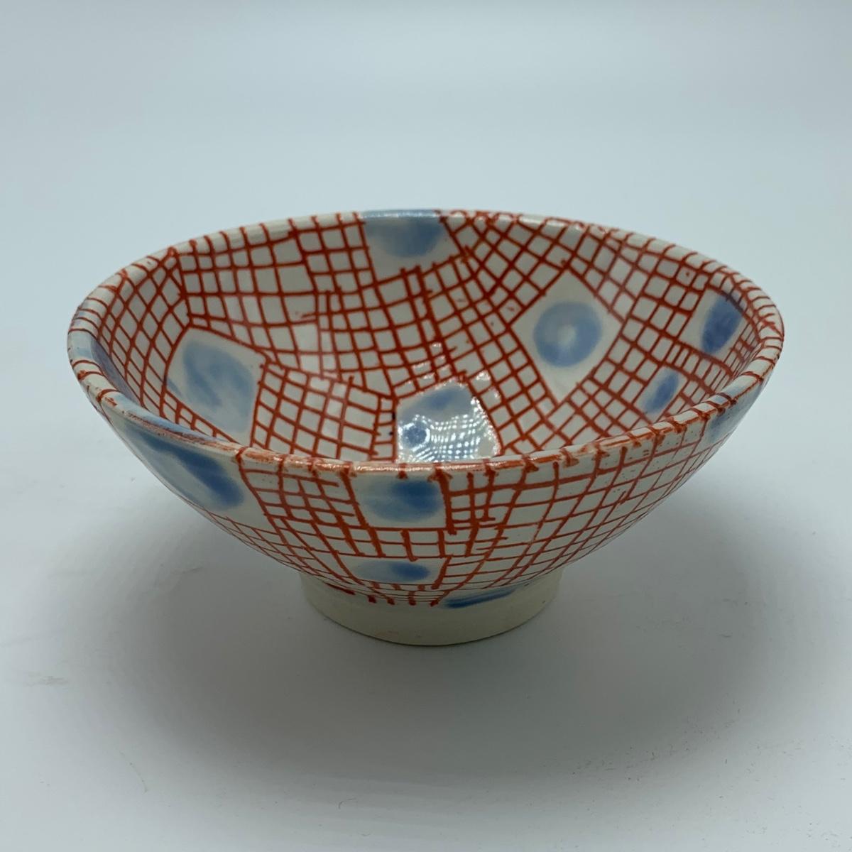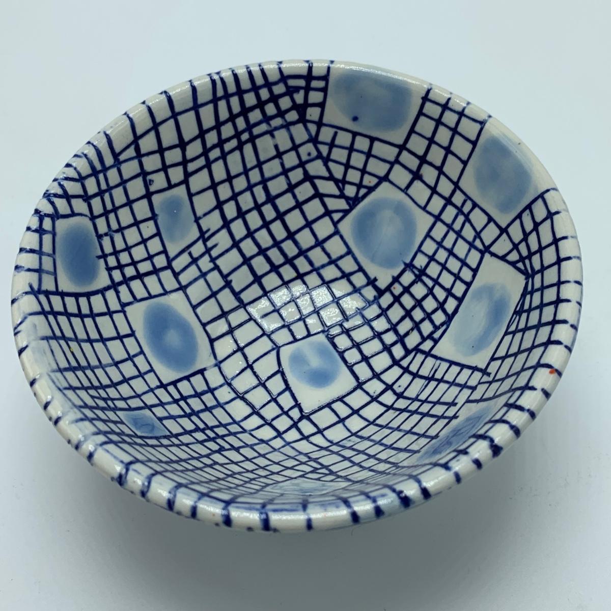 There are four little bowls in this lot, all signed by “Eleanor”. Three of them are about the same size with a top diameter of 4.5” and are about 2” tall. The larger bowl with the red and blue has a top diameter of 5.25” and is 2.25” tall. They all appear to be in excellent condition. Shipping Available.