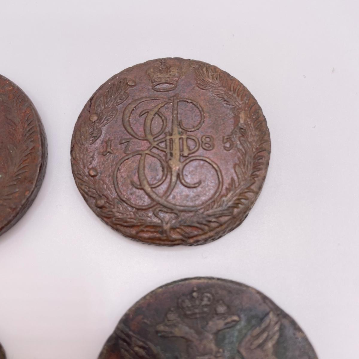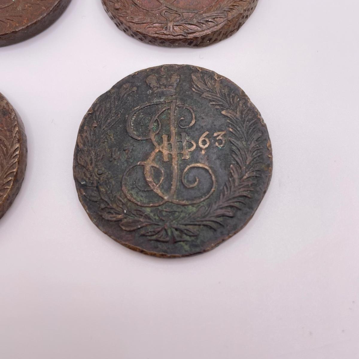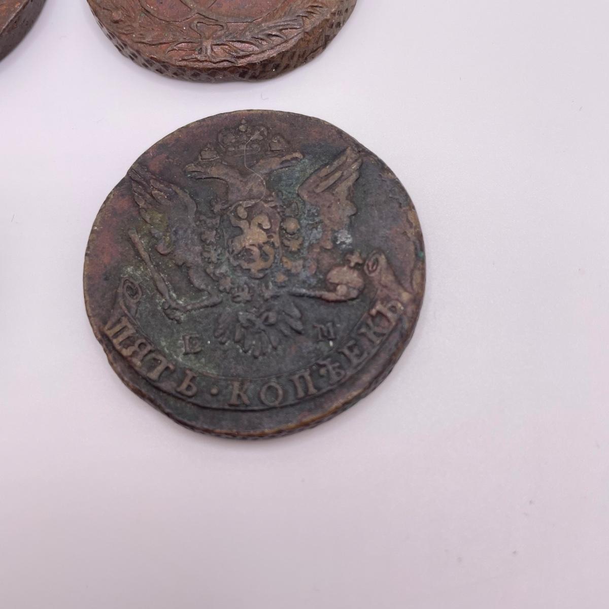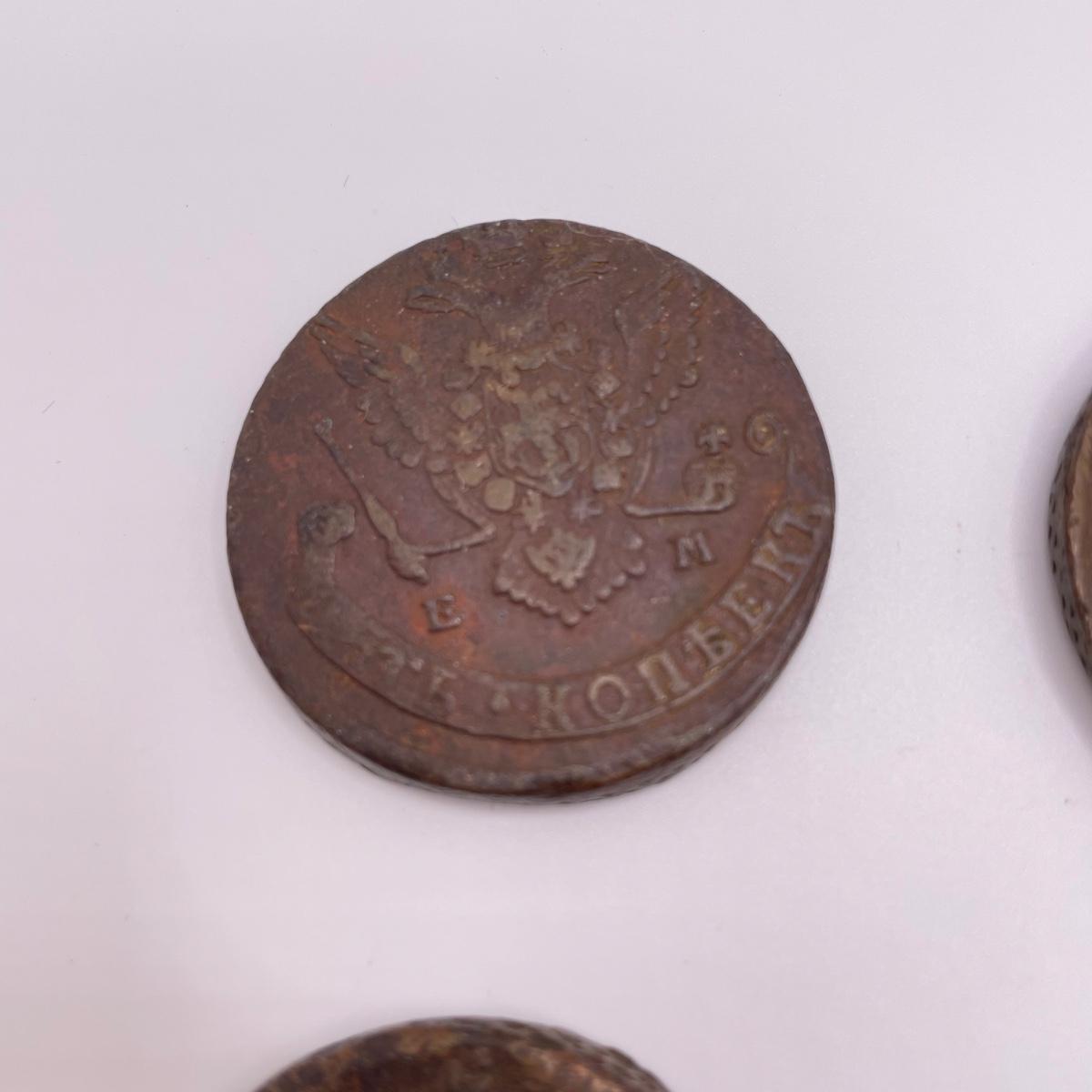Four heavy coins that appear to be Russian; Catherine the Great era 5 Kopeks. All sales are final. No returns or refunds. Please bid accordingly. Shipping available.