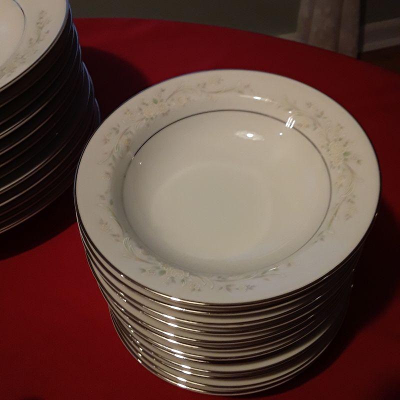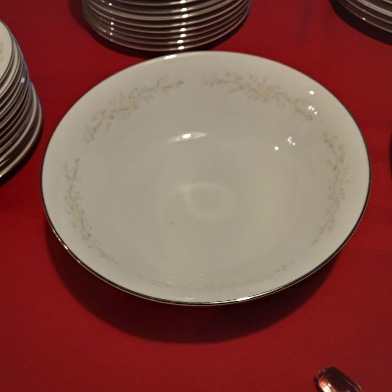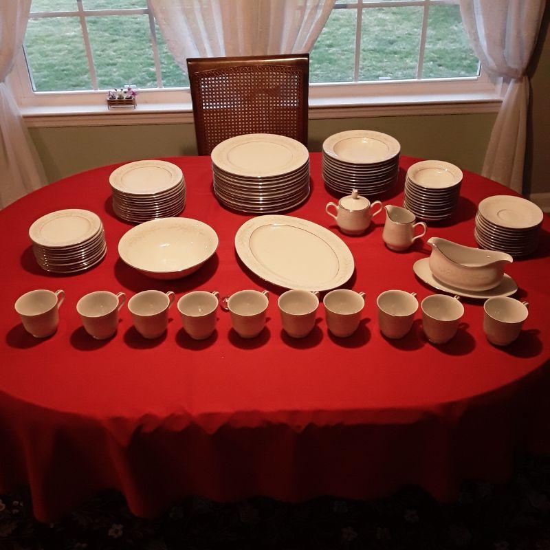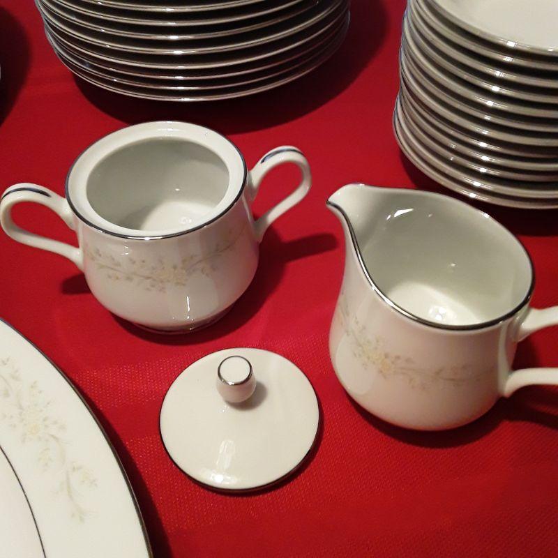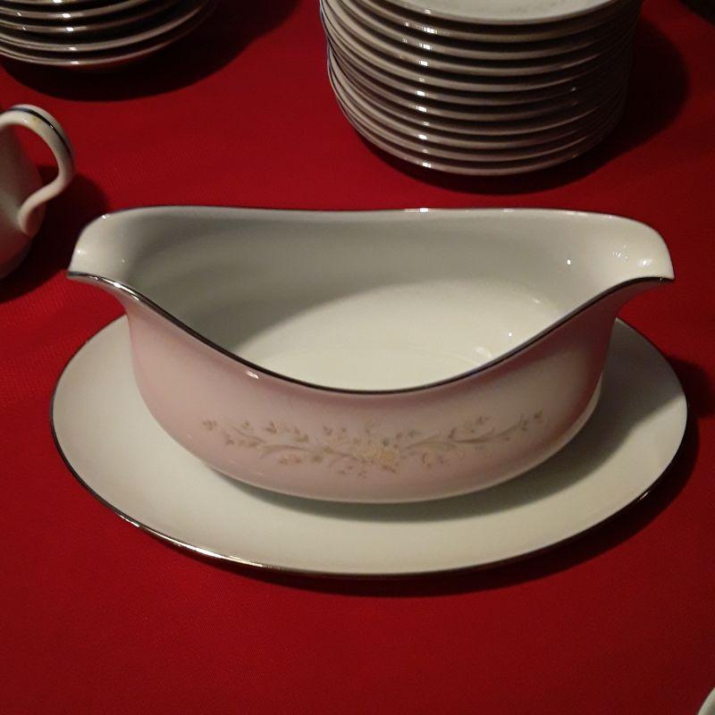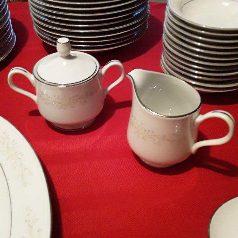 Set for 12 plus platter, serving bowl, sugar, creamer and gravy boat