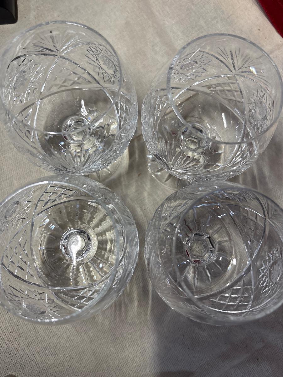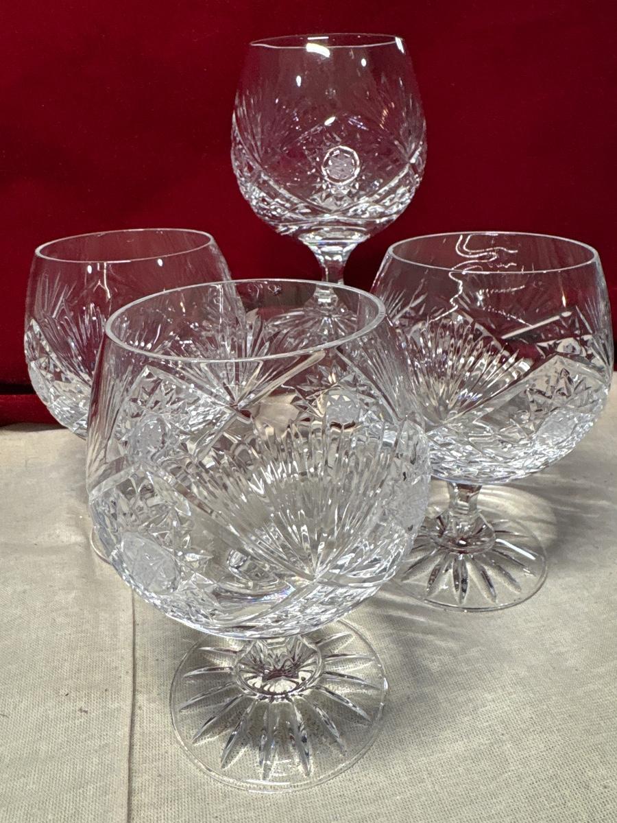 Beautiful deep cut crystal brandy glasses. Appear like Royal Dalton however without hallmark. 5”