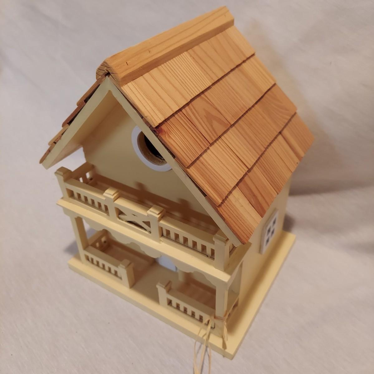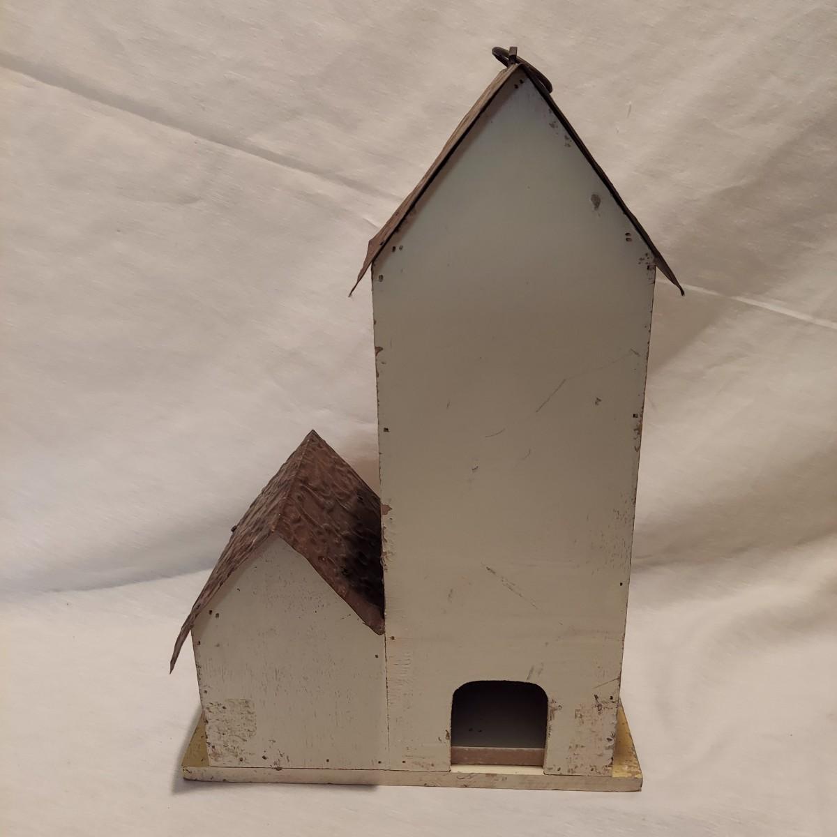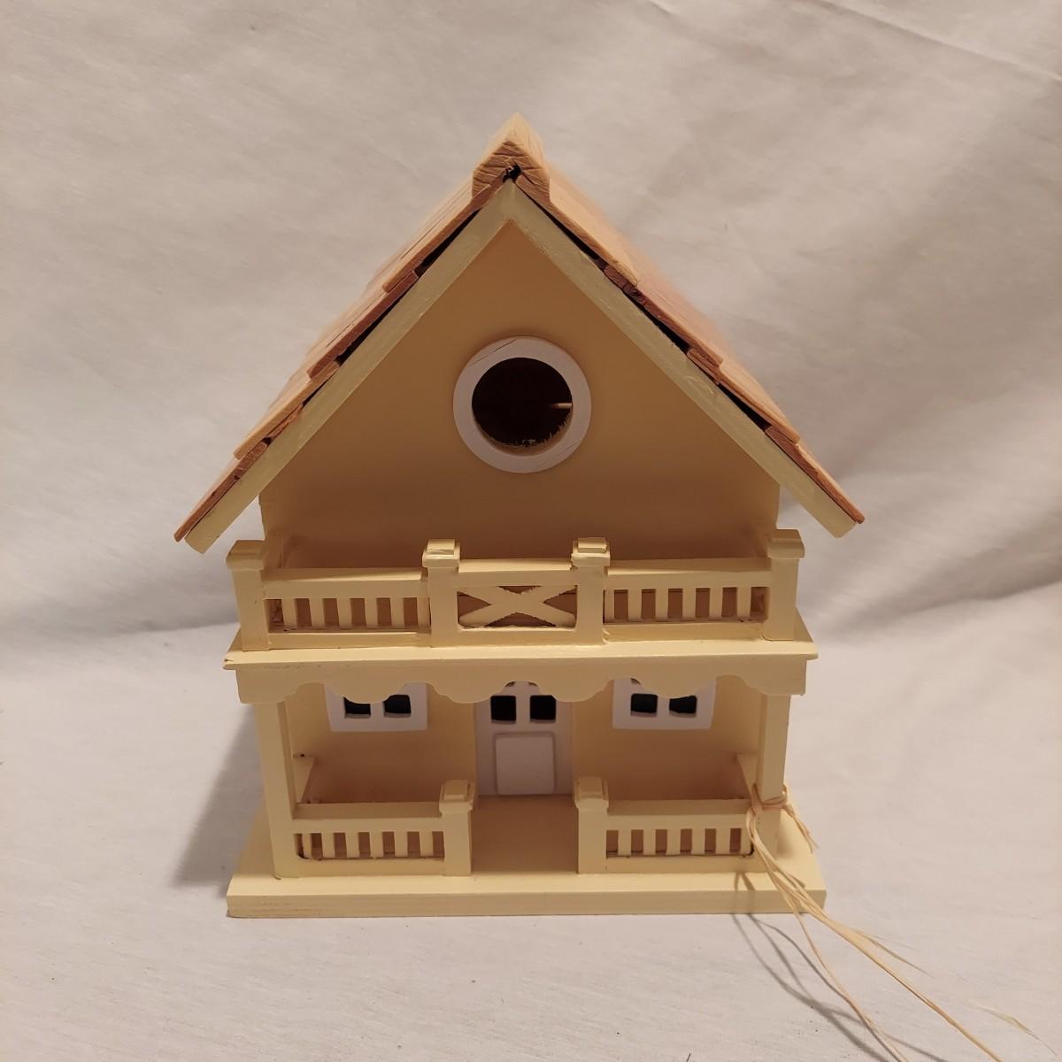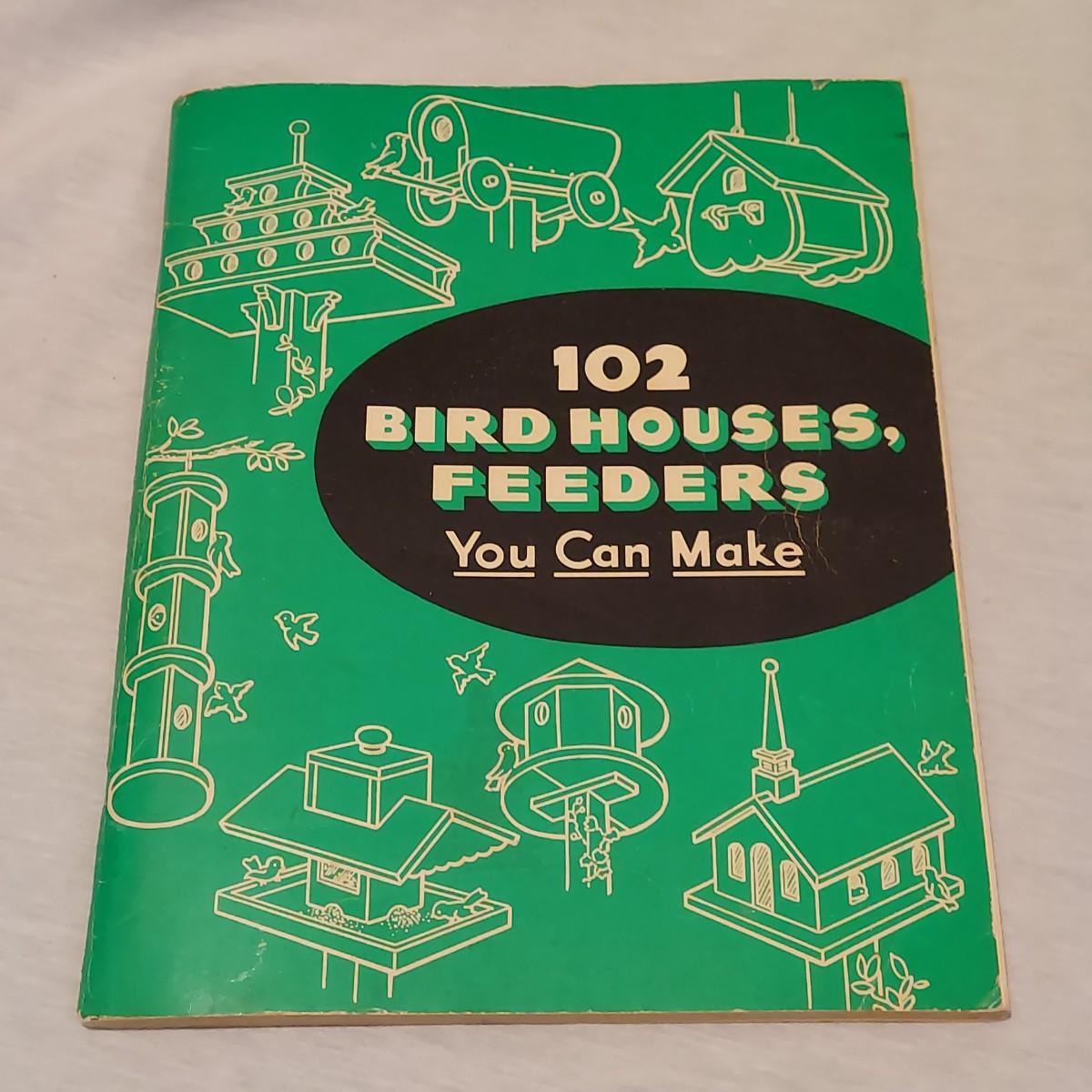 Four decorative bird houses made of wood and metal, plus a paperback book about making bird houses and feeders. The shortest bird house is 6"H and the tallest is 18.5"H. Shipping available