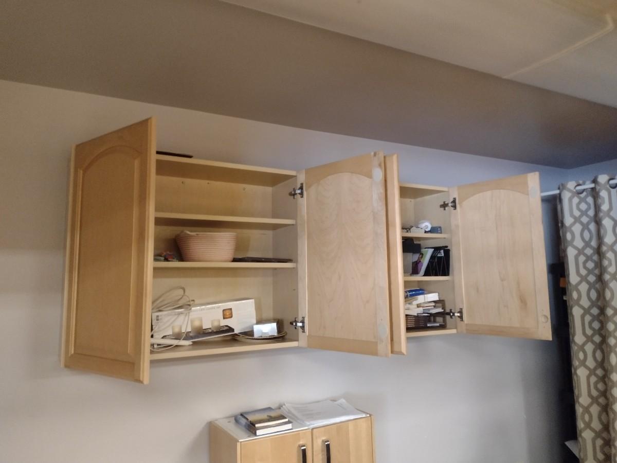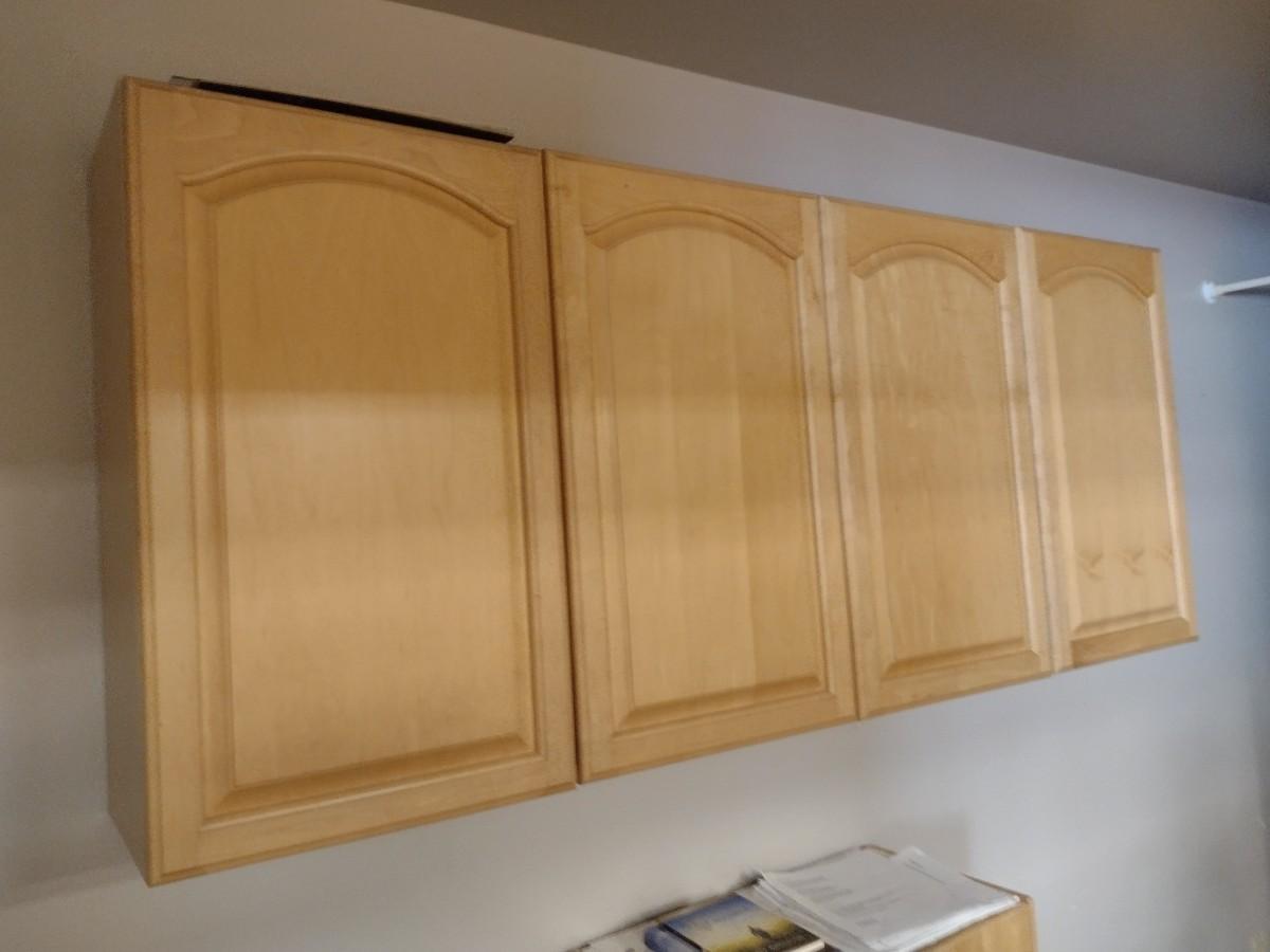 Four Door Overhead Cabinet (No Contents). Bring tools and assistance to remove from wall.
