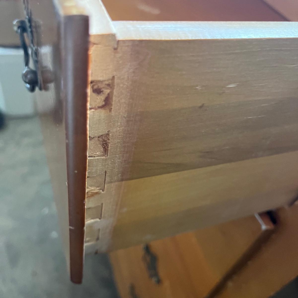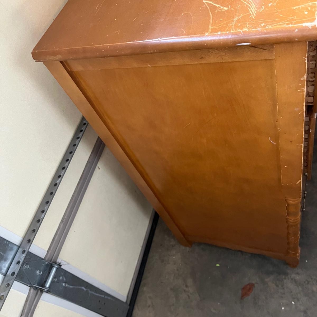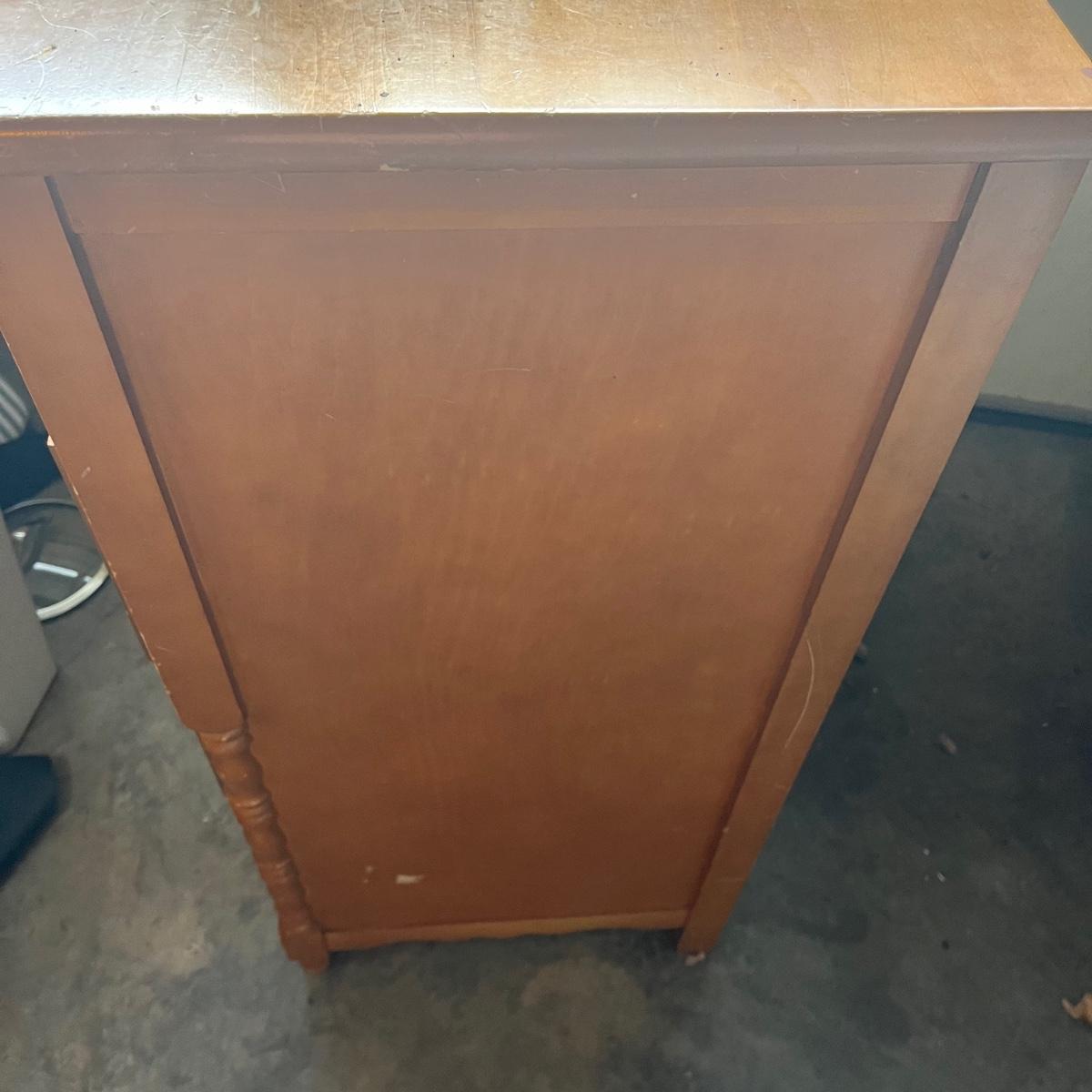 Lot includes a four dovetailed drawer chest of drawers that measures 18.5” x 28” x 40”. Chest has scratches and nicks, see pictures.