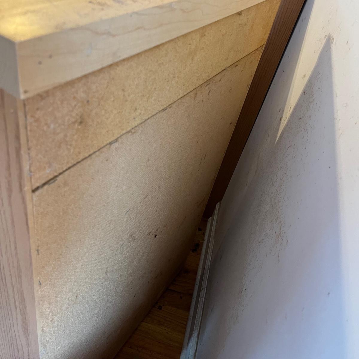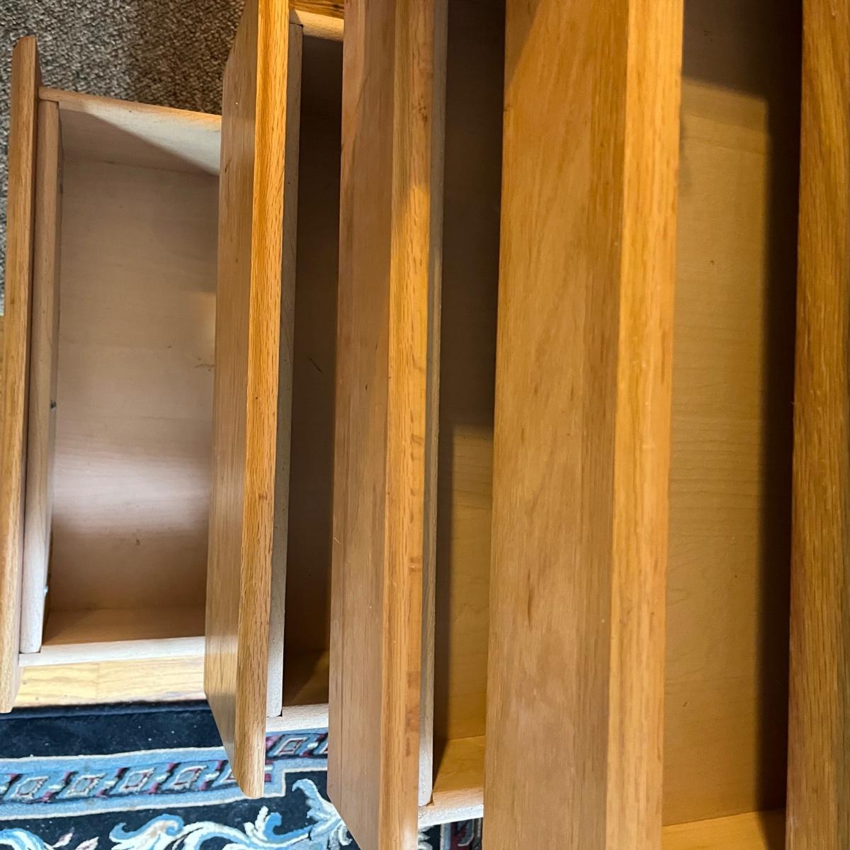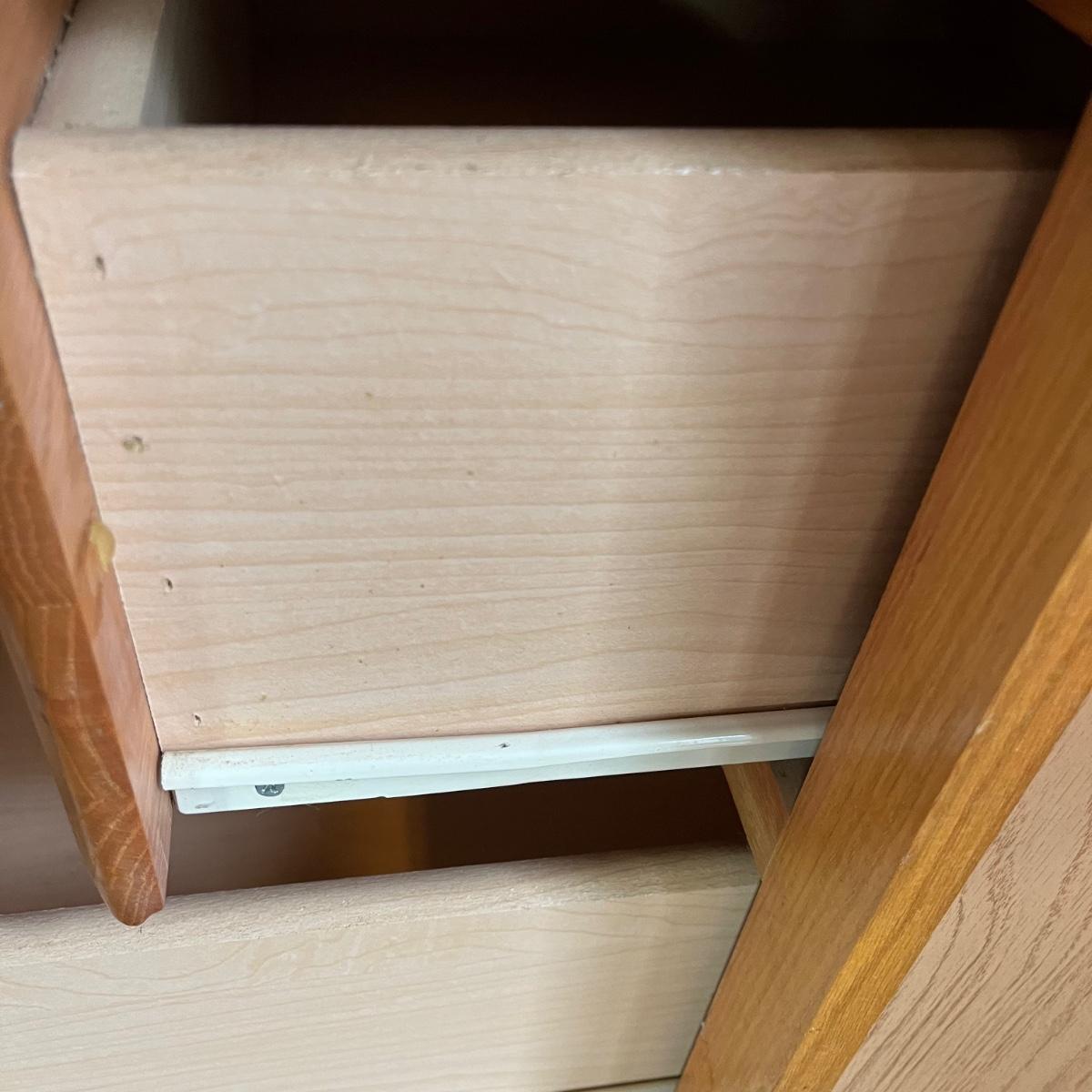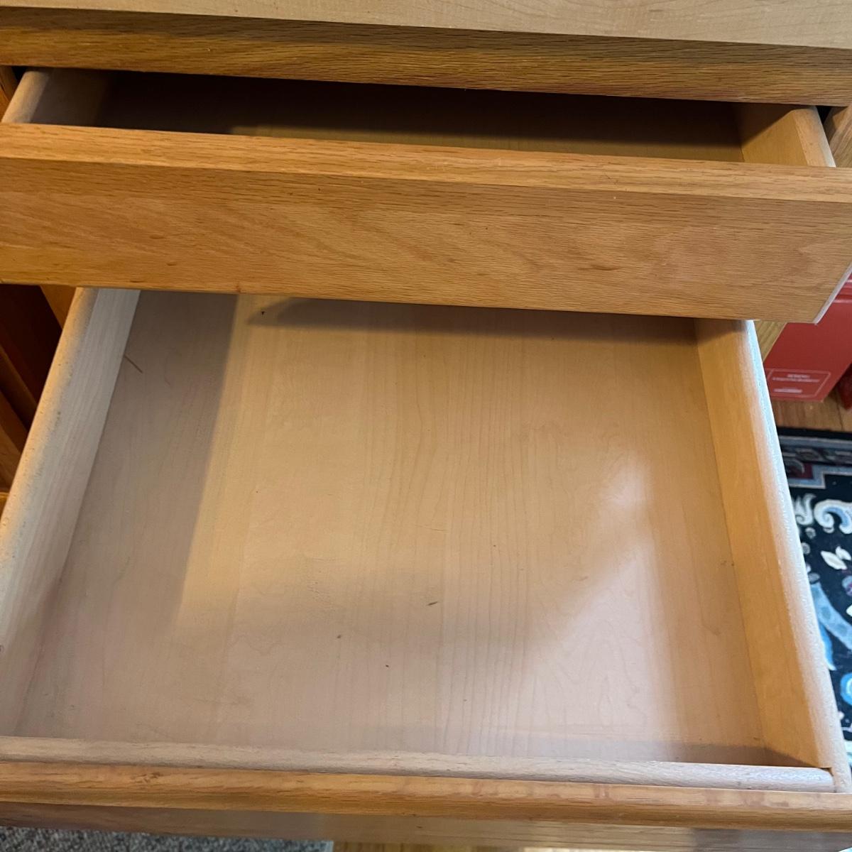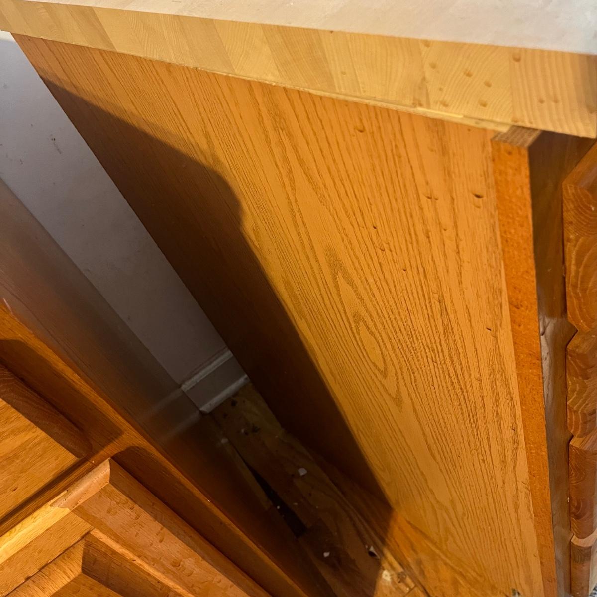 Lot includes a four drawer kitchen cabinet with a butcher block top that is not attached. Cabinet measures 24” x 25” x 36.5”.