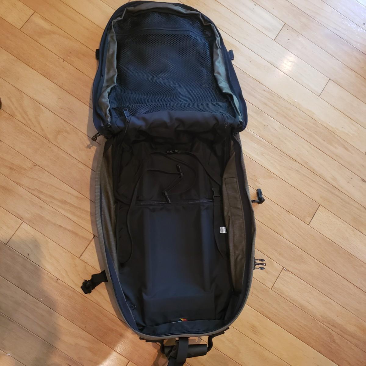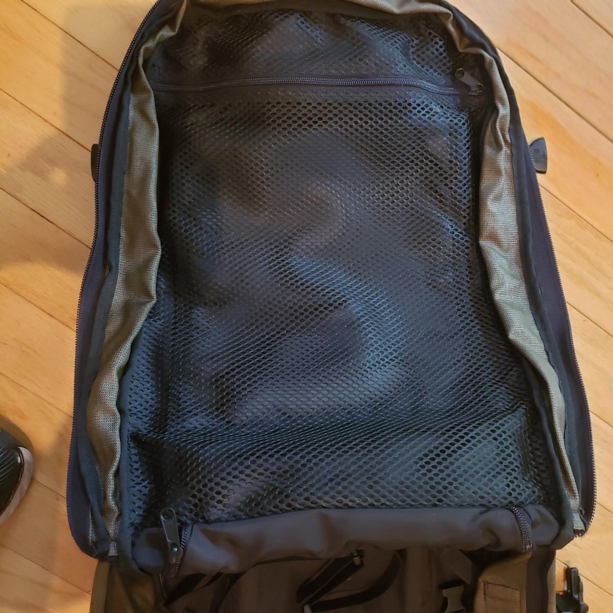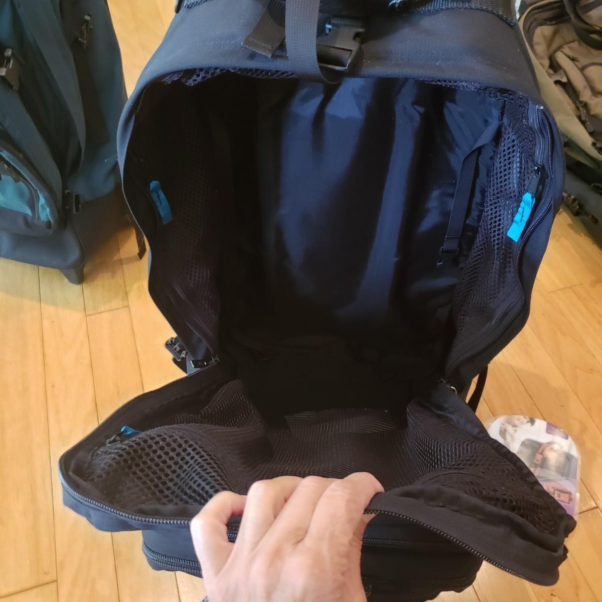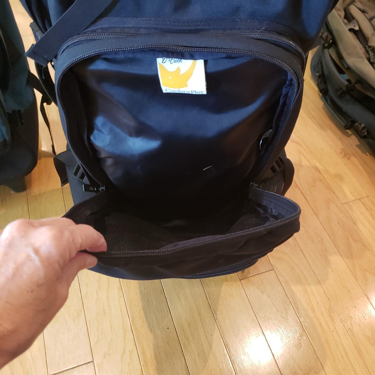 These bags covert from rolling luggage to backpacks. There is so much storage in these bags! The front zippers off into a small backpack measuring 12" x 4" x 14"H. See pictures for details. Also included is a NIB luggage straps and an orange soft handle grip, that is a luggage tag as well. There is a combination lock on the dark blue bag that unfortunately we don't have the code.