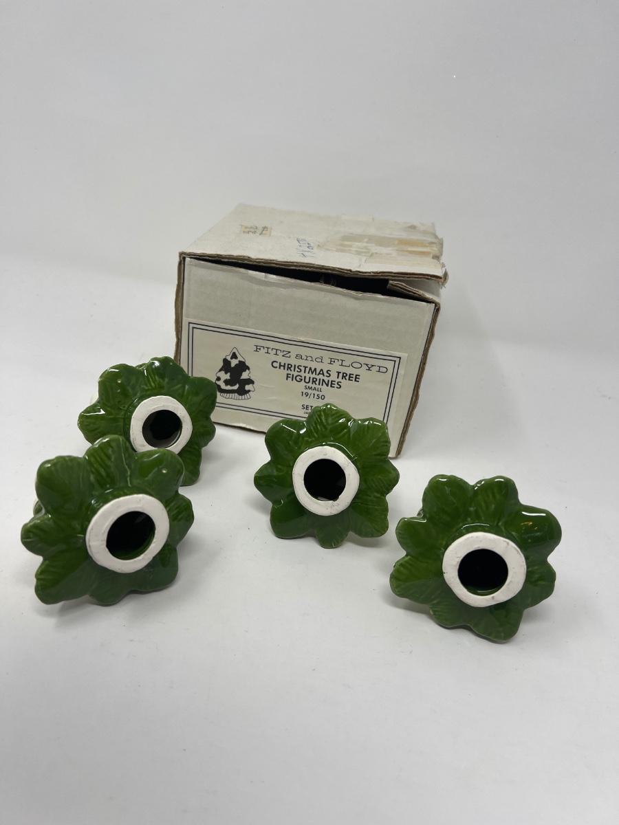 Four Fitz & Floyd Christmas Trees and 1975 Spode Plate