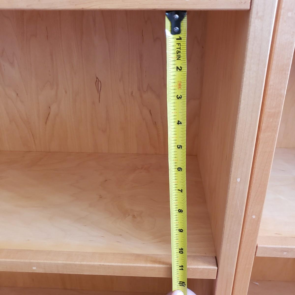 Each bookcase measures 30.5" x 12" x 41". The top two shelf openings are 11"H, while the last shelf is 15"H. See pictures for details.