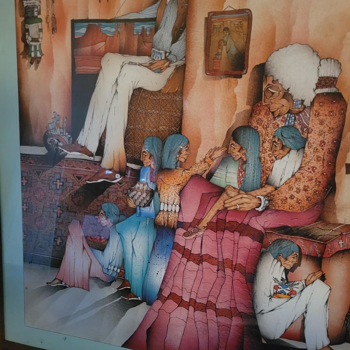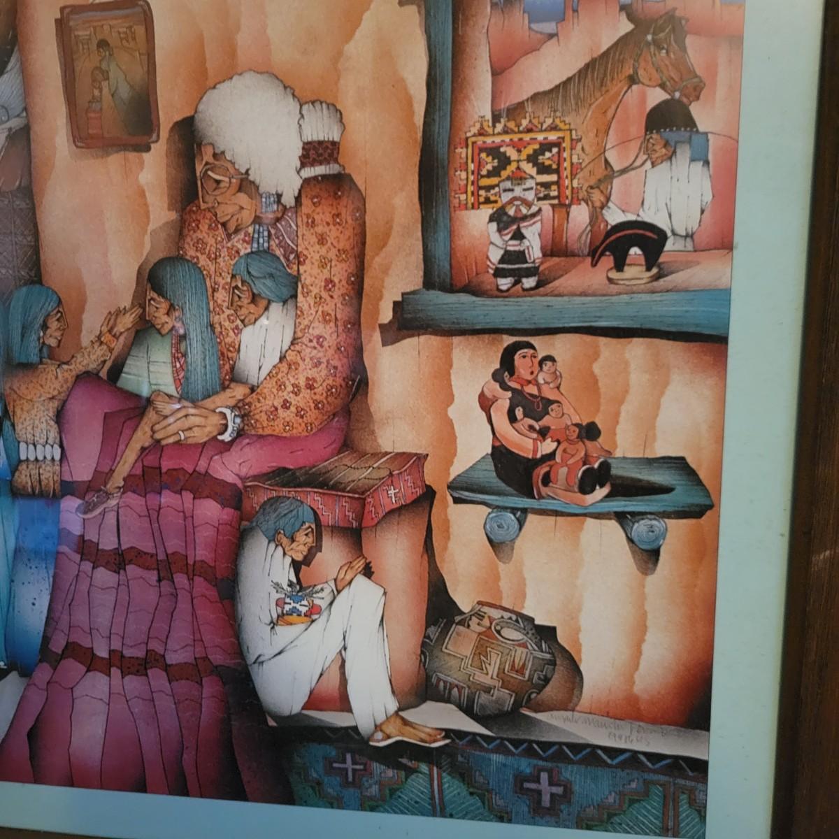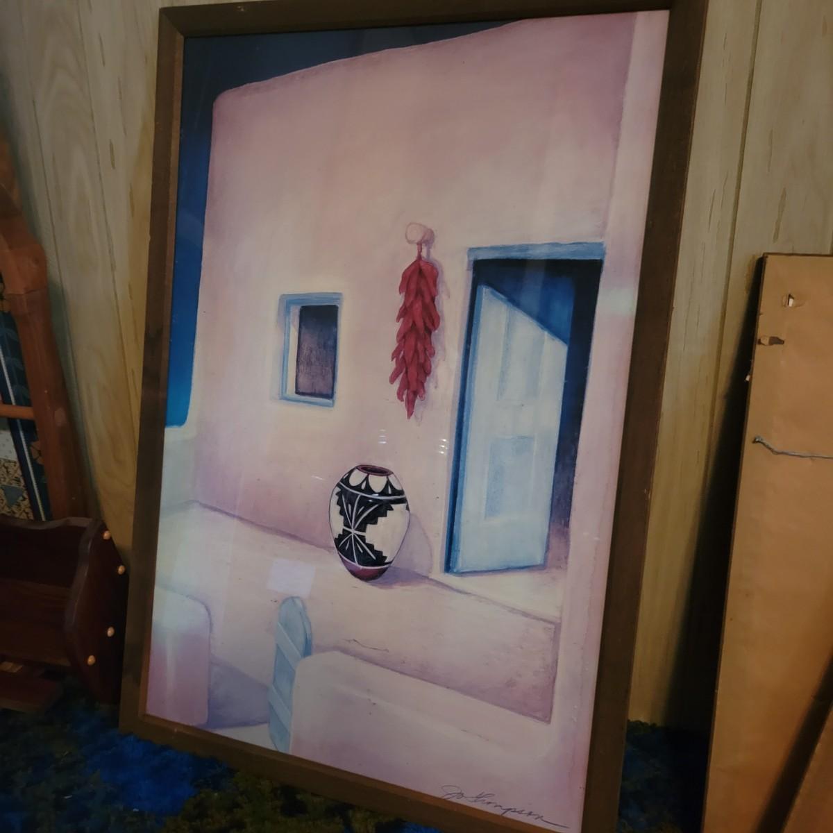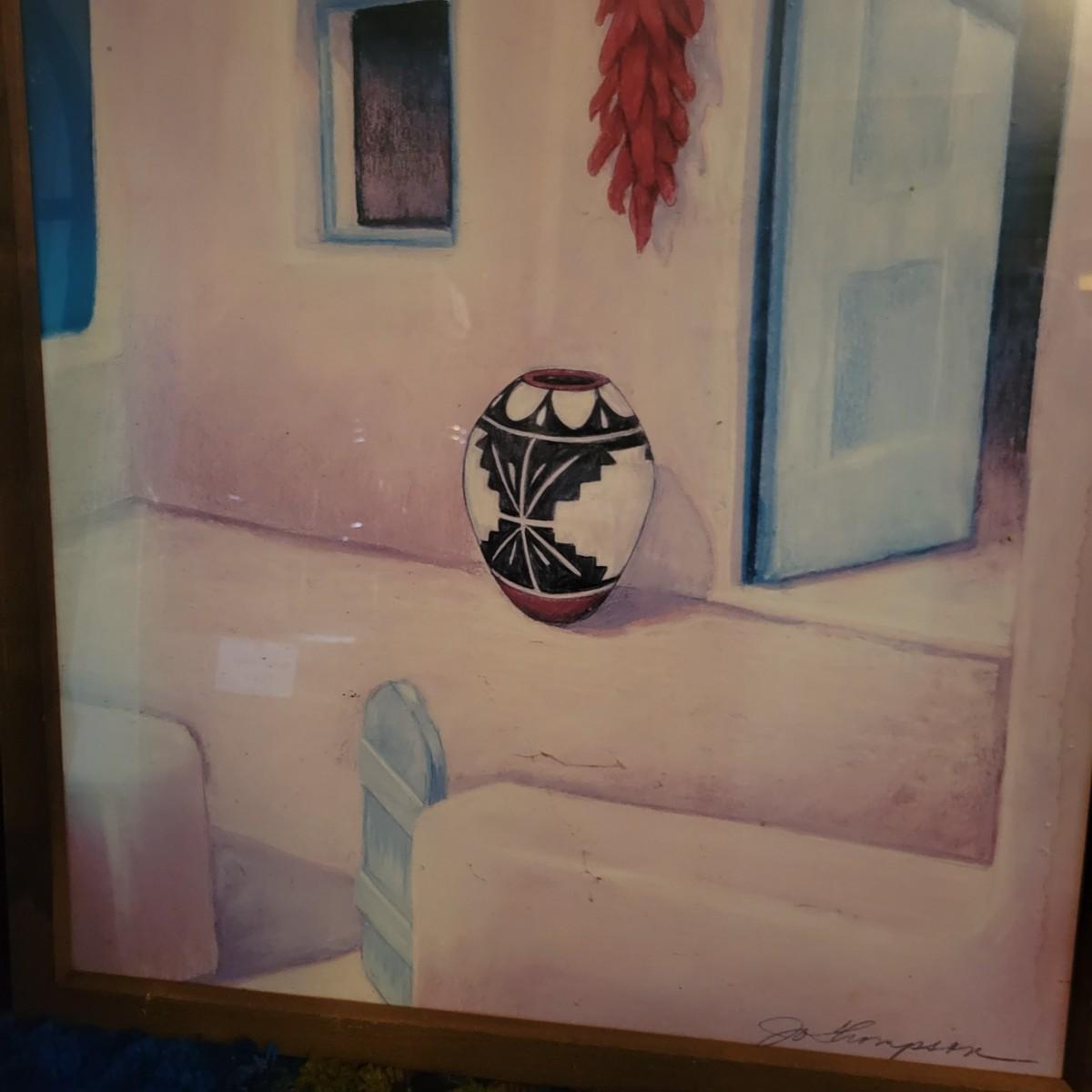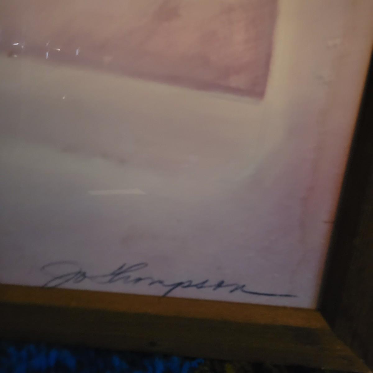 Four prints with a native American theme in matching rustic wooden frames. Each print depicts a different style and artist. Some pieces appear to be pencil signed, bit could not be confirmed. The largest piece measures approximately 26.5" x 39"H. The frames do have holes in them from where they were previously mounted. Shipping available. Shipping can be costly. We suggest contacting our preferred local shipping provider, Postage Express, with dimensions and getting an estimate before bidding: (828) 670-5501 or postageexpress@yahoo.com.