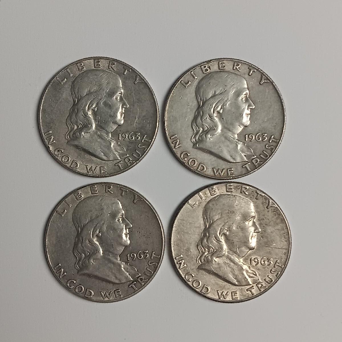 FOUR FRANKLIN SILVER HALF DOLLARS