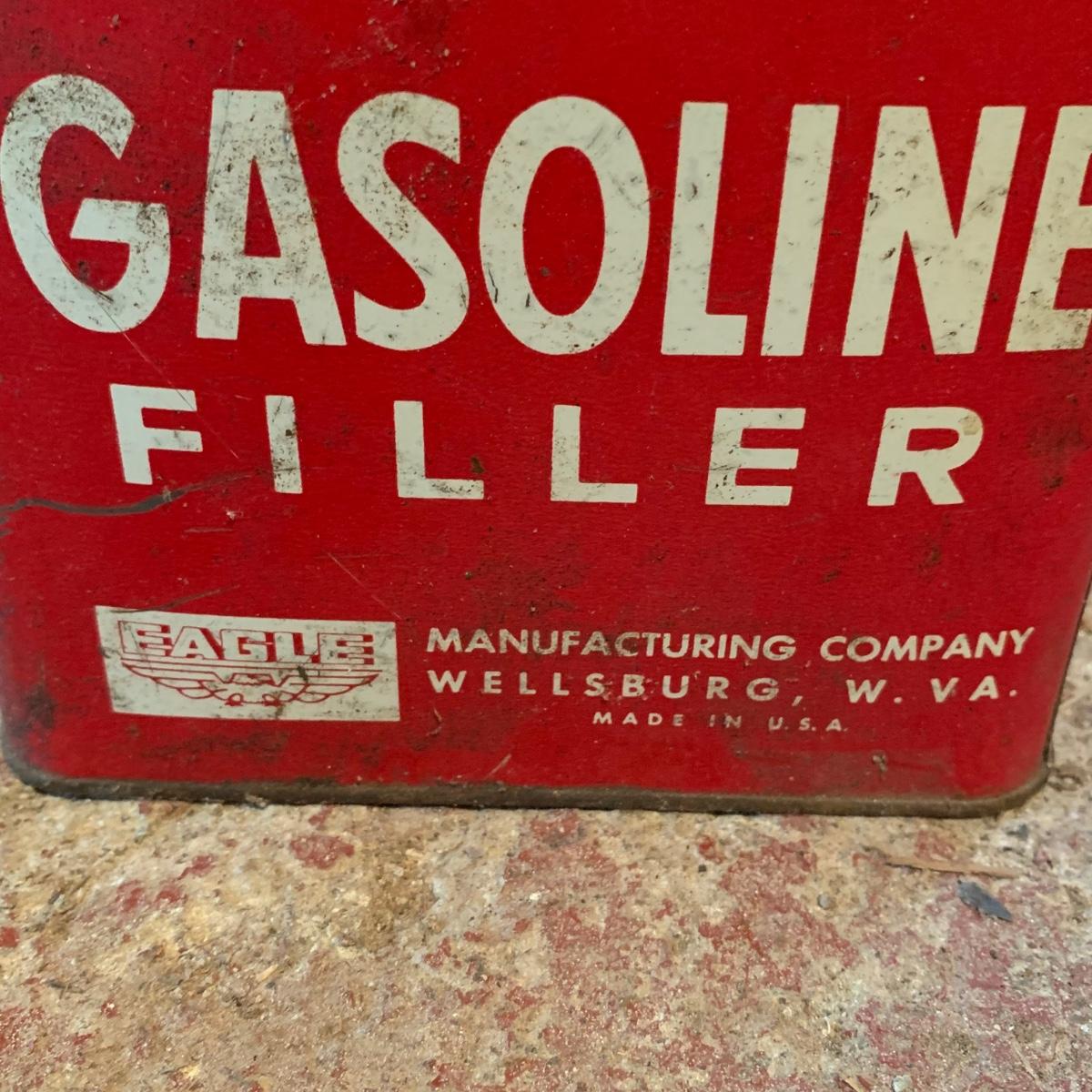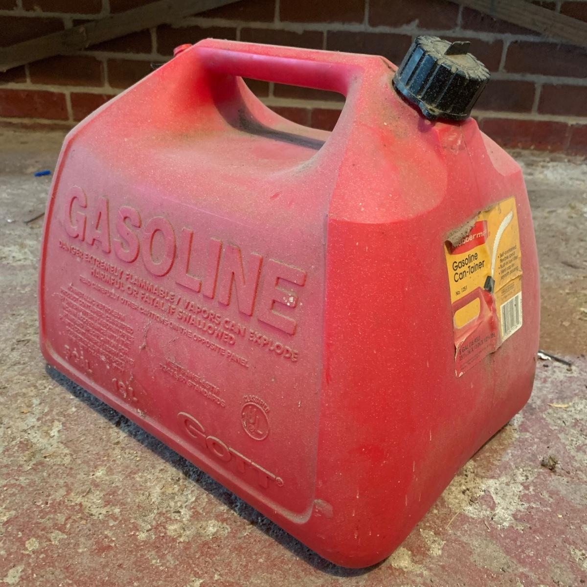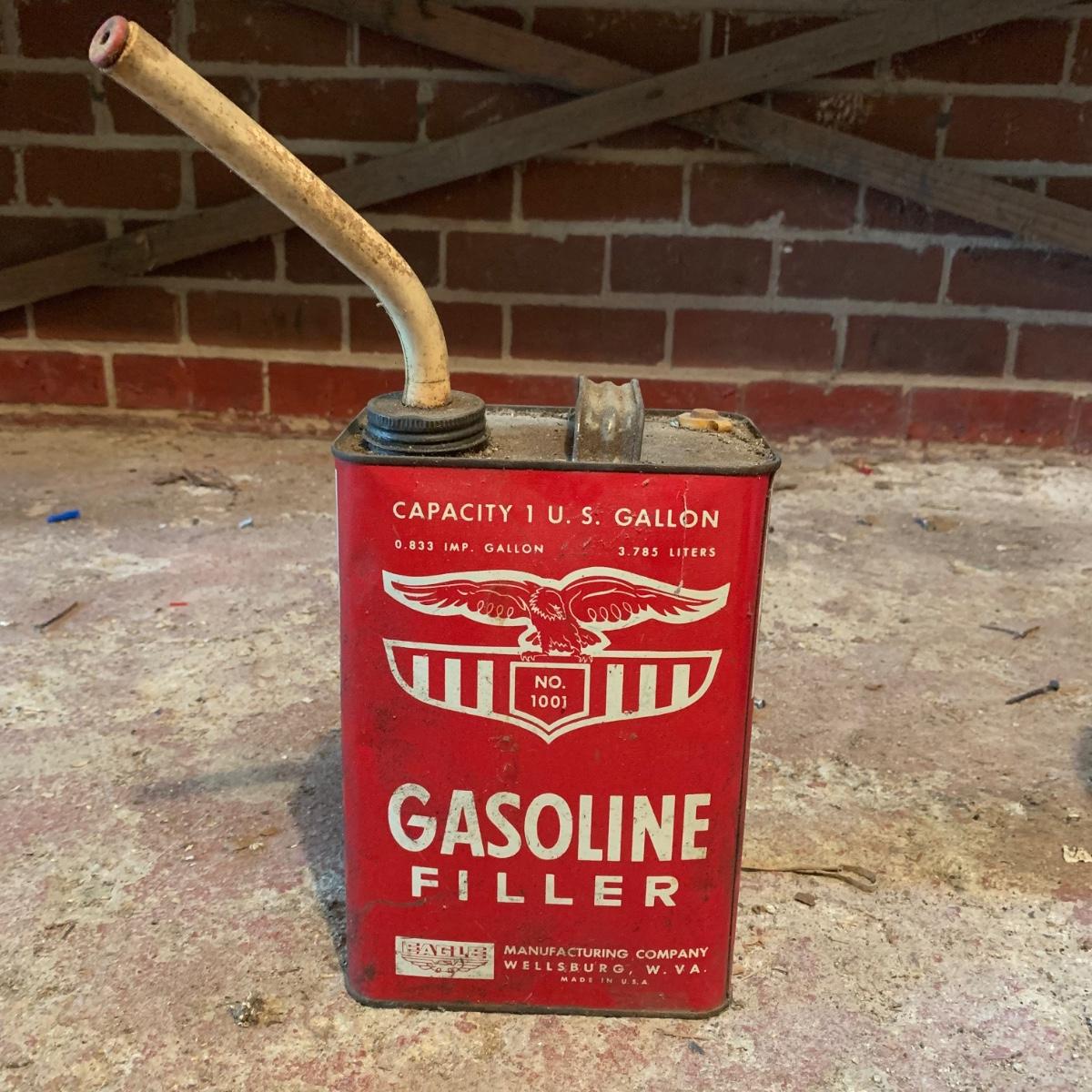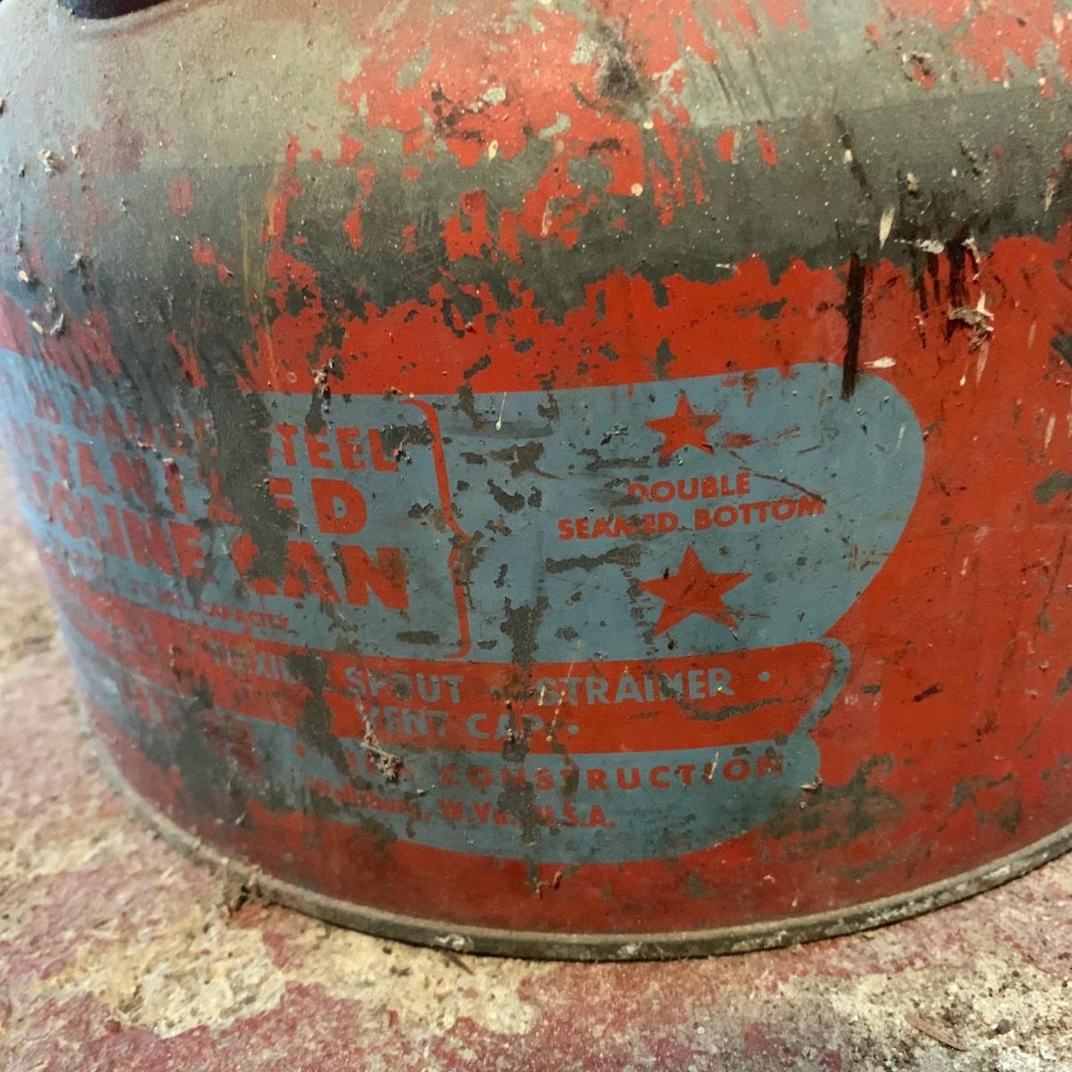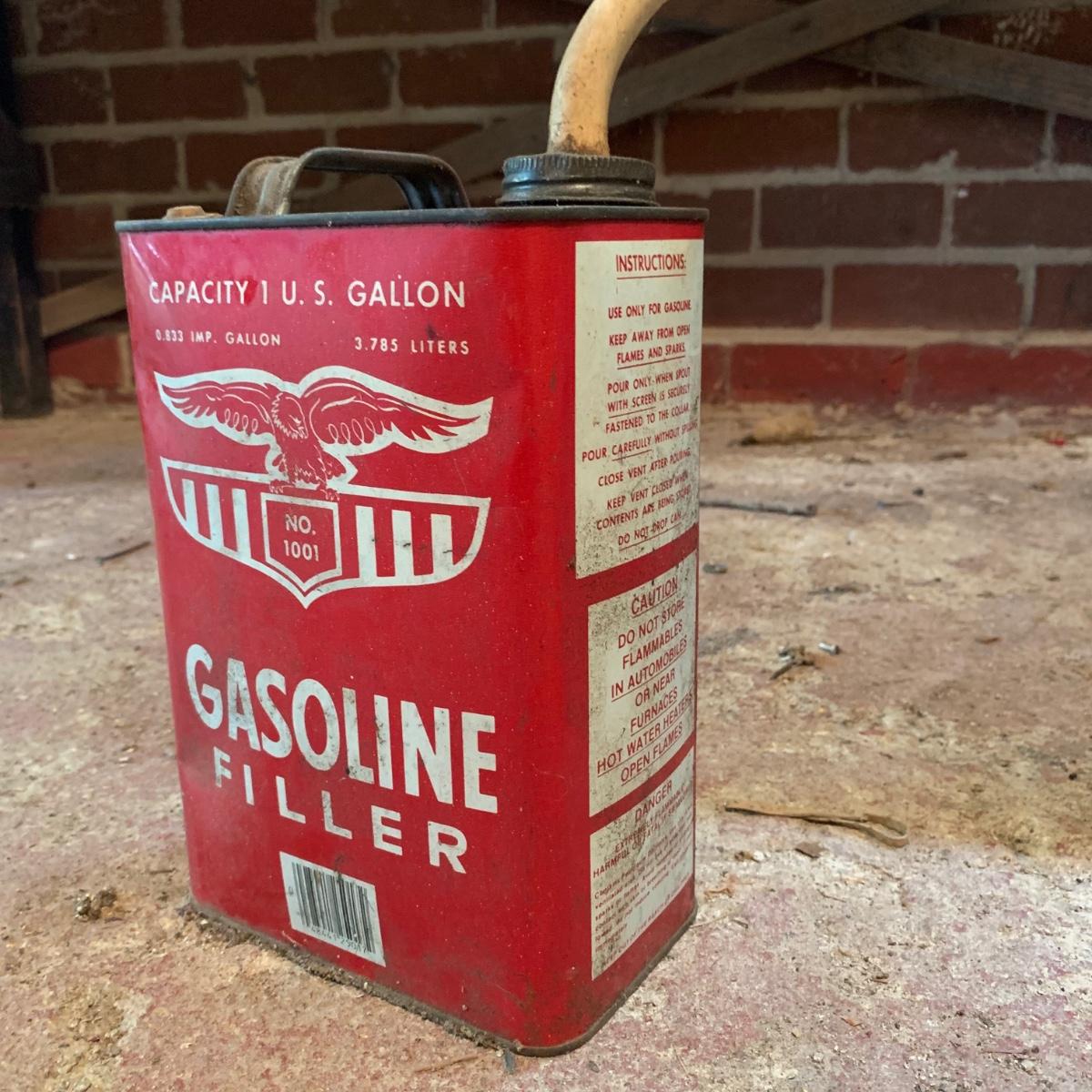 This lot contains three vintage metal gas cans and one modern plastic Rubbermaid “Can-Tainer”. They range from one-gallon to five-gallon containers. They have all gathered quite a bit of dust from being stored in the garage. The largest metal container has some denting. There is some liquid in each container, but we cannot verify the contents. A layer of plastic or towels for your car is recommended to the winning bidder for transport. Local pickup only.
