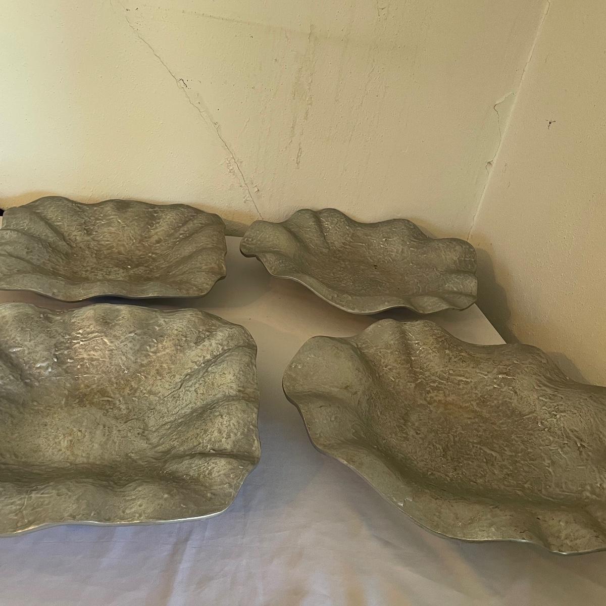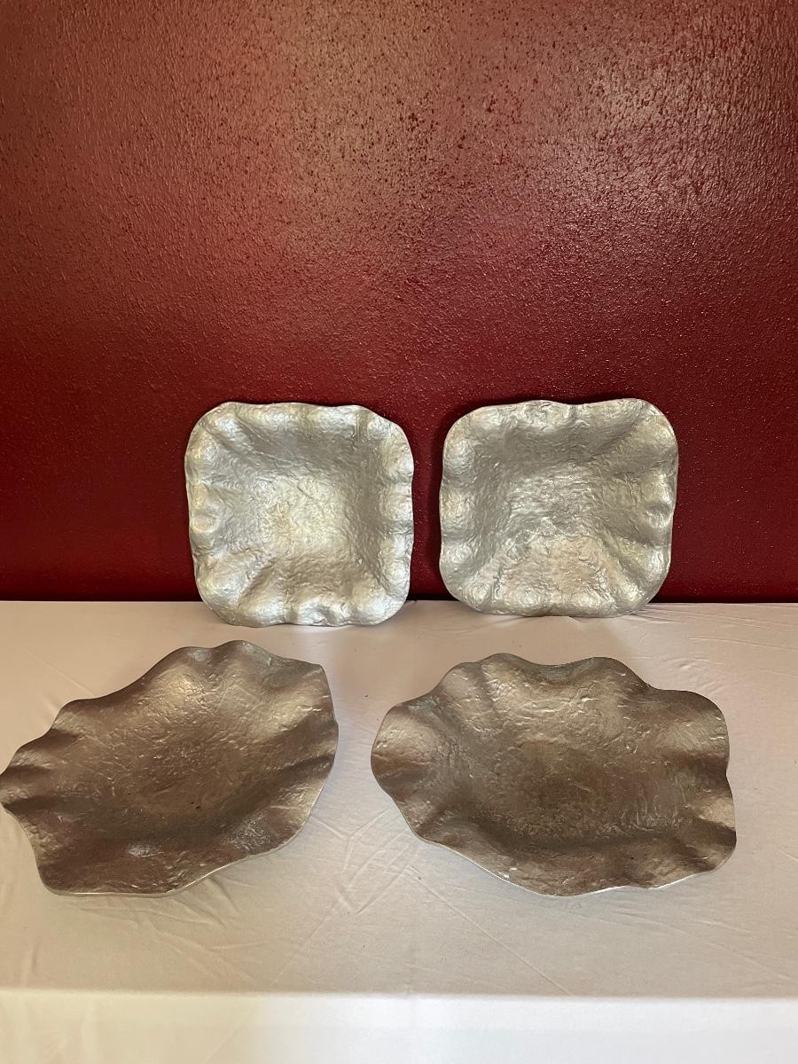 Four Hammered Pewter Platters LR-RG)