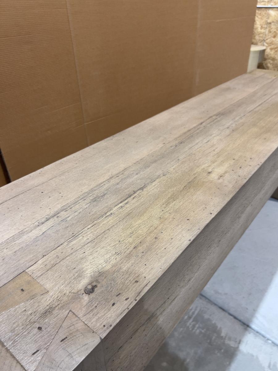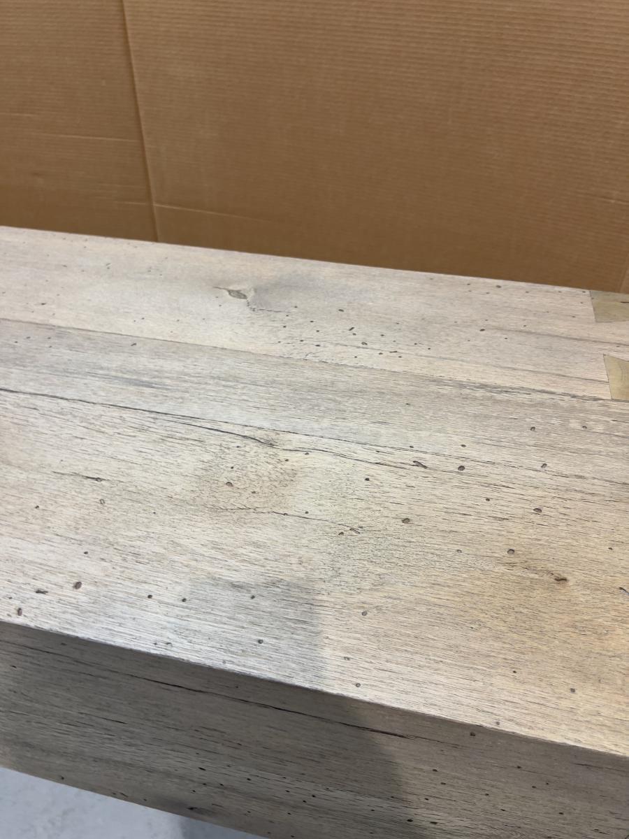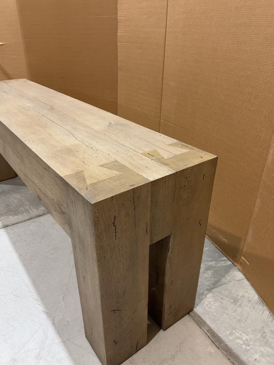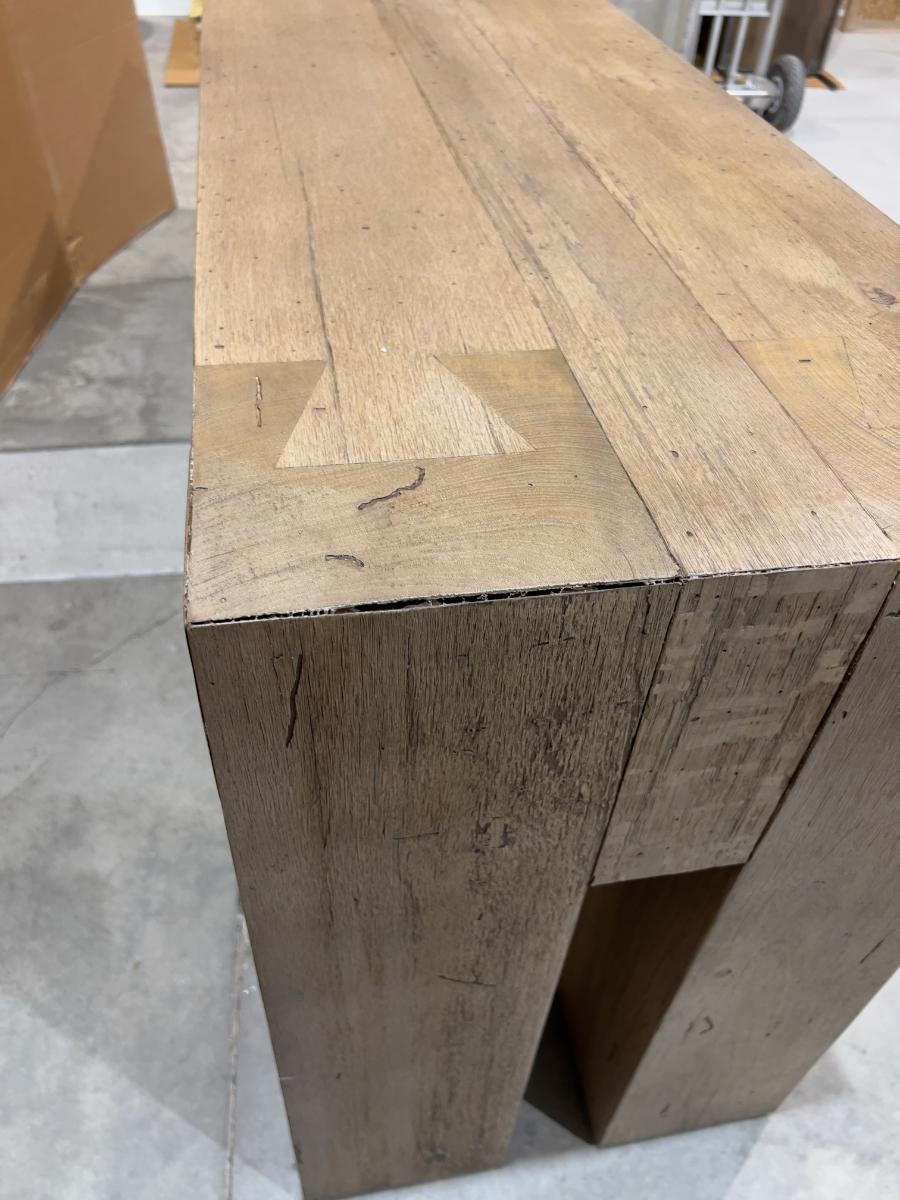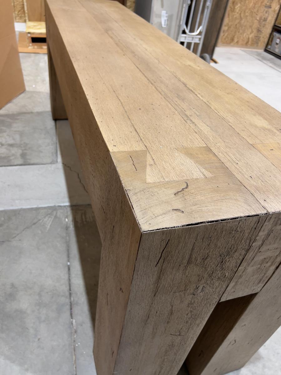 Abaso Console Table Wormwood. Not used. Minor Water Damage on one end. Please provider moving assistance and secure transportation and or packing materials for moving.