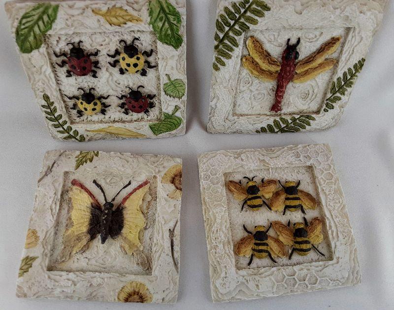 Fun plaques, Ladybugs, Dragonfly, Butterfly, and Bees. Measures 4.5x4.5