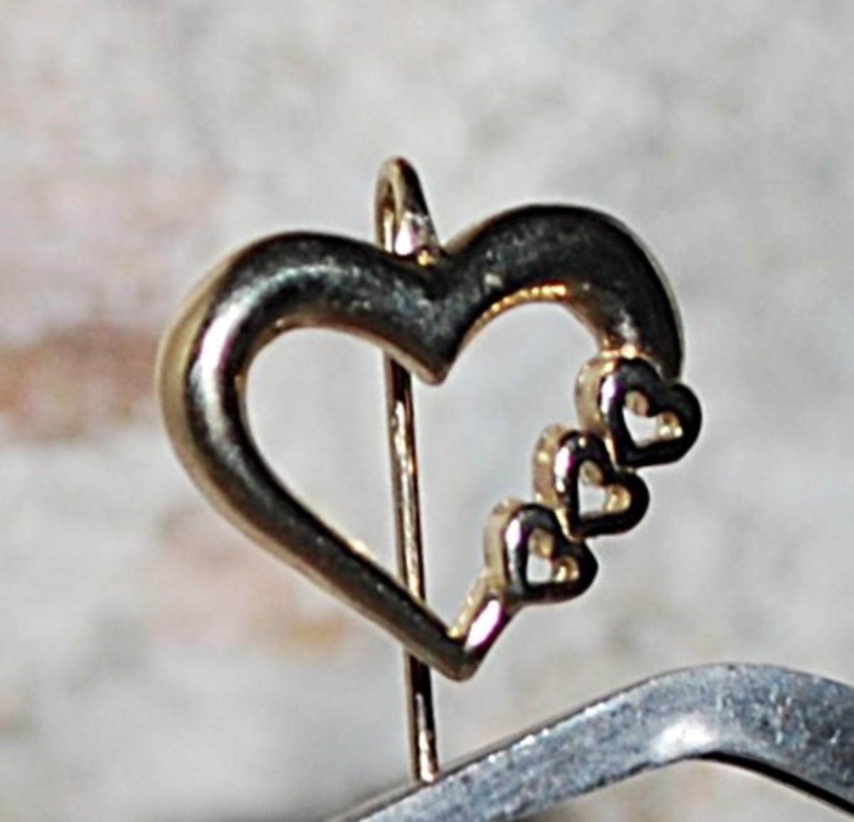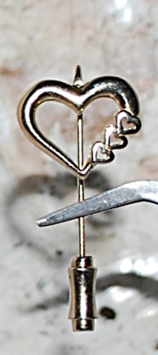 Four HEARTS PIN (1½" L) with Pin Guard on a Gold Tone Setting
