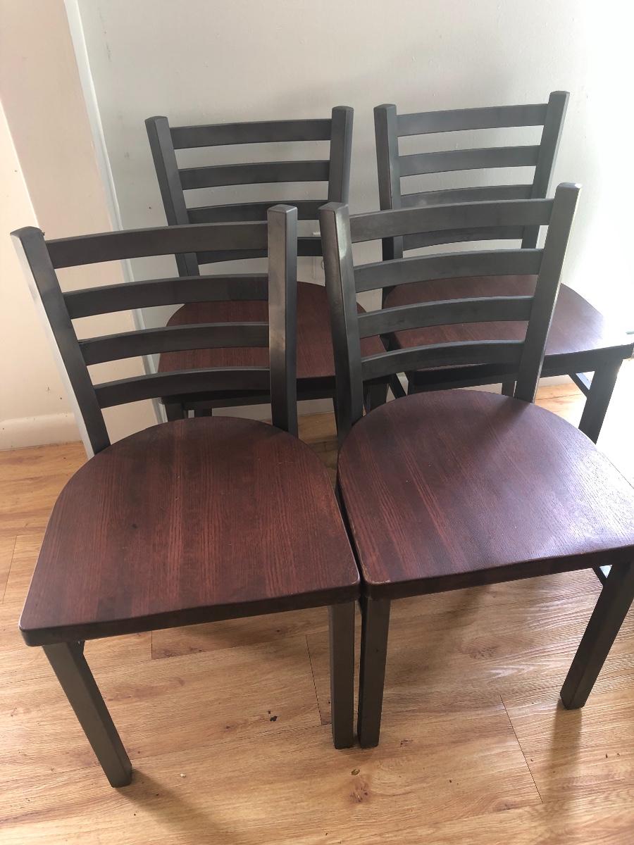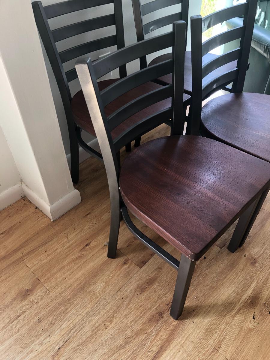 Four vintage heavy metal and wood chairs